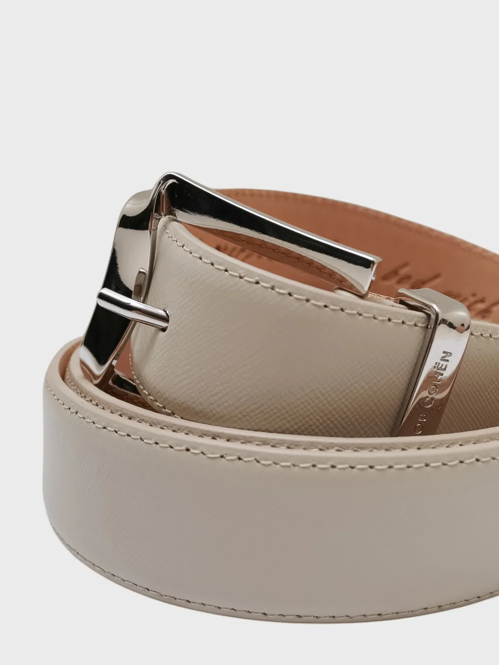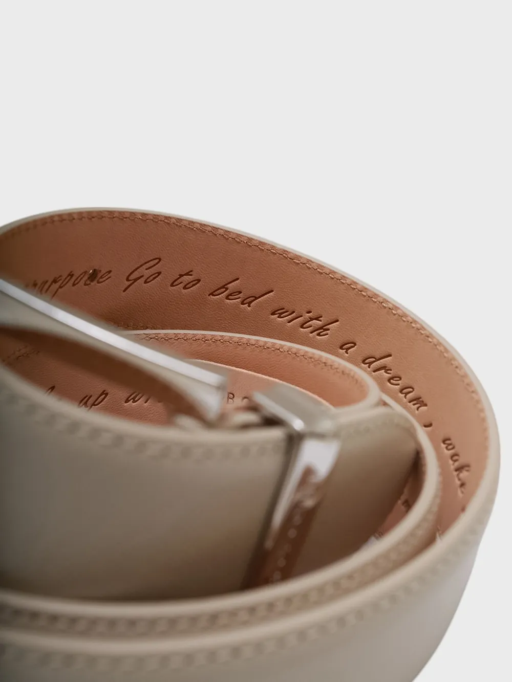 Ремень Jacob Cohen выполнен из высококачественной кожи светло-бежевого цвета с гладкой текстурой, придающей ему элегантный и современный вид. Модель дополнена металлической пряжкой серебристого цвета с выбитым логотипом бренда "Jacob Cohen", которая обеспечивает надежное крепление. Особенностью этого ремня является обратная сторона, где нанесено вдохновляющее цитатой: "Go to bed with a purpose, wake up with a dream" (Ложись спать с целью, просыпайся с мечтой). Этот ремень идеально подходит для создания как делового, так и повседневного образа, добавляя элемент индивидуальности и стиля.