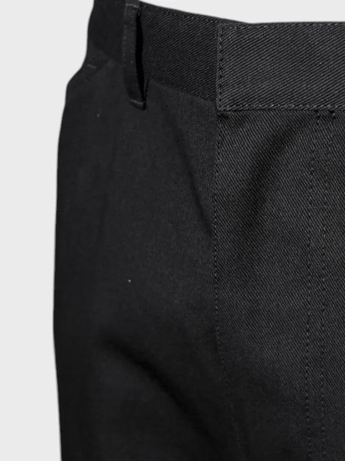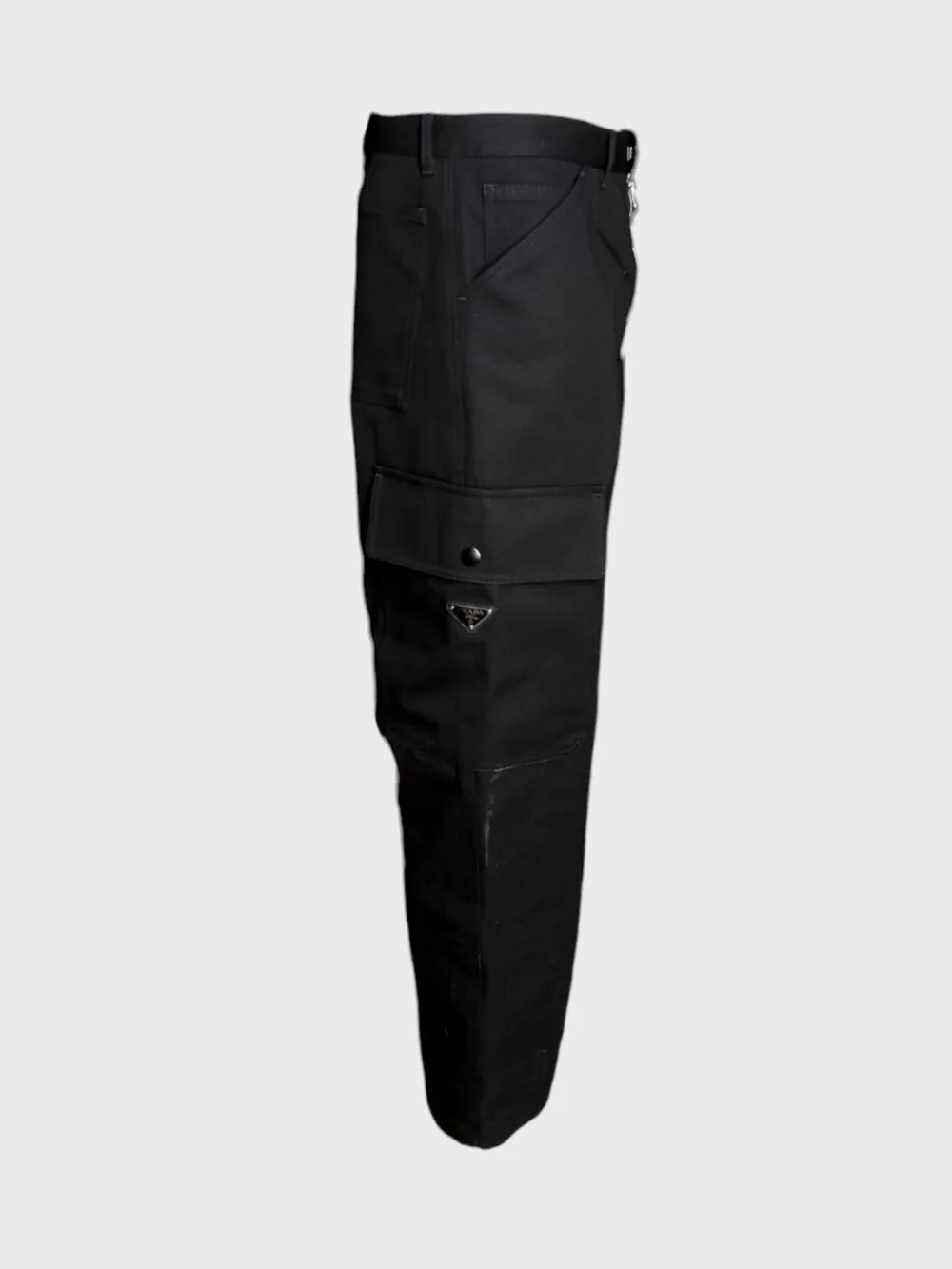 Черные брюки Prada, выполненные из прочного и качественного материала. Модель оснащена высокой талией с поясом для регулировки комфорта. Брюки имеют прямой крой и дополнены множеством функциональных карманов на передней и задней стороне, что обеспечивает удобство при использовании. На левой стороне брюк расположен небольшой логотип "PRADA", который добавляет узнаваемый акцент к классическому дизайну. Простой силуэт идеально сочетается как с повседневными, так и с более спортивными образами, подчеркивая безупречный вкус владельца.