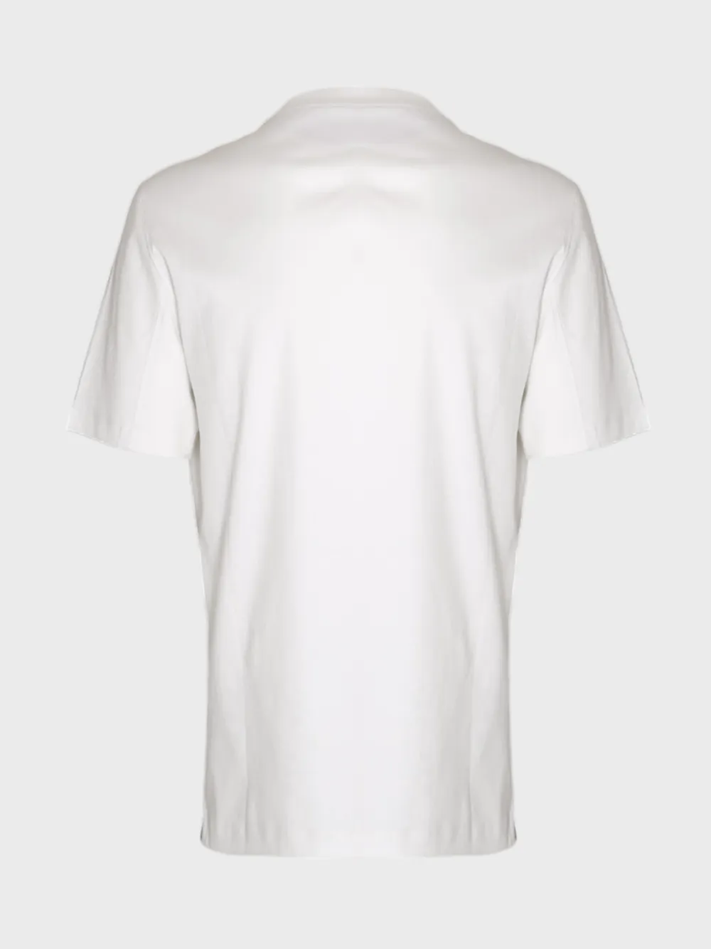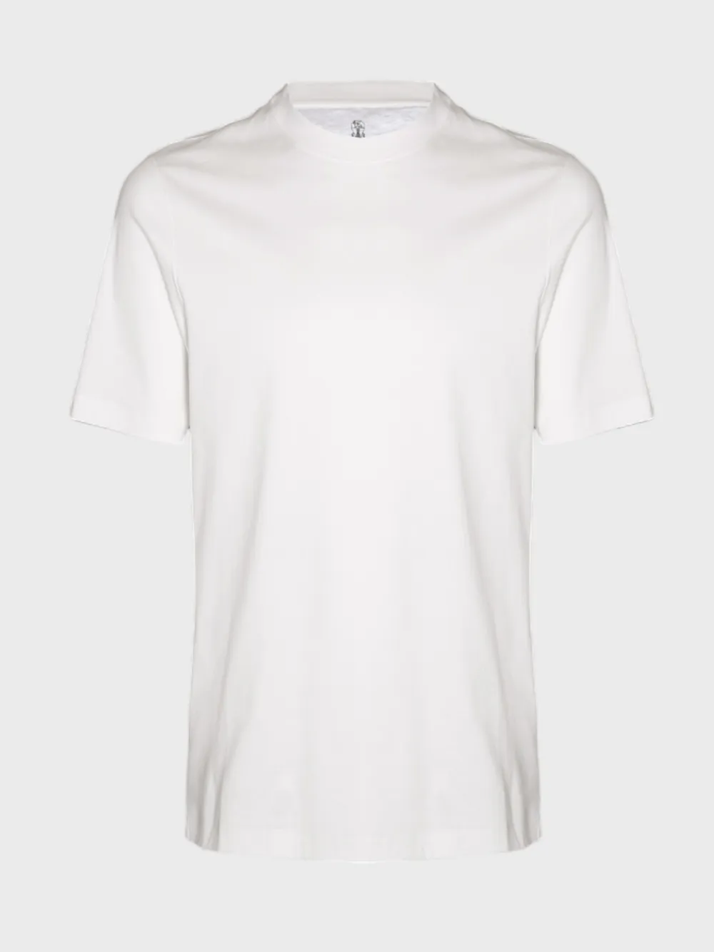 Футболка Brunello Cucinelli выполнена из чистого хлопка в классическом белом цвете. Модель дополнена элегантным круглым вырезом и тонкой фактурной отделкой, придающей изделию утонченный вид. Качественная посадка и комфортная длина делают эту футболку идеальным выбором для повседневного использования или создания стильных образов.