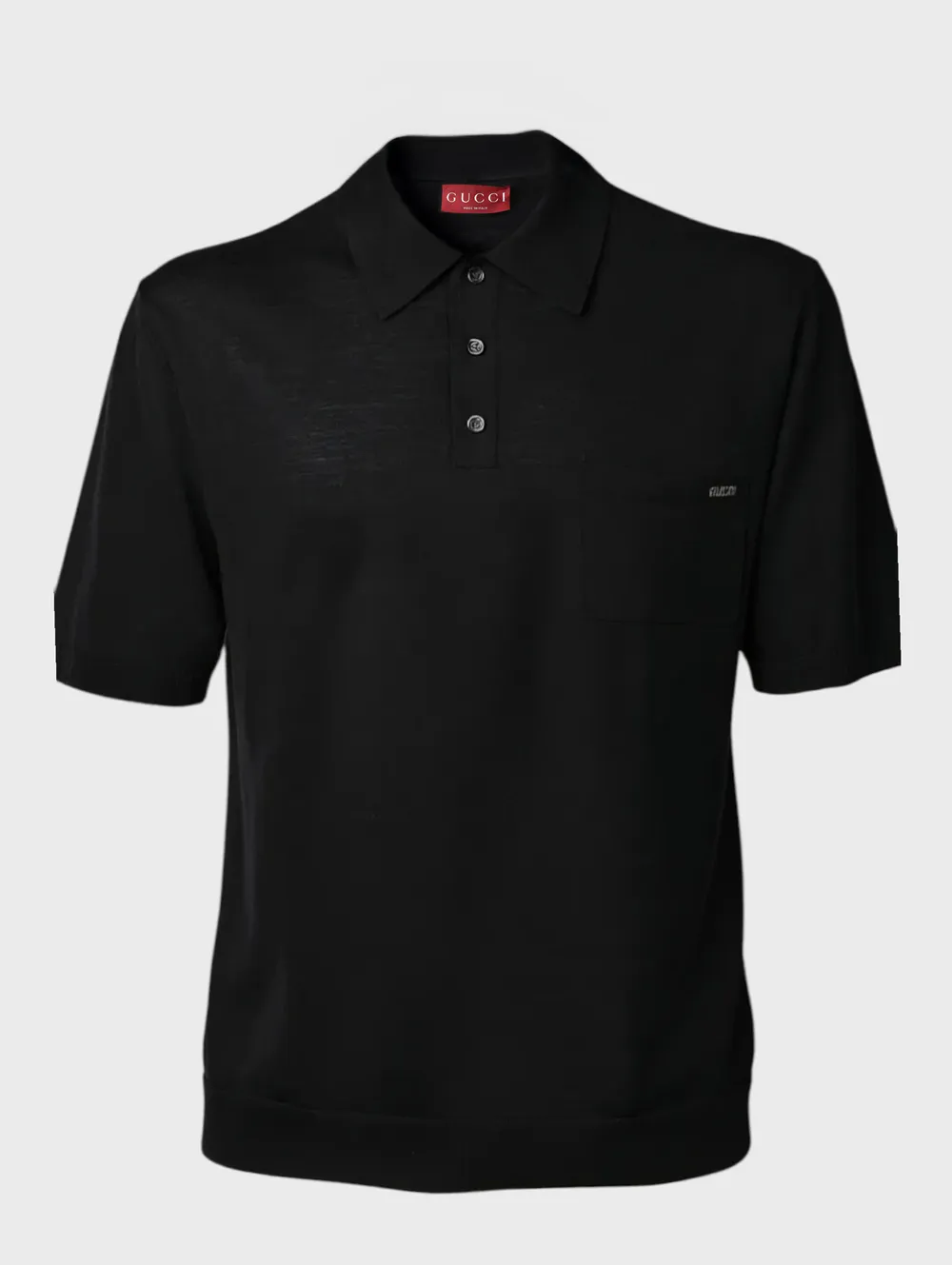 Рубашка Gucci выполнена из высококачественного материала с характерным лаковым эффектом и фирменным монограммным узором, придающим изделию узнаваемый стиль бренда. Модель оформлена классическим воротником-стойкой, застежкой на пуговицы и небольшим нагрудным карманом. Текстура ткани создает роскошный внешний вид, идеально подходящий для делового или вечернего образа.