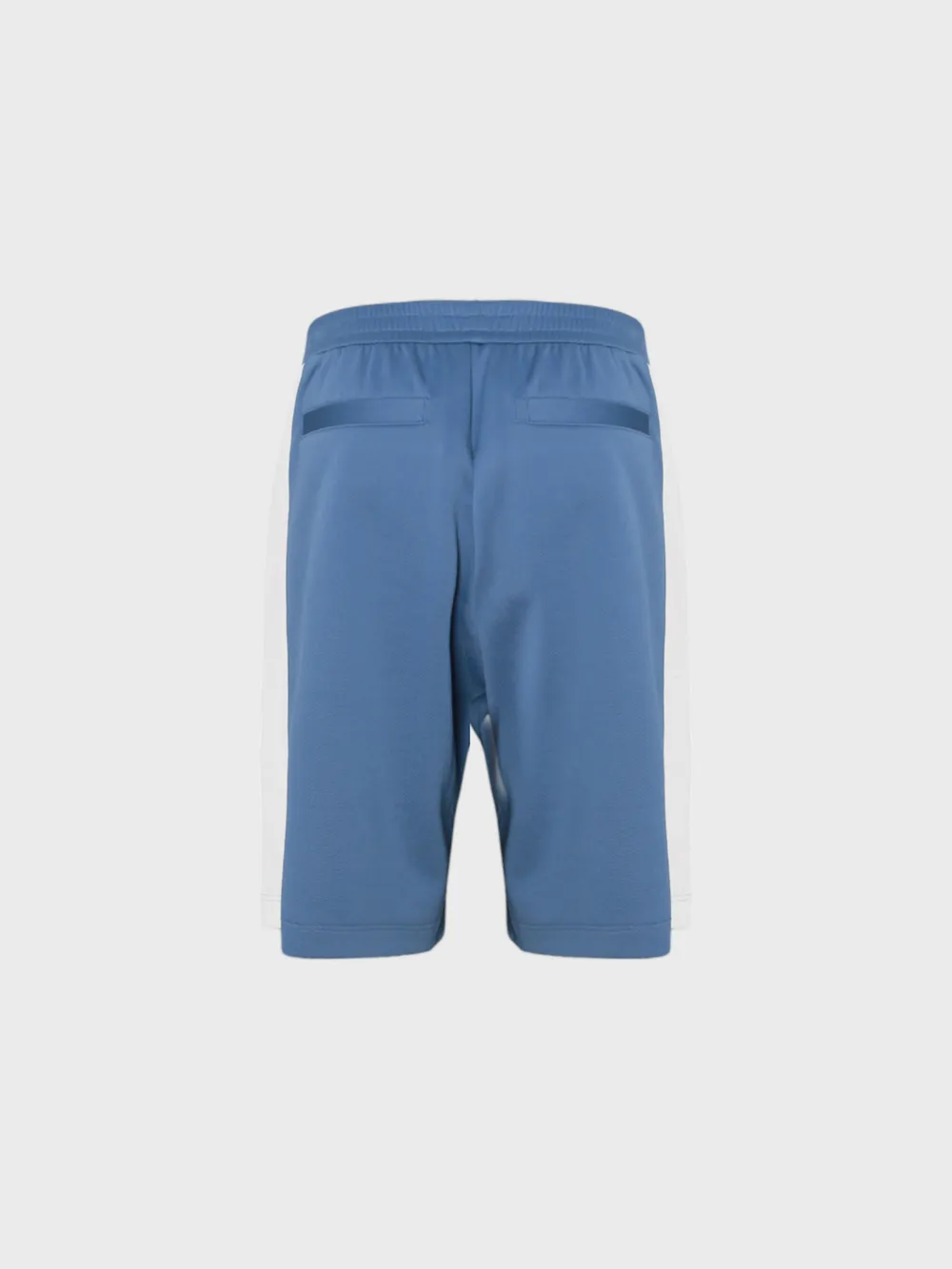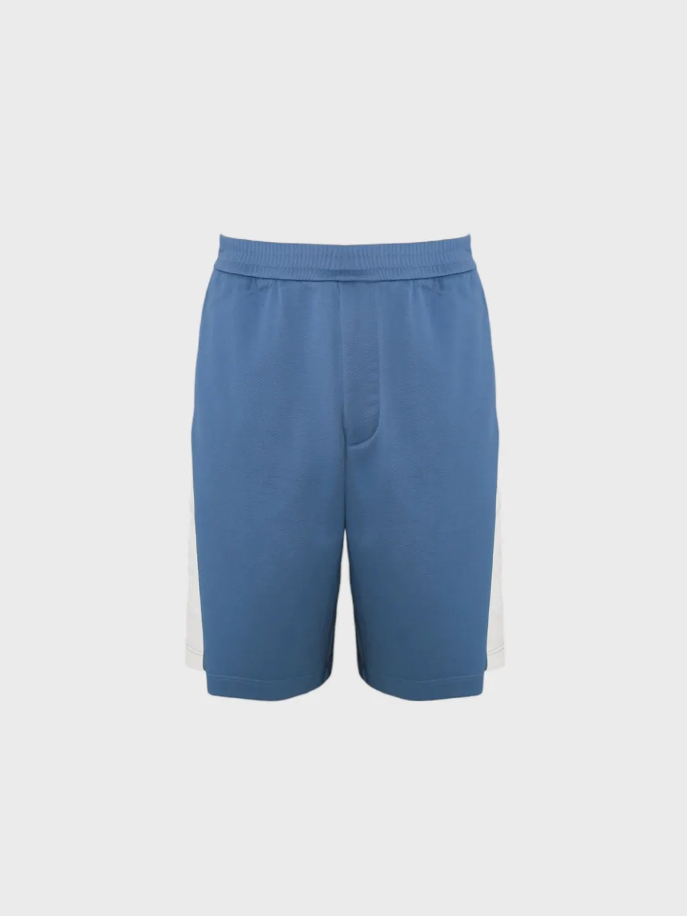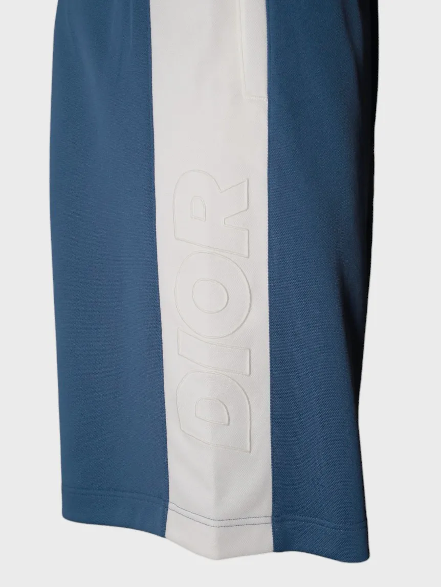 Спортивные шорты от Dior выполнены из качественного флиса синего цвета с контрастными белыми вставками по бокам. Модель прямого кроя с резинкой на талии обеспечивает комфортную посадку и свободу движений. Легкая и дышащая ткань делает эти шорты идеальным выбором для спортивной активности или повседневной носки.