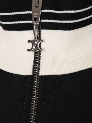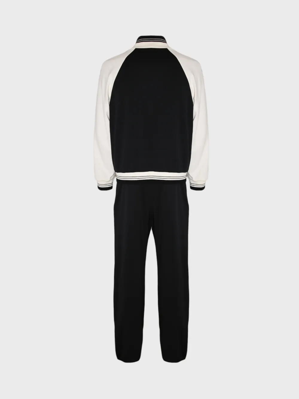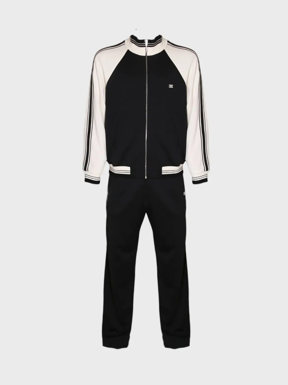 Спортивный костюм Celine выполнен из высококачественного мягкого трикотажа с комфортной посадкой. Комплект состоит из черных брюк и контрастной кофты в стиле varsity, сочетающей черный и белый цвета. Брюки дополнены эластичным поясом с шнурком для регулировки объема, а также небольшим логотипом бренда на правом кармане. Кофта оформлена двумя вертикальными полосами по рукавам, молнией спереди и накладными карманами. Детали в виде контрастных полос и логотипа придают изделию современный и стильный вид, сохраняя классический спортивный дизайн. Идеально подходит как для активного отдыха, так и для повседневного использования.