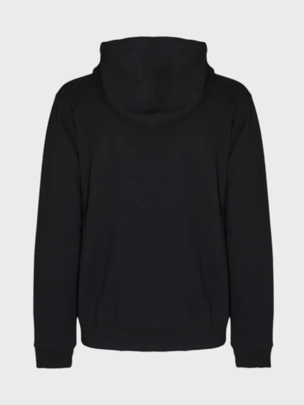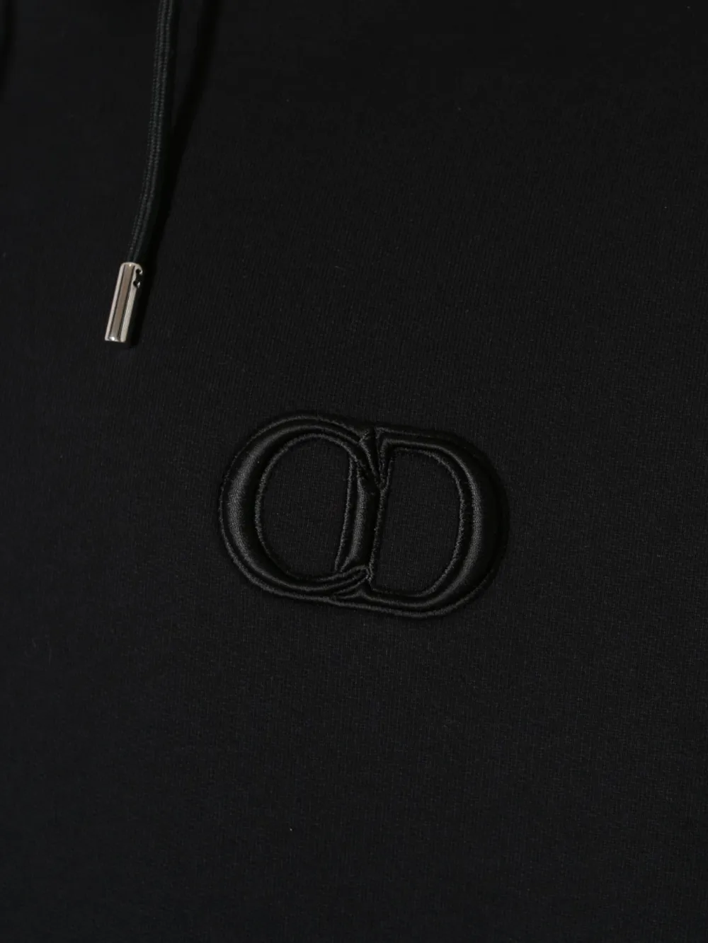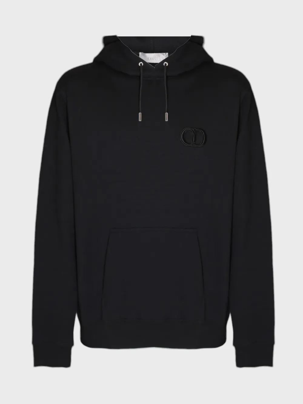 Черное худи Dior, выполненное из мягкого и комфортного материала. Модель дополнена капюшоном с регулируемыми шнурками для дополнительной защиты от холода. На груди расположено крупное логотип "D" — узнаваемый символ бренда. Простой силуэт идеально сочетается как с повседневными, так и с более спортивными образами, подчеркивая безупречный вкус владельца.