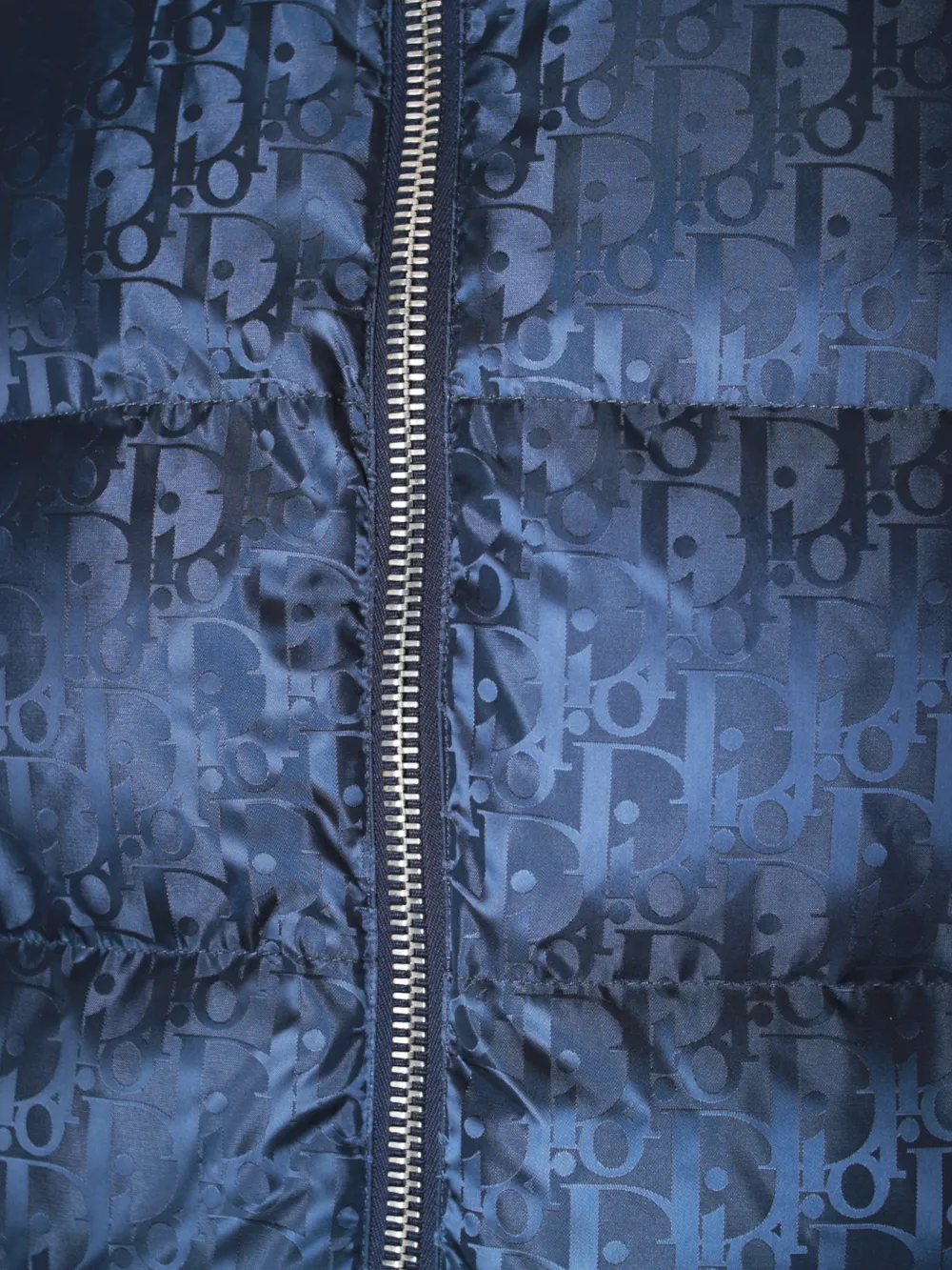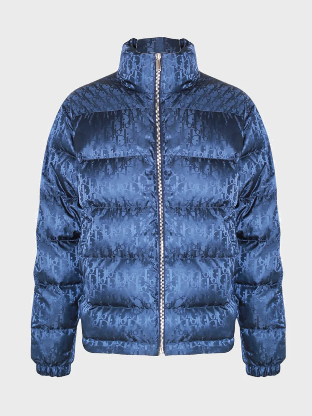 Темно-синяя куртка Dior, выполненная из водоотталкивающего материала с глянцевым эффектом. Модель декорирована повторяющимся монограммным принтом в виде логотипа бренда "Dior", который создает современный и узнаваемый дизайн. Куртка оснащена высоким воротником для дополнительной защиты от холода, а также застежкой-молнией спереди. Простой силуэт идеально сочетается как с повседневными, так и с более спортивными образами, подчеркивая безупречный вкус владельца.