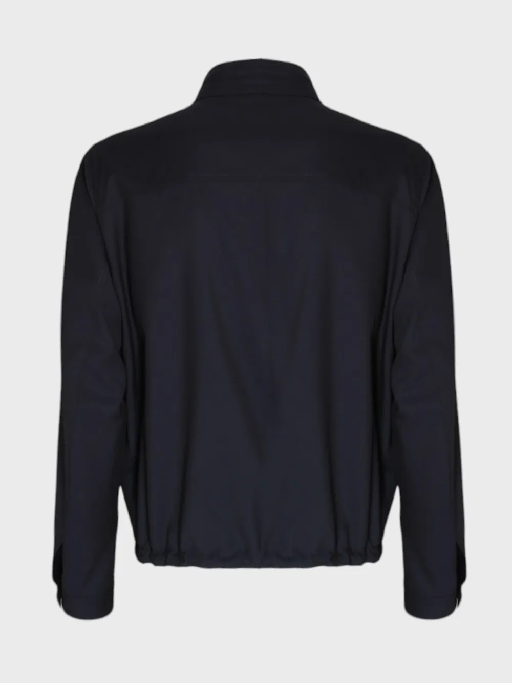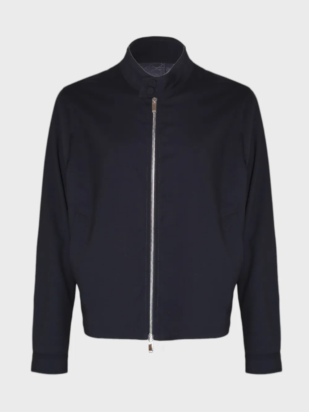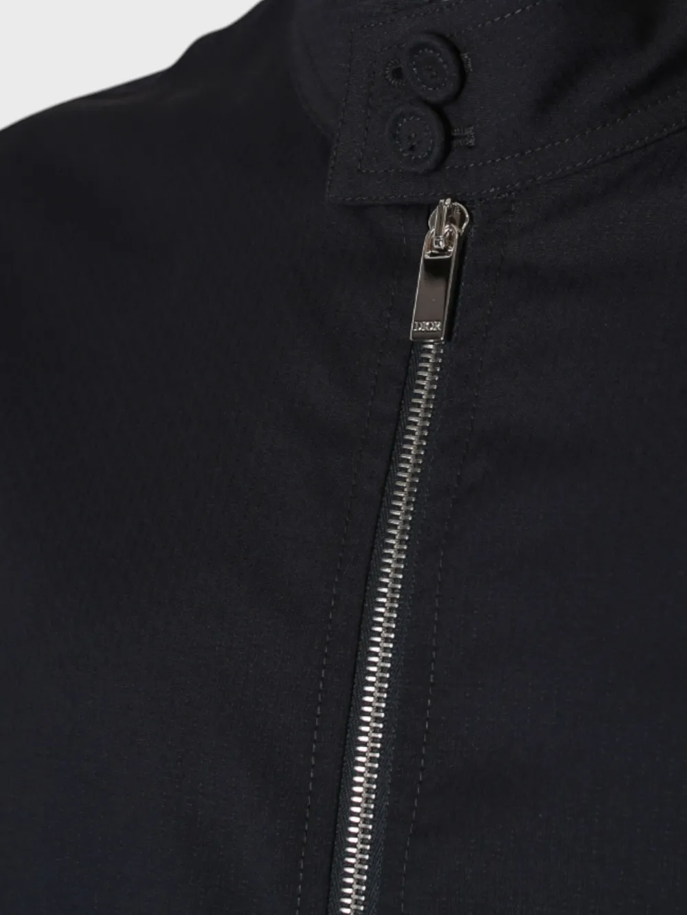 Темно-синяя куртка Dior, выполненная из качественного материала. Модель оснащена высоким воротником и застежкой-молнией спереди, которая обеспечивает комфортное открывание и закрывание. Детали, такие как кнопки на воротнике и логотип бренда на молнии, добавляют акцентов к классическому дизайну. Простой силуэт идеально сочетается как с повседневными, так и с более спортивными образами, подчеркивая безупречный вкус владельца.
