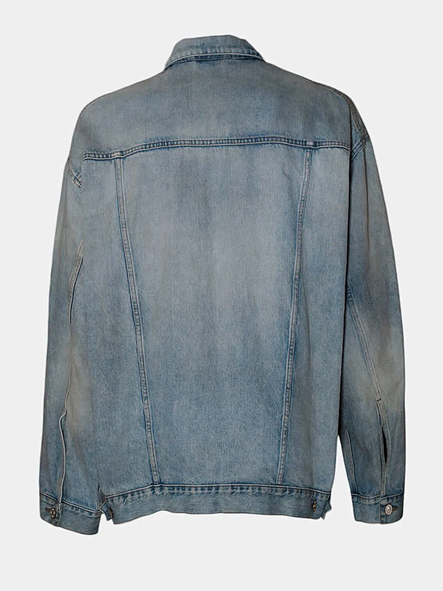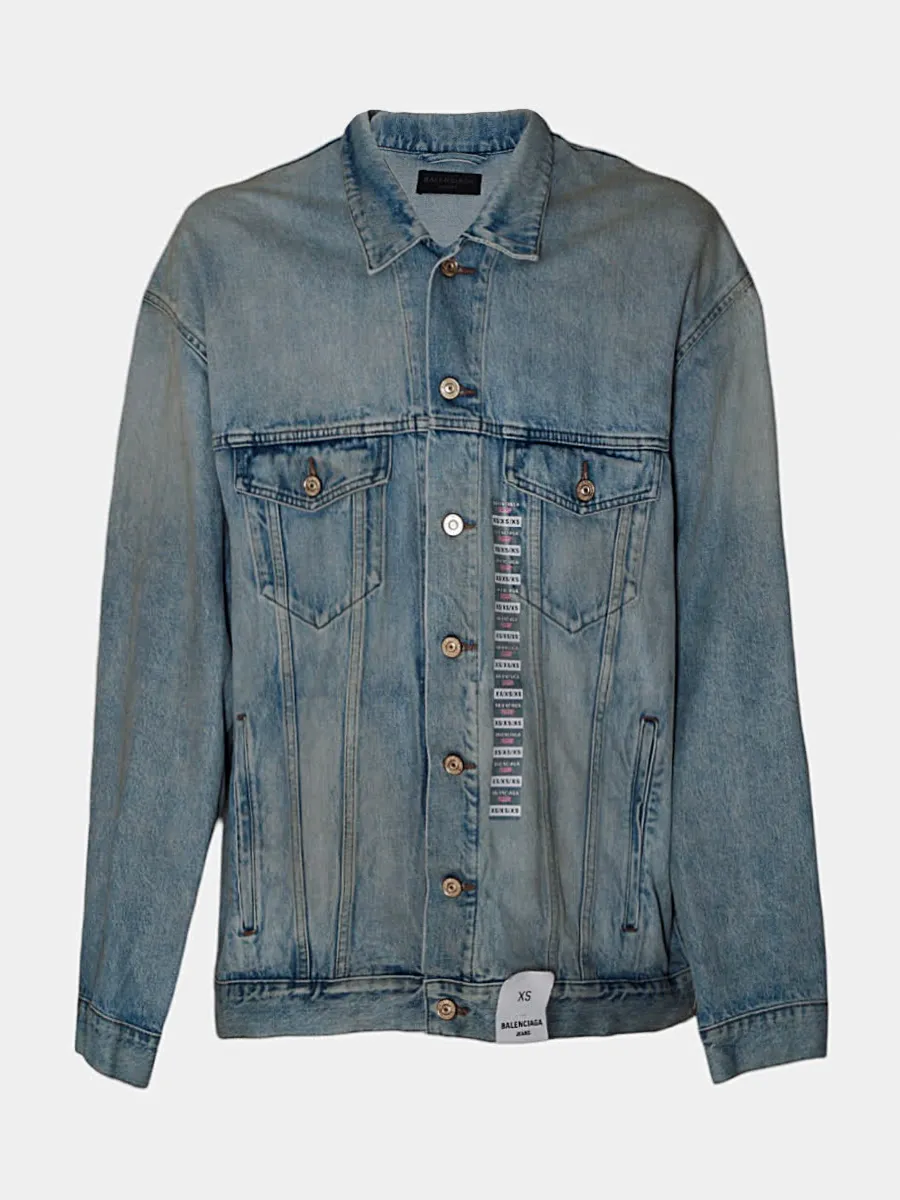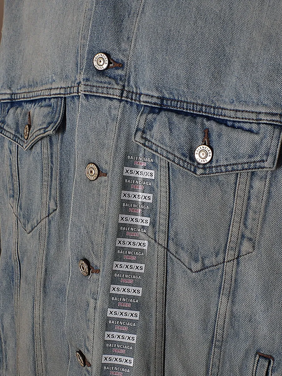 Джинсовая куртка Balenciaga выполнена из качественного премиального денима светло-голубого оттенка с эффектом потертости и выцветания. Модель классического кроя дополнена двумя накладными карманами на груди, застежкой на пуговицы и контрастной строчкой. Детали, такие как металлические кнопки и фирменная нашивка бренда, завершают дизайн этой универсальной куртки, которая станет отличным акцентом в повседневном гардеробе.