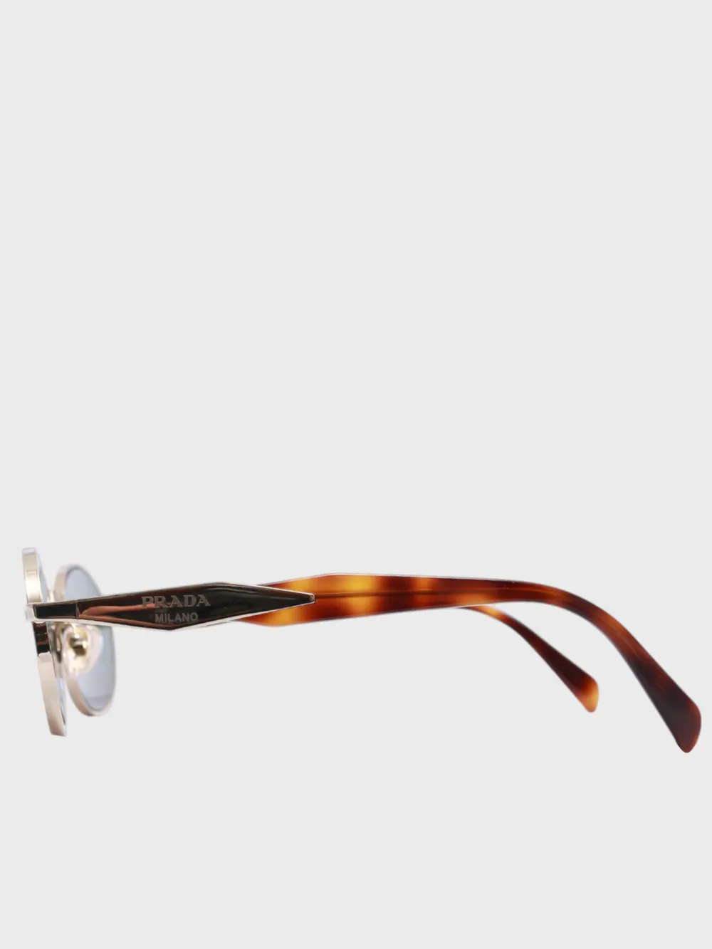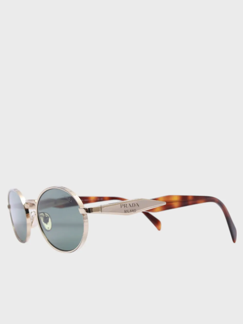 Солнцезащитные очки Prada выполнены из качественного металла с золотистым покрытием и оправой в тонированной градиентной расцветке. Модель сочетает классический круглый дизайн с современными деталями, дополнена фирменным логотипом бренда на дужках. Линзы обеспечивают защиту от ультрафиолетовых лучей, а комфортная посадка делает эти очки универсальным аксессуаром для повседневного и делового стиля.