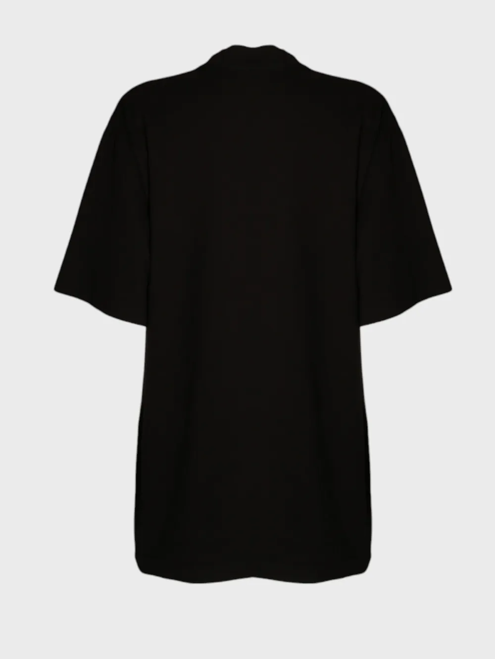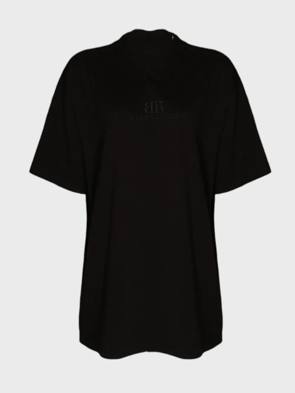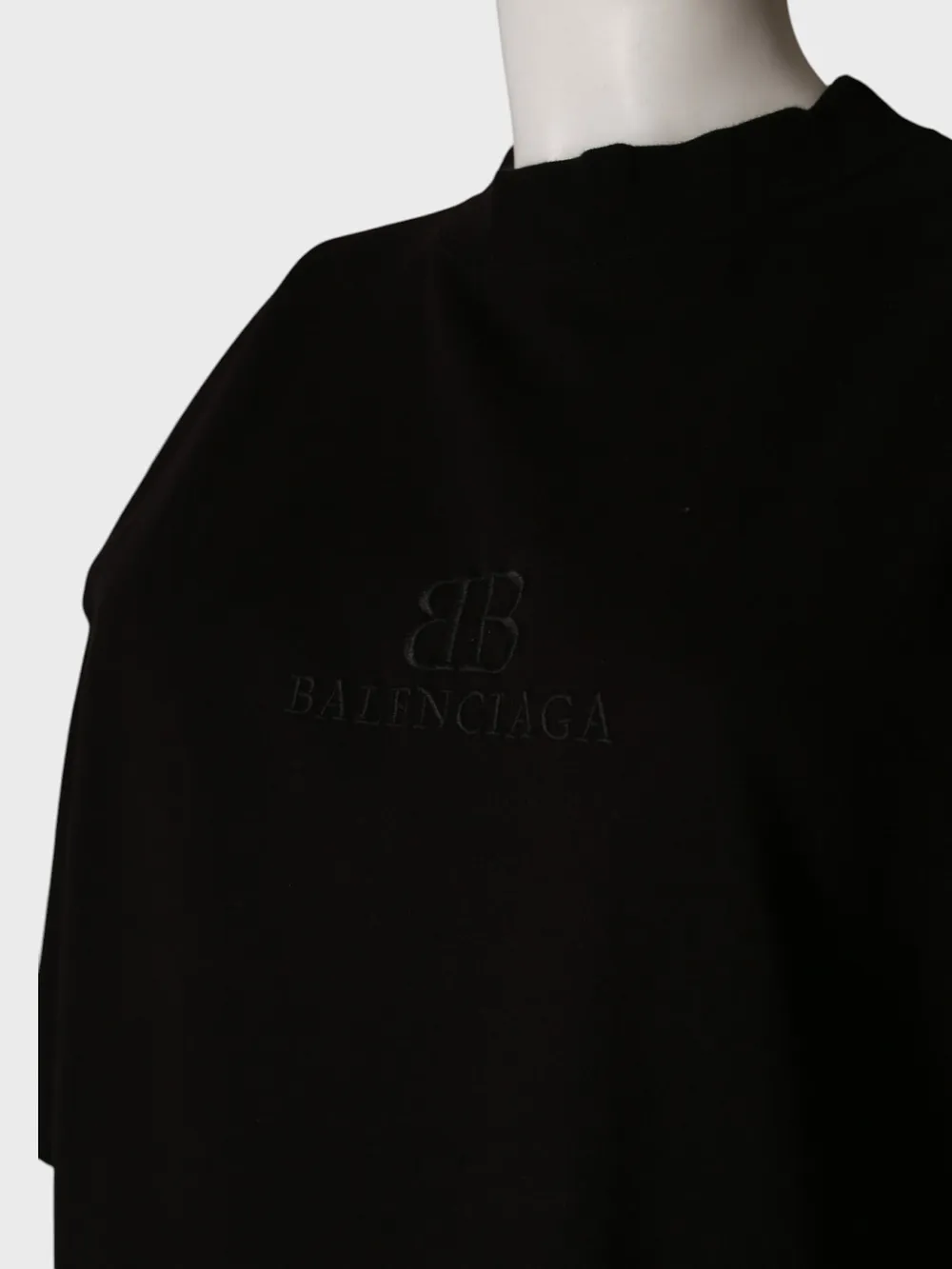Футболка Balenciaga выполнена из мягкого черного хлопка с комфортным свободным кроем. Модель дополнена небольшим логотипом бренда на груди, выполненном в виде фирменной надписи и монограммы. Простой дизайн и высокое качество материалов делают футболку идеальным выбором для повседневного стиля.