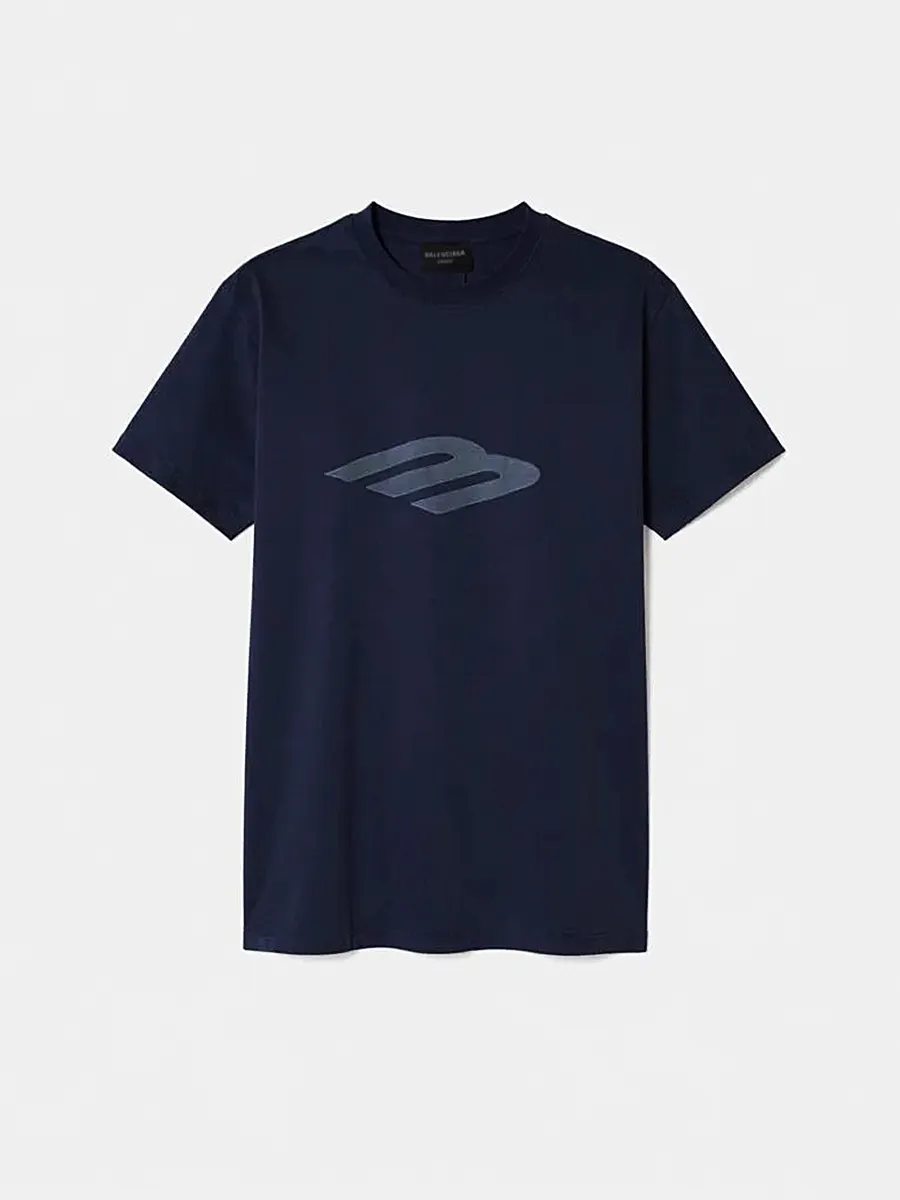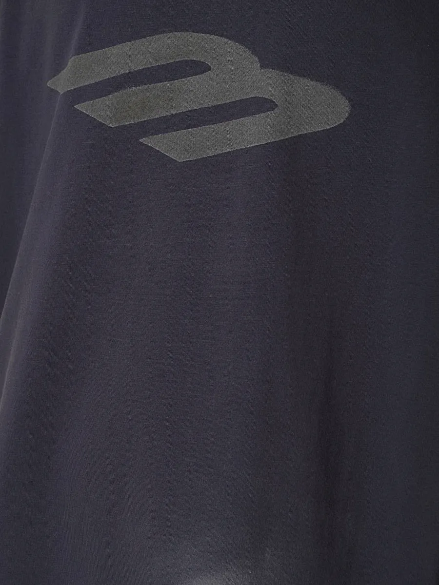 Футболка Balenciaga выполнена из высококачественного мягкого хлопка темно-синего цвета. Модель дополнена крупным графичным логотипом бренда на груди в тоне, что создает минималистичный и современный образ. Простой силуэт с короткими рукавами и круглым вырезом обеспечивает комфортную посадку. Фирменная деталь и качество материала делают эту футболку универсальным элементом повседневного гардероба.
