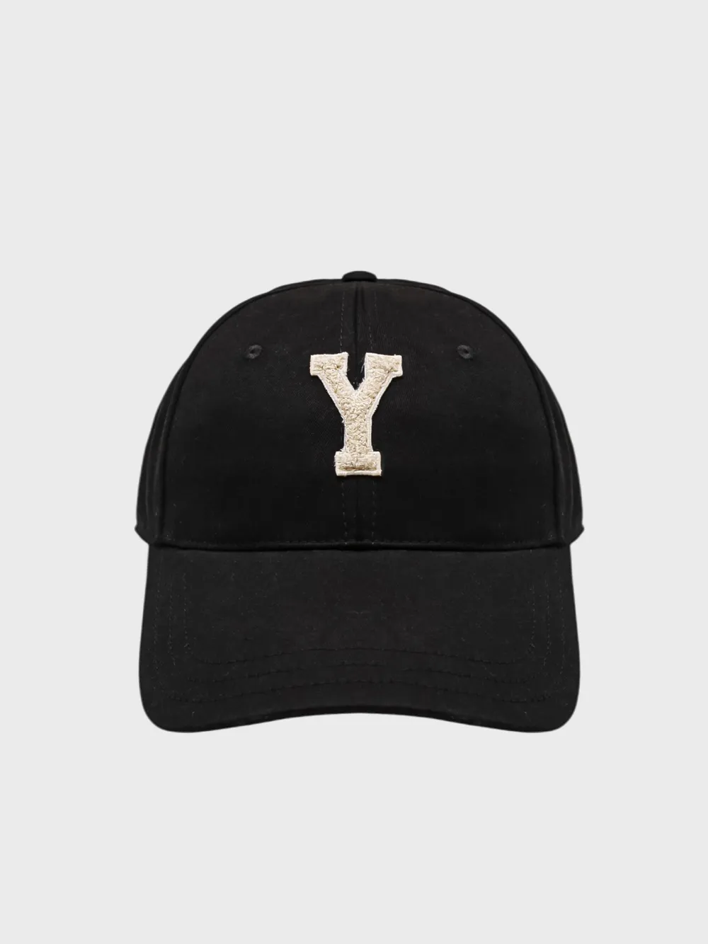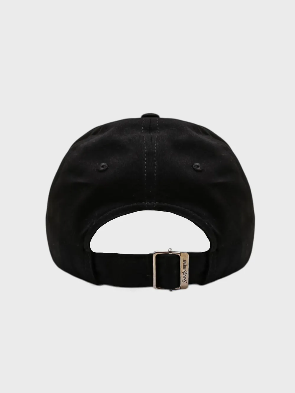 Бейсболка Saint Laurent выполнена из высококачественного черного хлопка с контрастной вышивкой буквы "Y" на передней части. Модель дополнена регулируемым ремешком с металлической застежкой для комфортной посадки. Простой и универсальный дизайн позволяет сочетать аксессуар с различными стилями одежды, от повседневных до спортивных. Идеально подходит для создания современных образов с элементами уличного стиля.