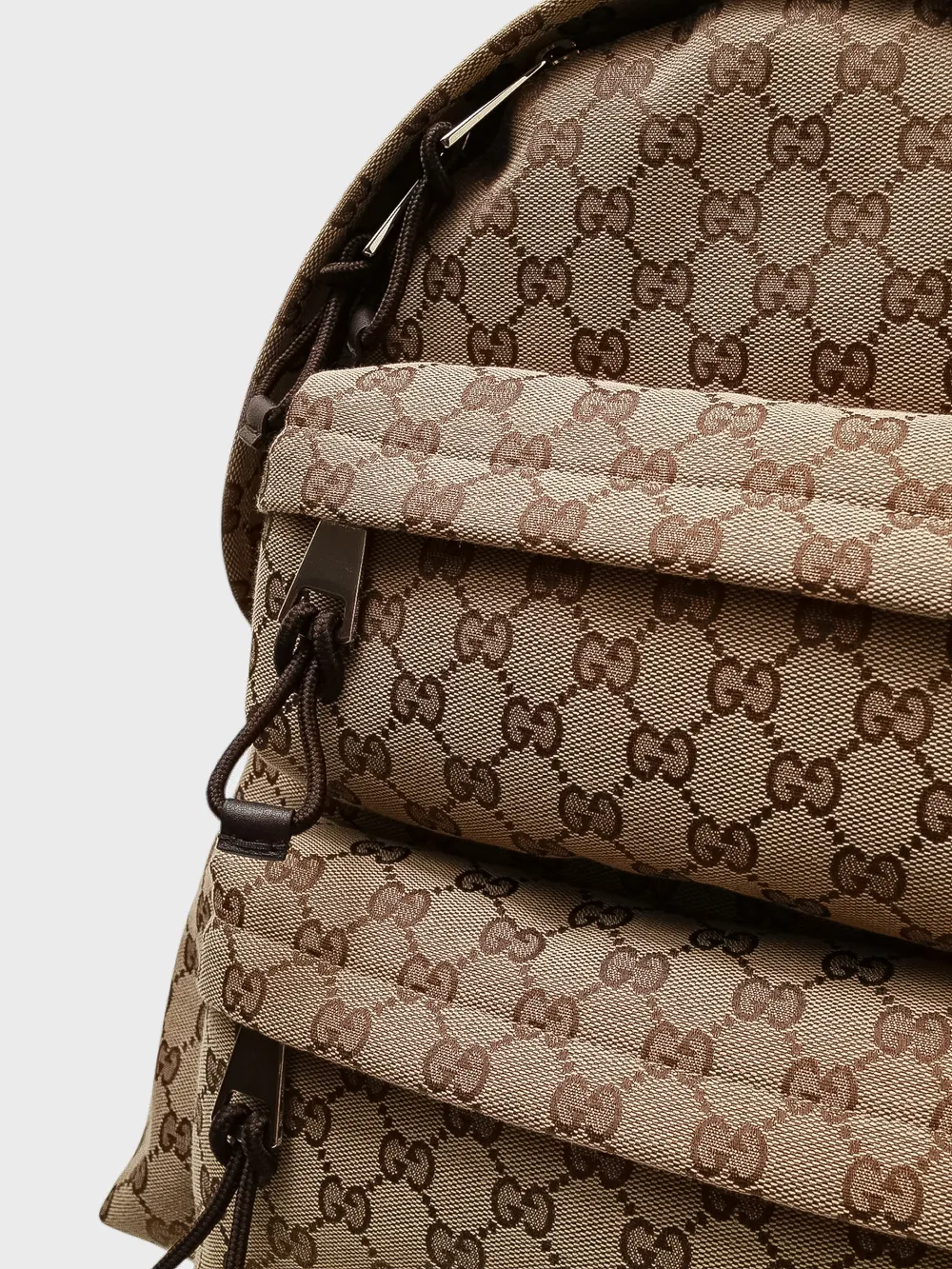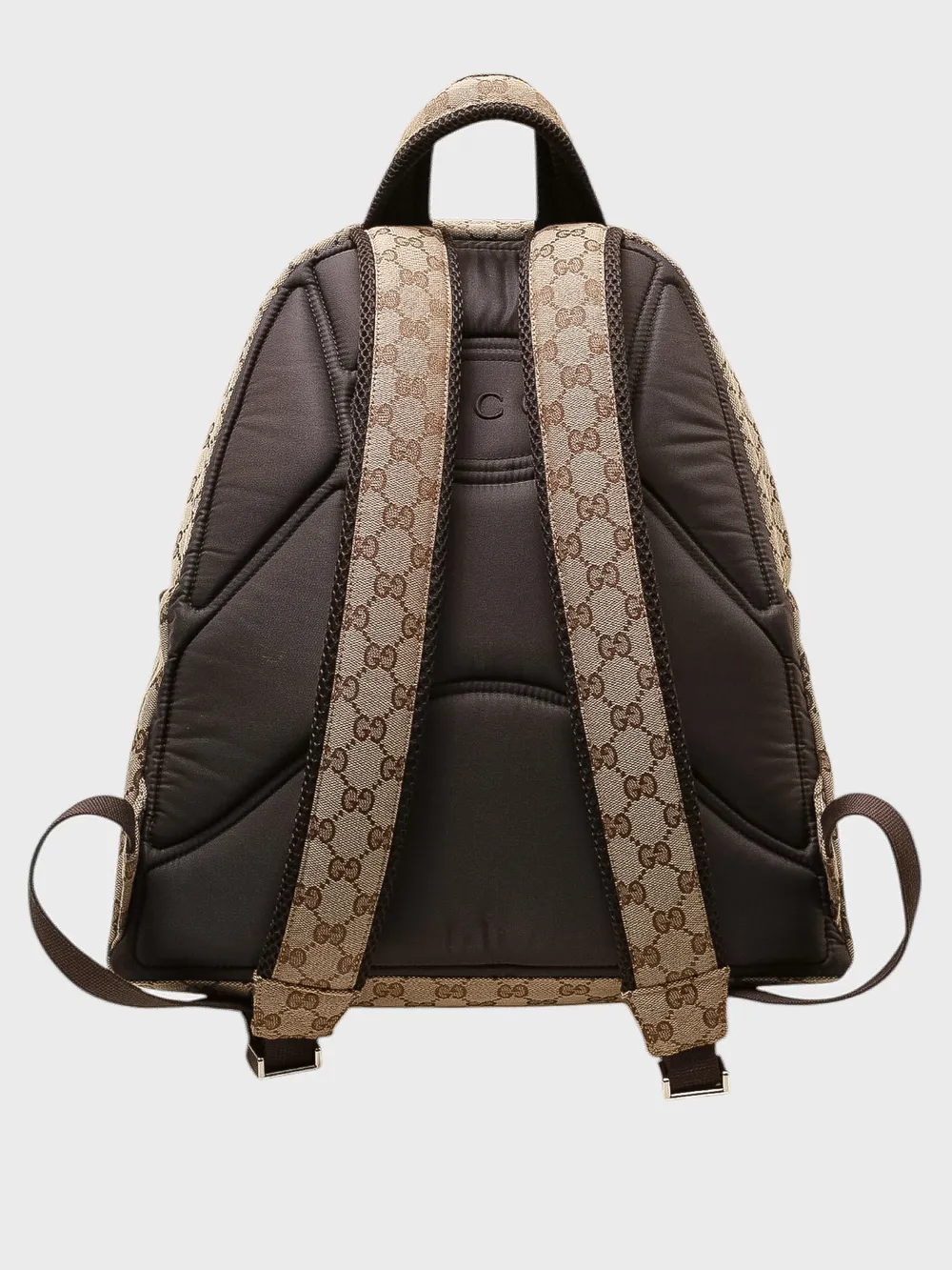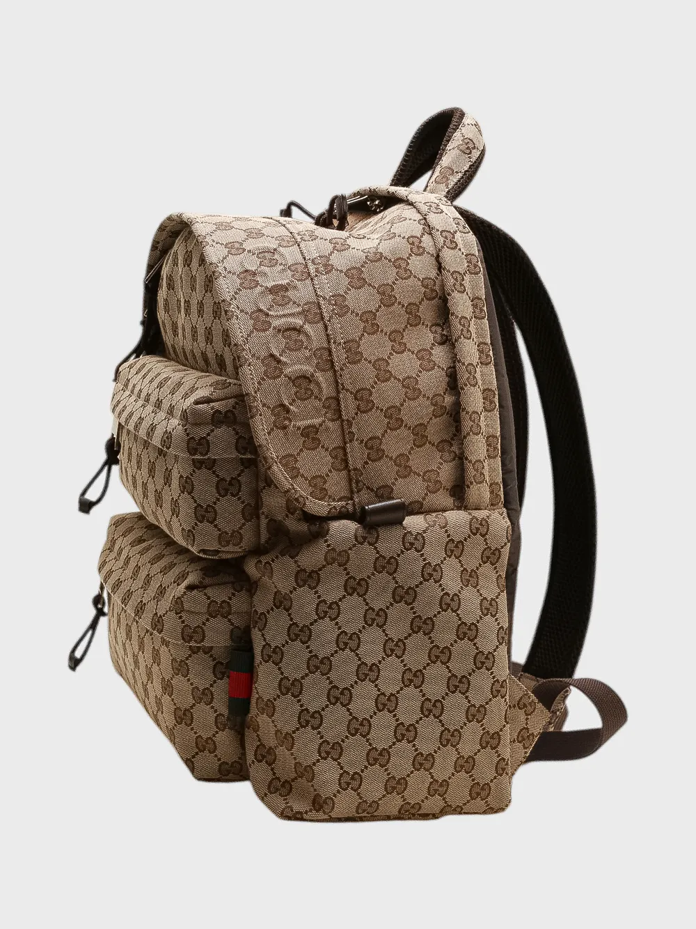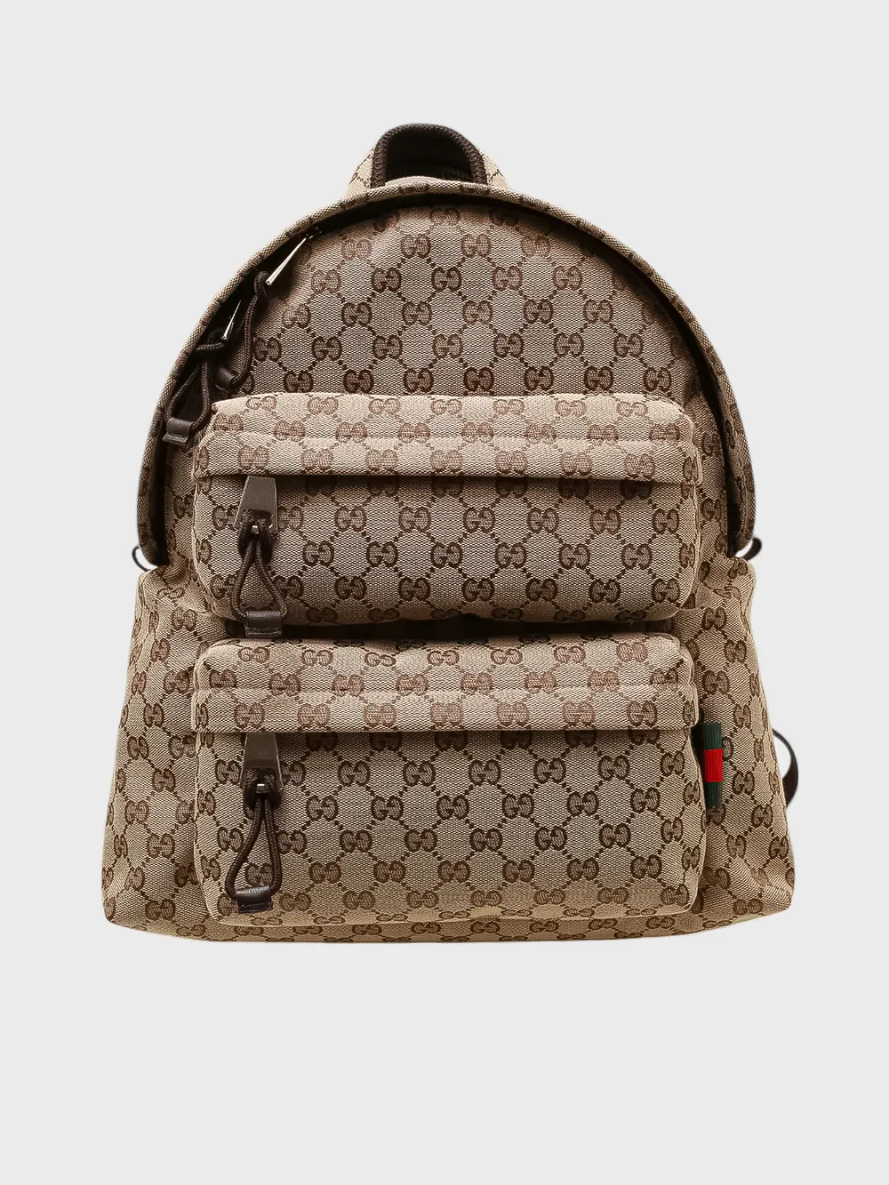 Рюкзак Gucci выполнен из прочного текстиля с фирменным монограммным принтом в коричнево-бежевых тонах. Модель дополнена удобными регулируемыми плечевыми ремнями и центральной молнией для доступа к основному отделению. Дополнительные детали, такие как карман на молнии спереди и декоративная тканевая лента с классическим логотипом бренда, добавляют функциональности и стиля. Идеально подходит для повседневного использования или путешествий, сочетая практичность и узнаваемый дизайн.