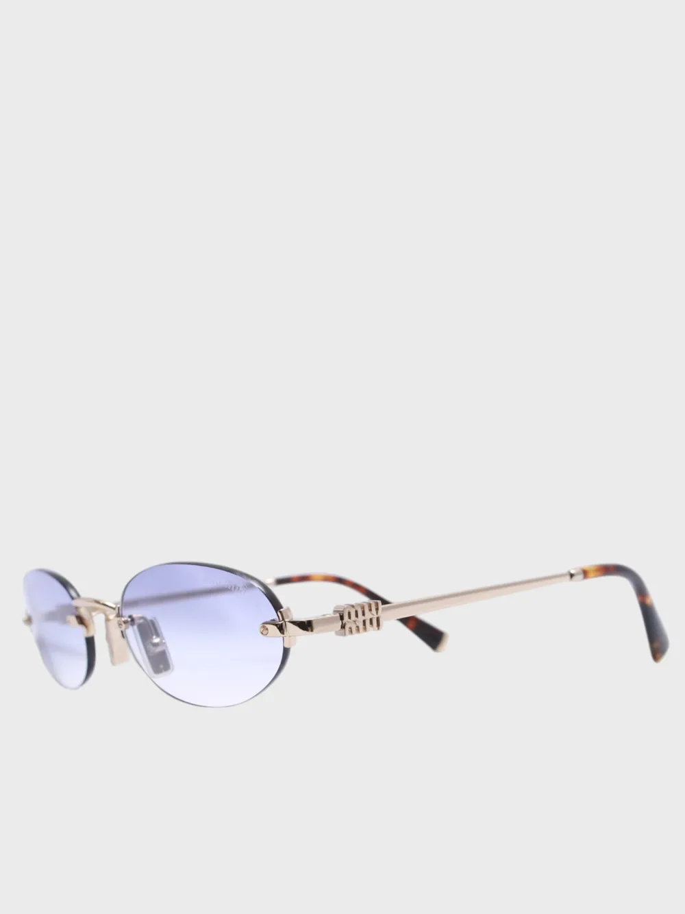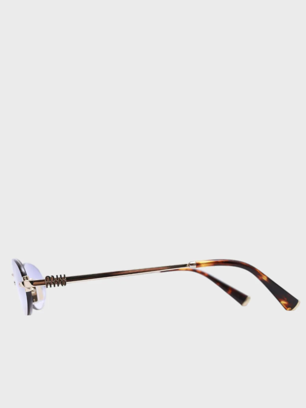 Солнцезащитные очки Miu Miu выполнены из металла с золотистым покрытием и оправой в градиентной расцветке. Модель сочетает современный дизайн с классическим креплением дужек, дополнена фирменным логотипом бренда на дужках. Линзы обеспечивают защиту от ультрафиолетовых лучей, а комфортная посадка делает эти очки универсальным аксессуаром для повседневного и вечернего образа.