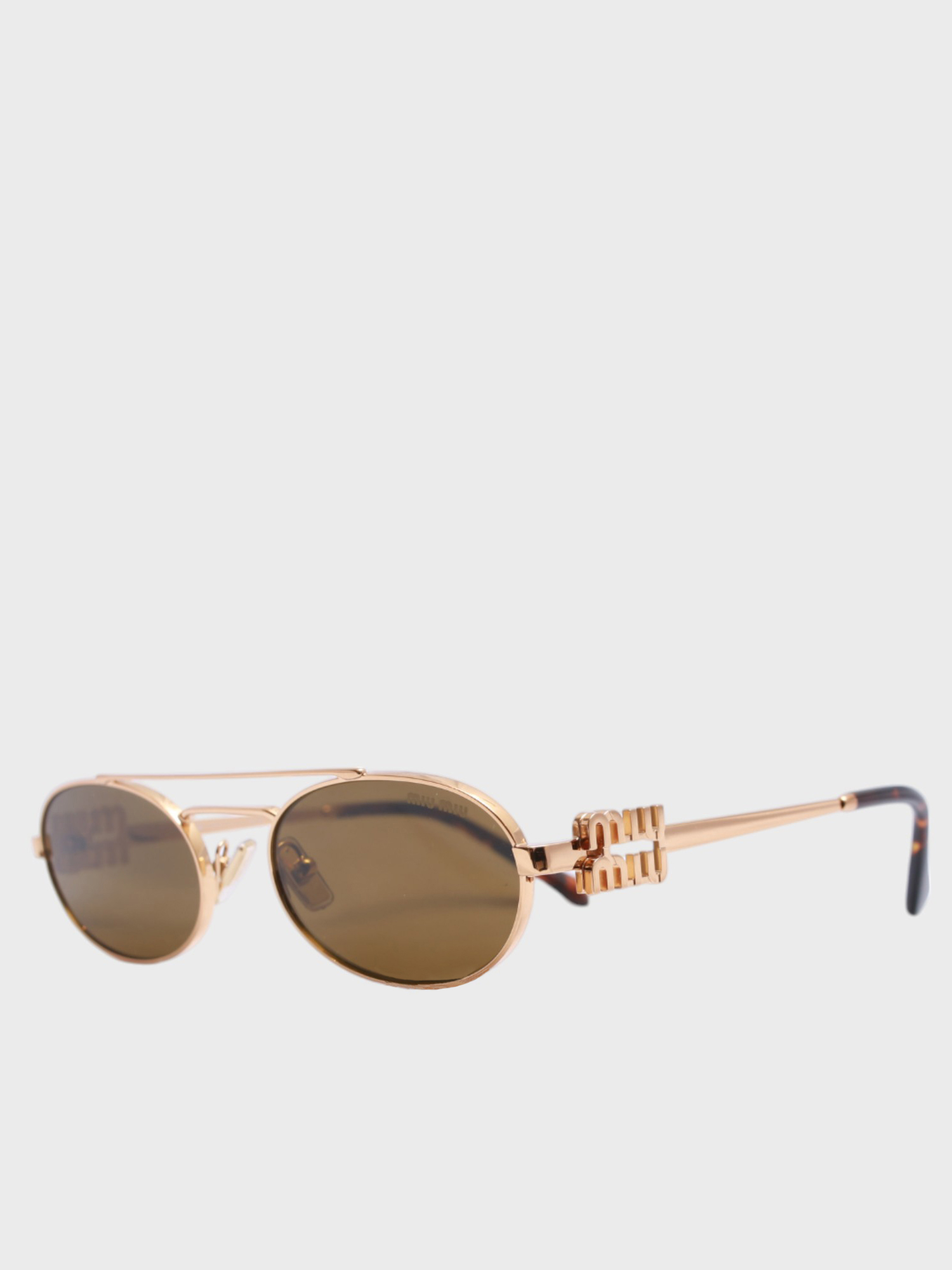 Солнцезащитные очки Miu Miu выполнены из металла с золотистым покрытием и оправой в градиентной расцветке. Модель сочетает современный дизайн с классическим креплением дужек, дополнена фирменным логотипом бренда на дужках. Линзы обеспечивают защиту от ультрафиолетовых лучей, а комфортная посадка делает эти очки универсальным аксессуаром для повседневного и вечернего образа.
