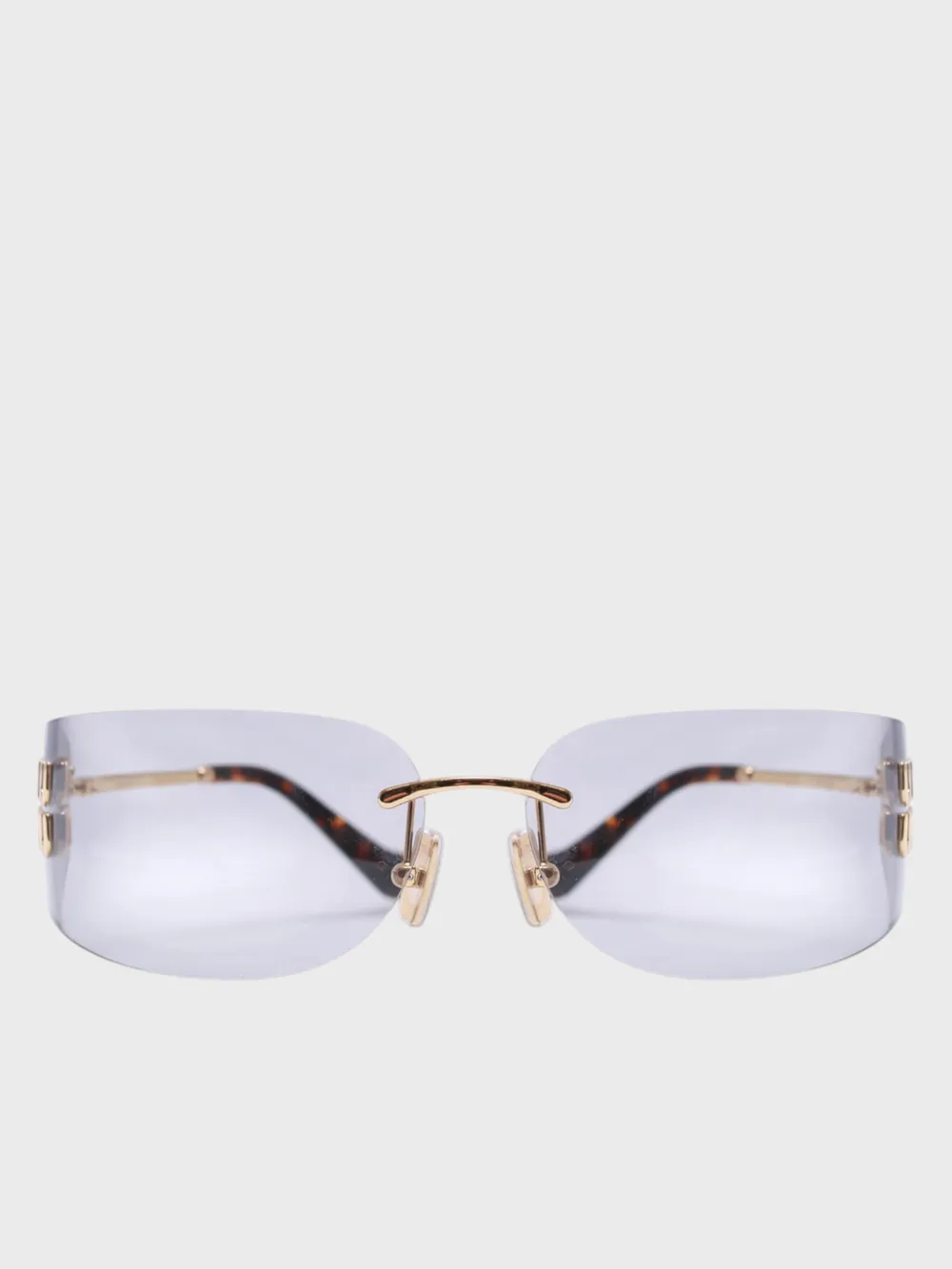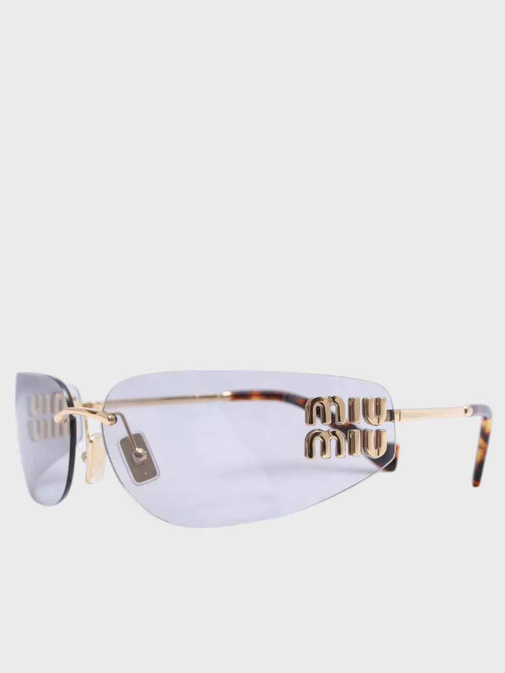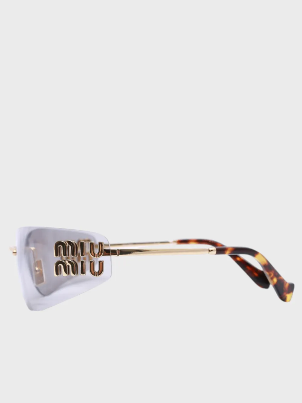 Солнцезащитные очки Miu Miu выполнены в современном геометрическом стиле с безрамной конструкцией. Модель сочетает зеркальные линзы и изящные золотистые детали, дополненные тонкой отделкой в тигровый узор. Логотип бренда нанесен на одну из сторон линз, создавая узнаваемый акцент. Удобная оправа обеспечивает комфортную посадку, а оригинальный дизайн делает их идеальным выбором для стильных образов как в городе, так и на отдыхе.