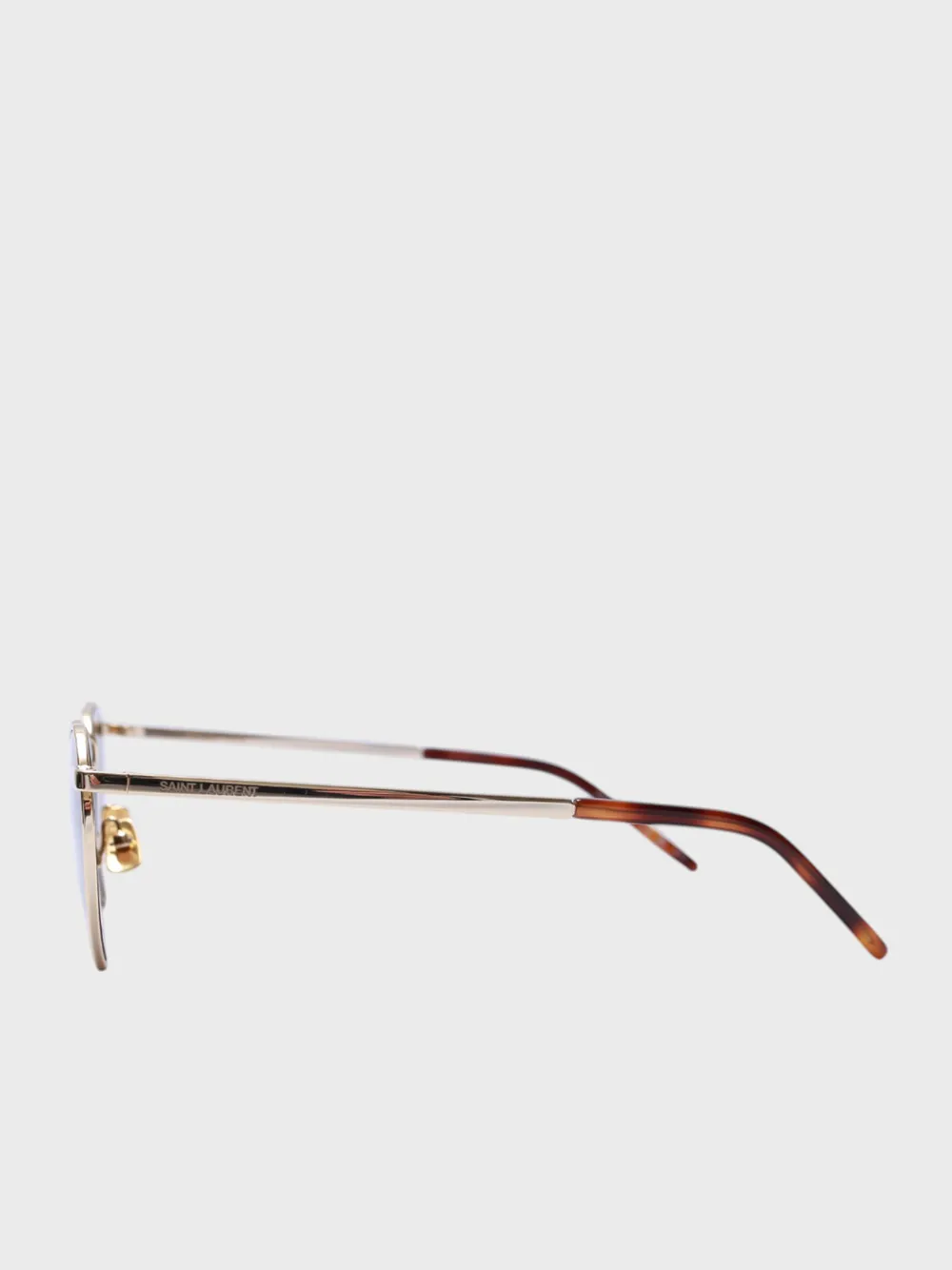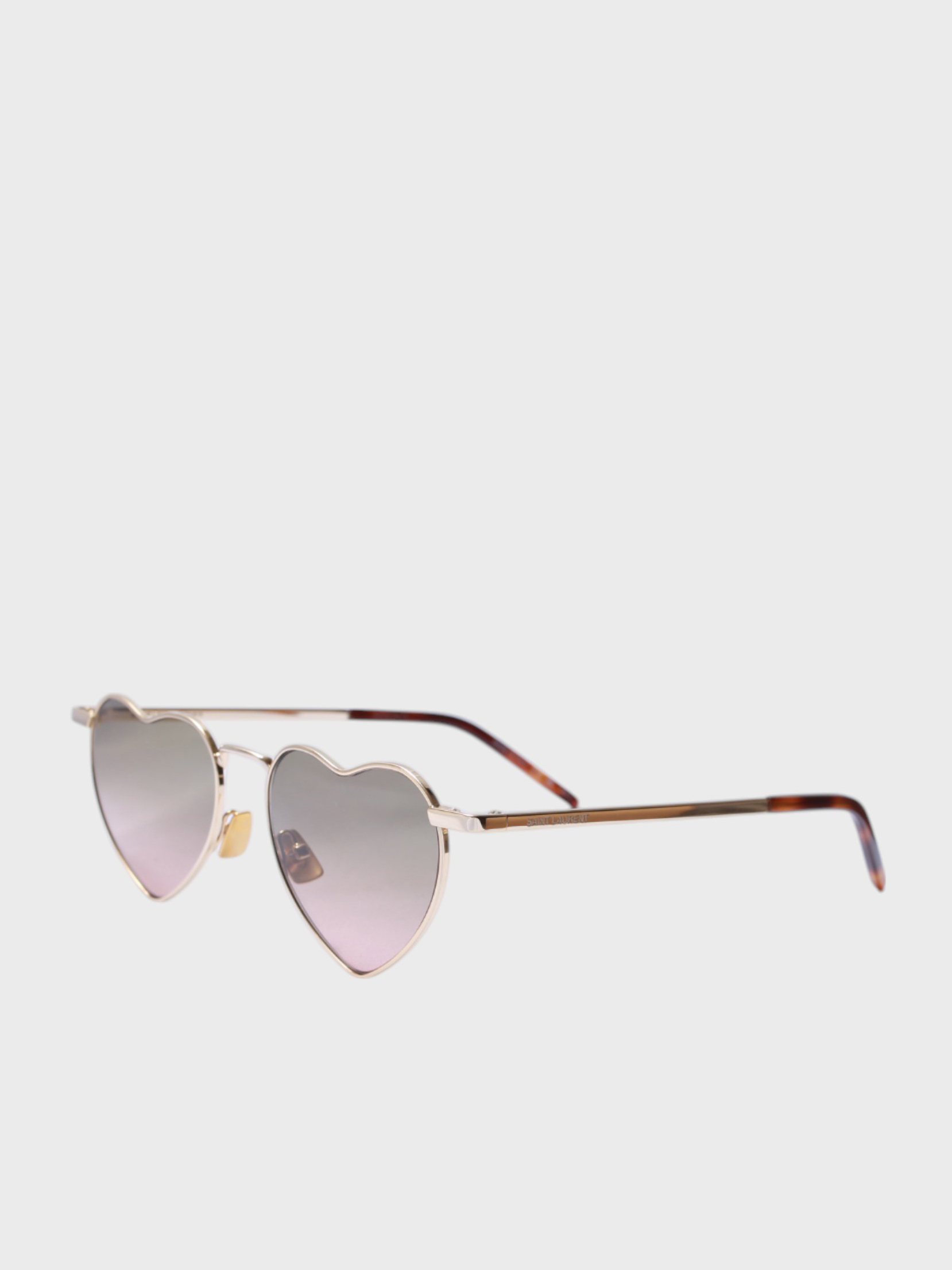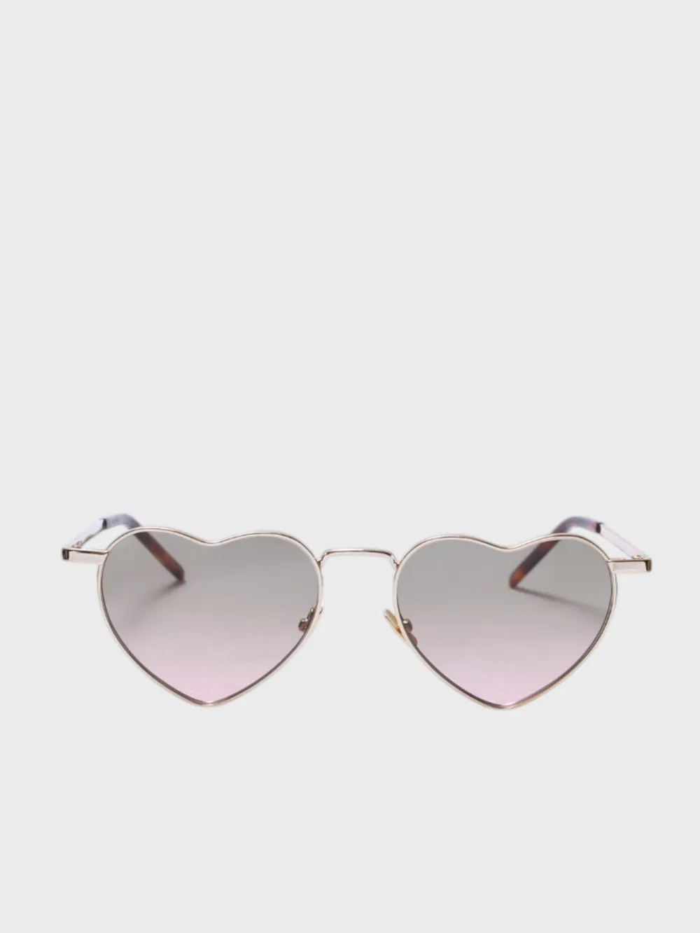 Солнцезащитные очки Saint Laurent выполнены в уникальном дизайне с оправой в форме сердца, изготовленной из высококачественного металла золотистого цвета. Линзы имеют эффектное градиентное покрытие от светло-розового до прозрачного, обеспечивая защиту от УФ-лучей и стильный внешний вид. Детали оправы дополнены акцентами в тонированном леопардовом принте, придающим модели современный и элегантный характер. Идеальный выбор для тех, кто ценит инновационность и оригинальность в аксессуарах.