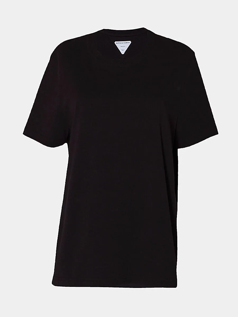 Футболка Bottega Veneta выполнена из высококачественного хлопка чёрного цвета с минималистичным кроем и без лишних деталей, подчёркивая качество материала и безупречный пошив. Модель с круглым вырезом и короткими рукавами — универсальный элемент гардероба в духе итальянской элегантности и современной роскоши.