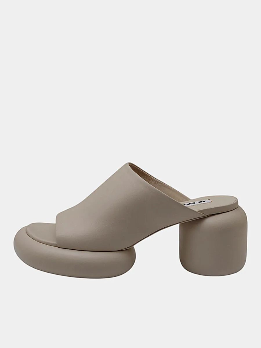 Сабо Jil Sander выполнены из мягкого бежевого материала с минималистичным дизайном и устойчивым каблуком. Модель отличается простотой форм и элегантностью, сочетая комфорт и современный стиль. Открытый носок и удобная посадка делают их идеальным выбором для повседневного или вечернего образа, подчеркивающим женственность и изысканность.