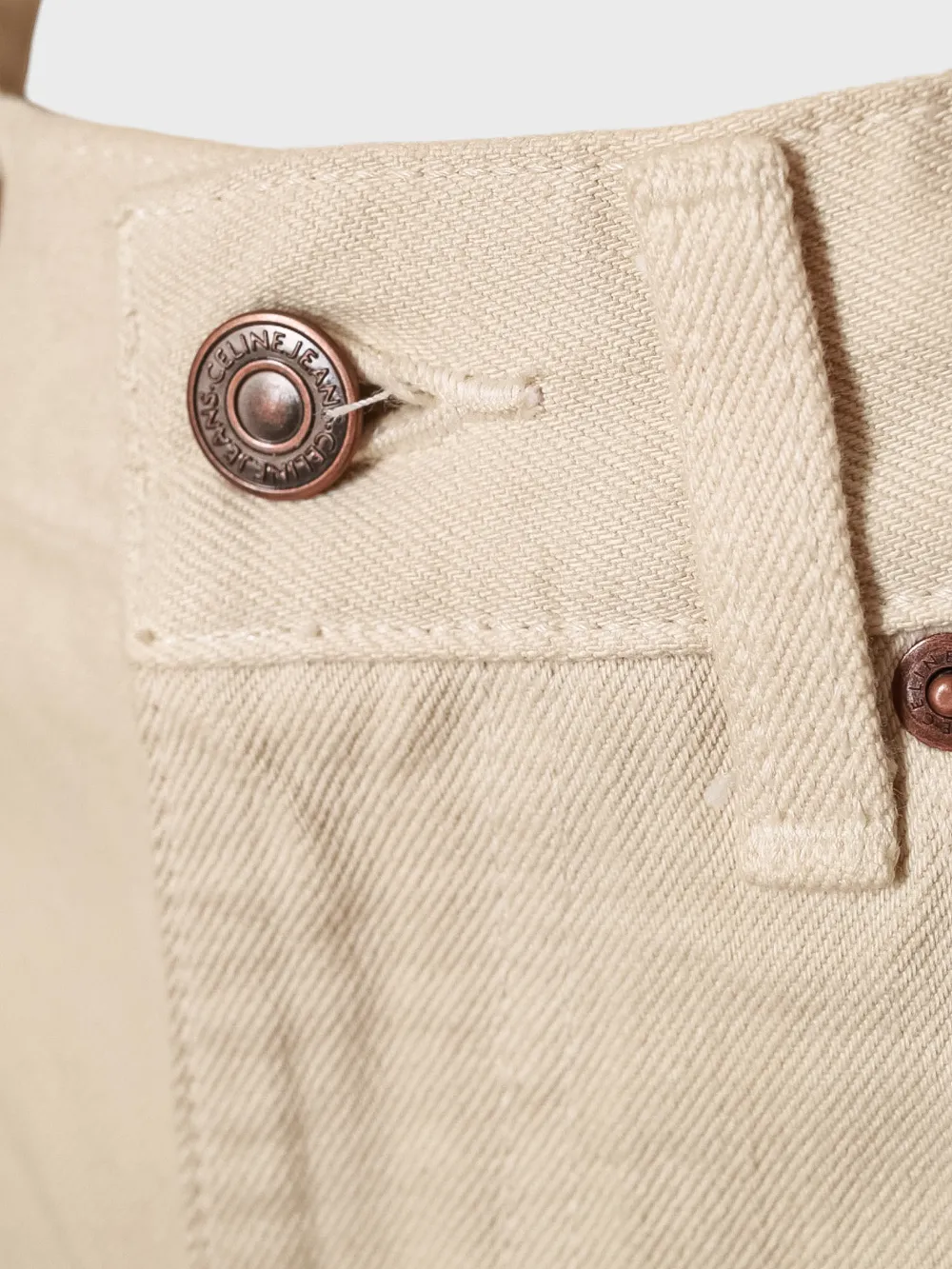 Джинсы Celine выполнены из высококачественного денима с мягким и эластичным характером. Модель классического прямого кроя дополнена удобной посадкой на талии и аккуратными деталями, включая металлические пуговицы и застежки. Стильный дизайн с контрастными швами и небольшими декоративными элементами делает эти джинсы универсальным предметом гардероба для создания модных и комфортных образов.