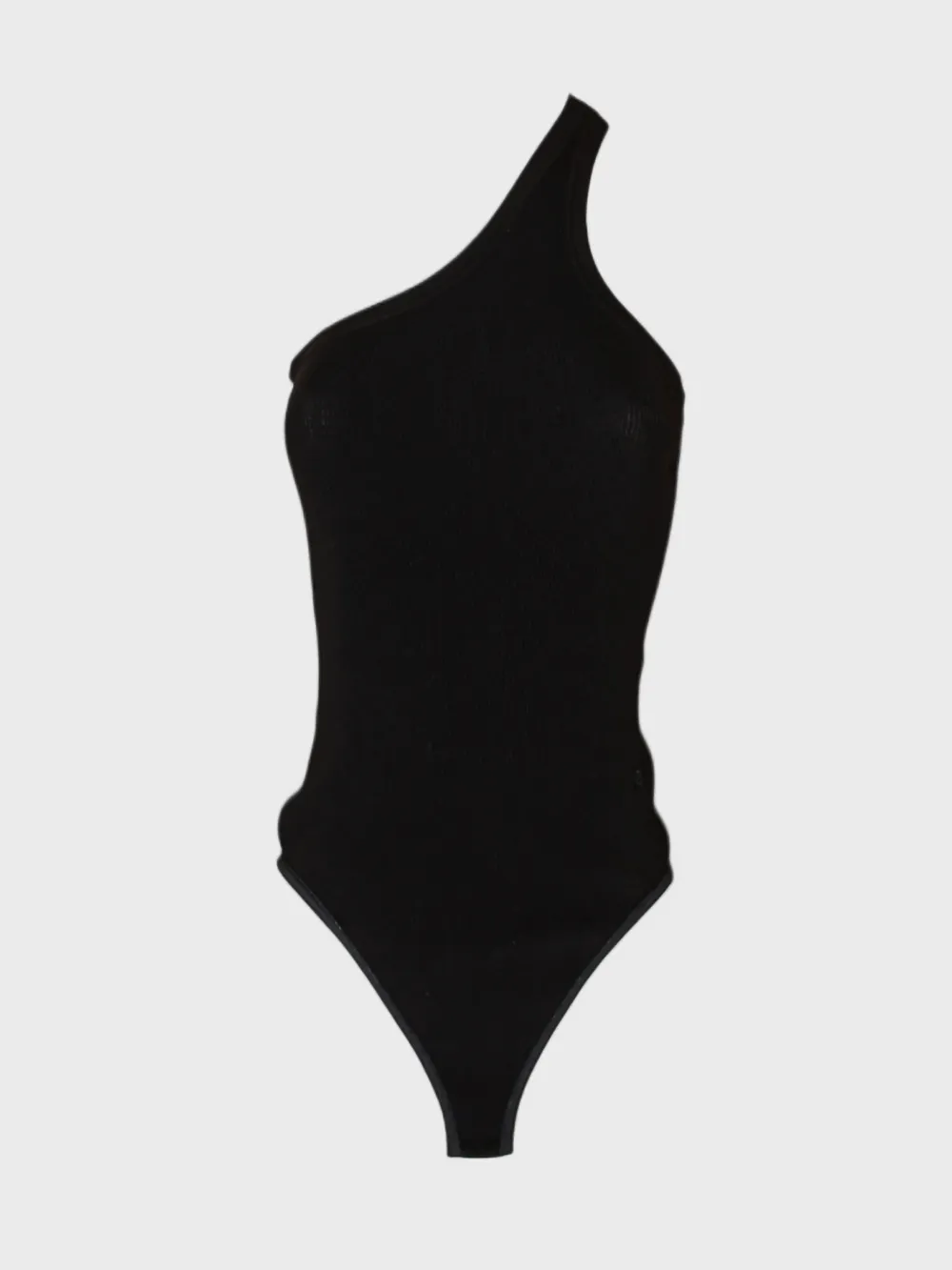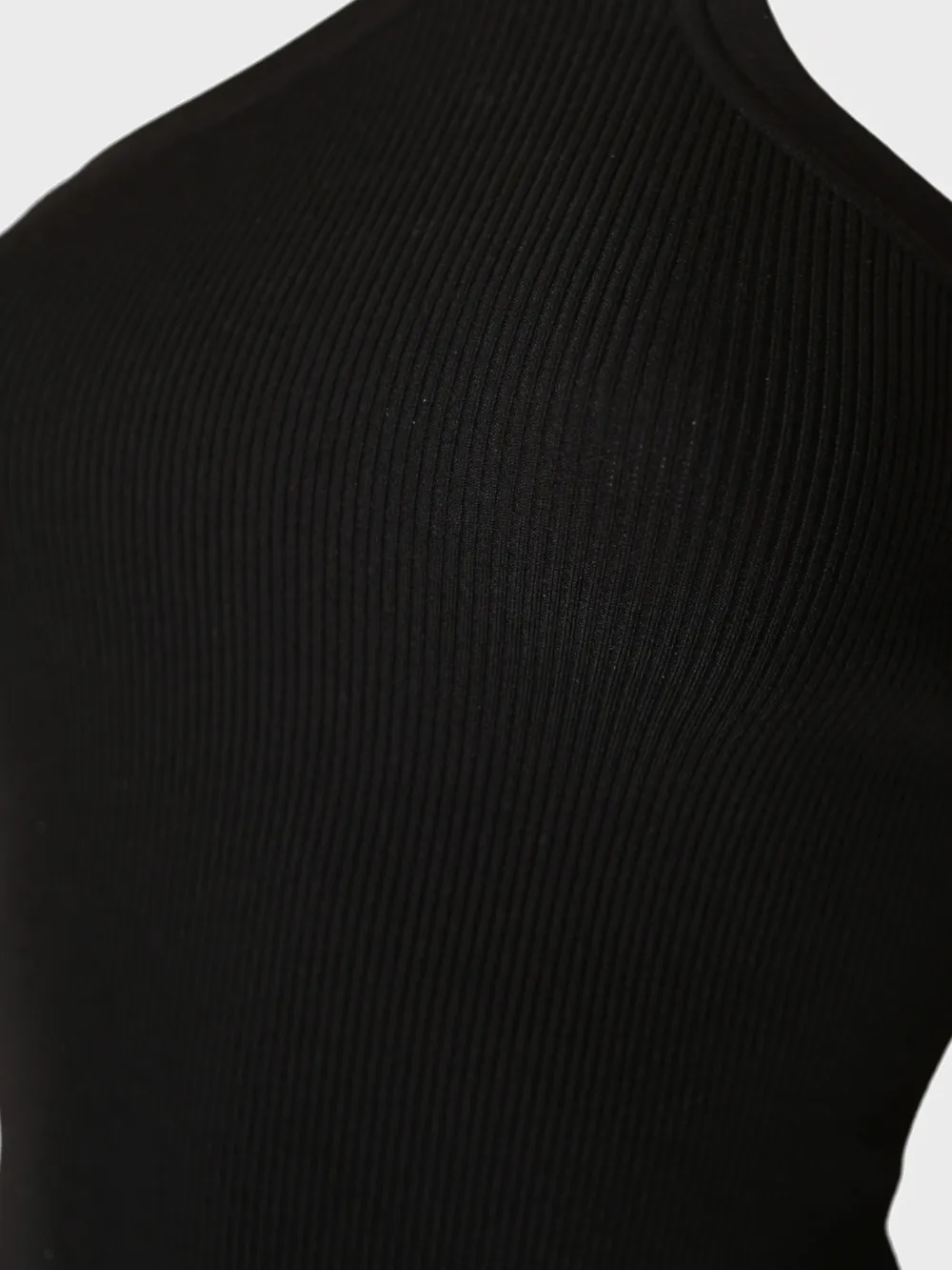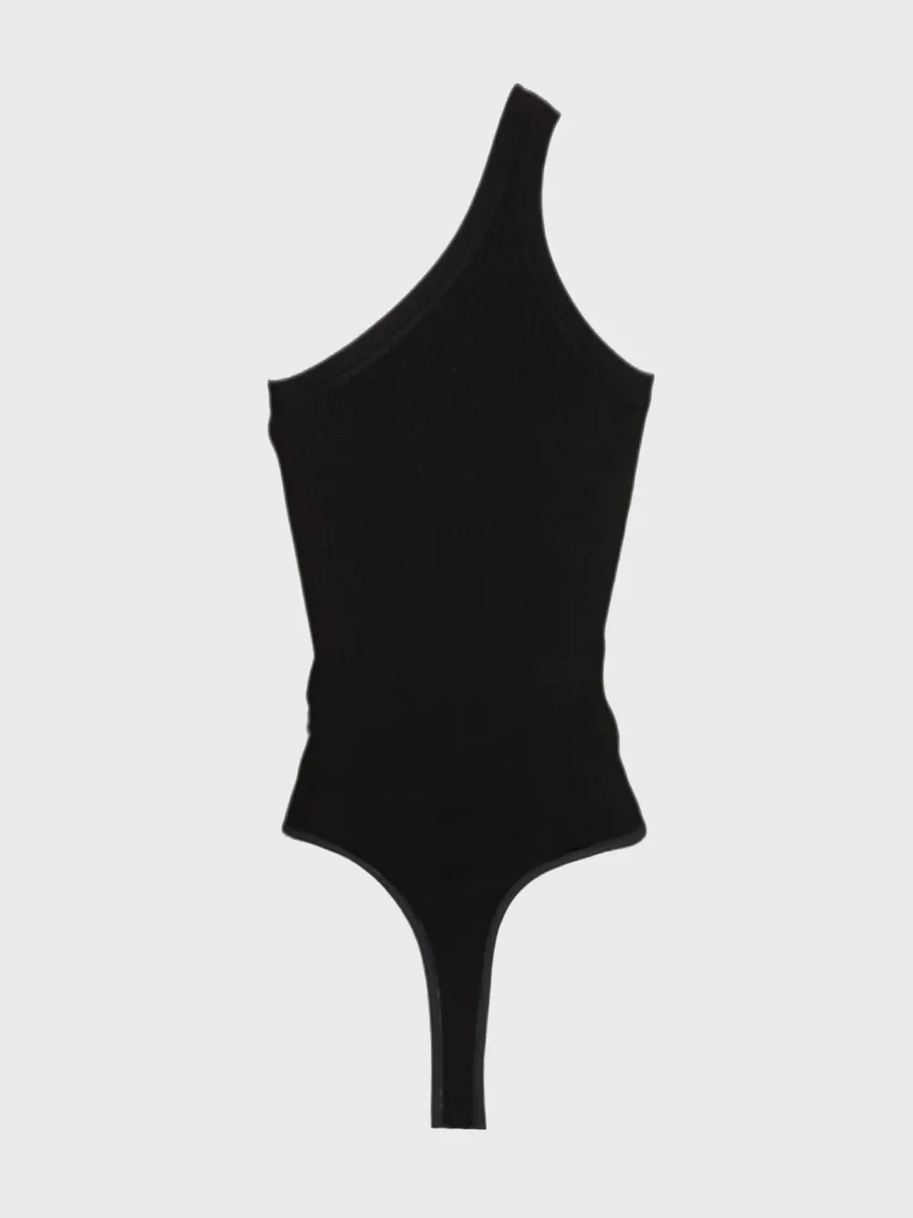 Боди Celine выполнено из высококачественного трикотажа с черным цветом и текстурой рип-стоп. Модель классического прямого кроя дополнена контрастными деталями по линии талии и бедер, добавляющими элегантность и стиль. Стильный дизайн с безрукавным кроем и аккуратной посадкой делает это боди универсальным элементом гардероба для создания модных и комфортных образов.