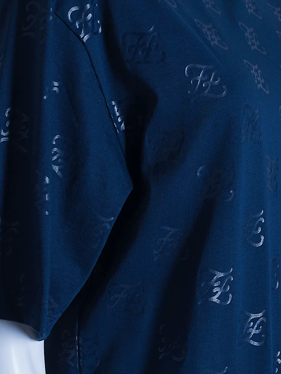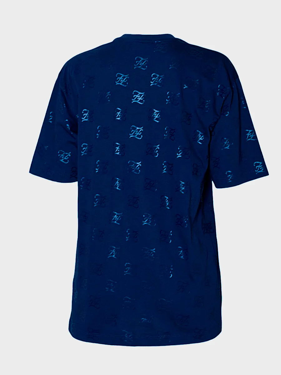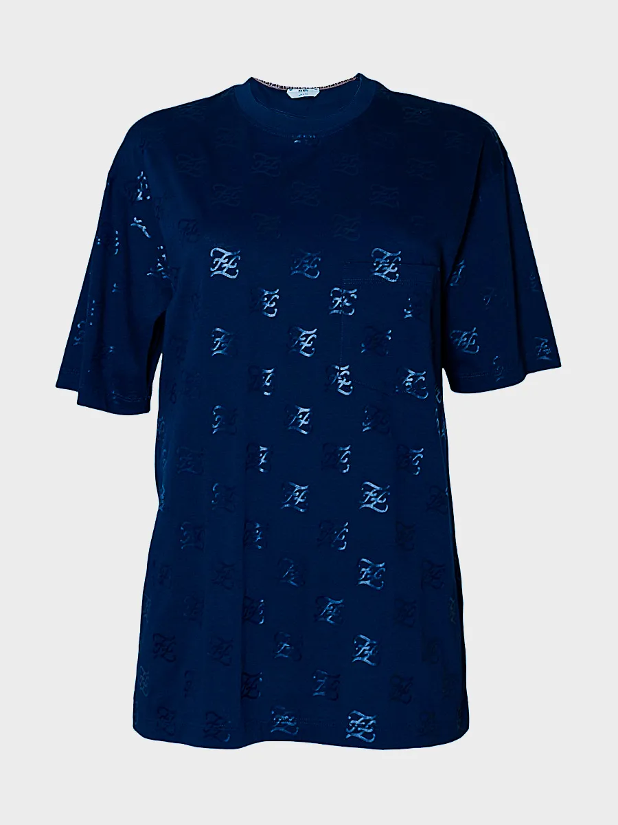 Футболка Fendi выполнена из плотного темно-синего хлопка с повторяющимся логотипом «FF» в тонкой вышивке — сочетание классики и узнаваемого стиля бренда. Модель свободного кроя с круглым вырезом и короткими рукавами подчеркивает комфорт и универсальность. Детали: текстурированная поверхность и лаконичный дизайн делают её идеальным элементом повседневного образа. Истинное воплощение роскоши и современности.