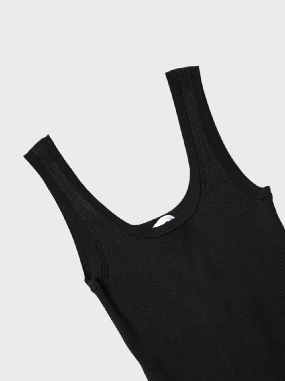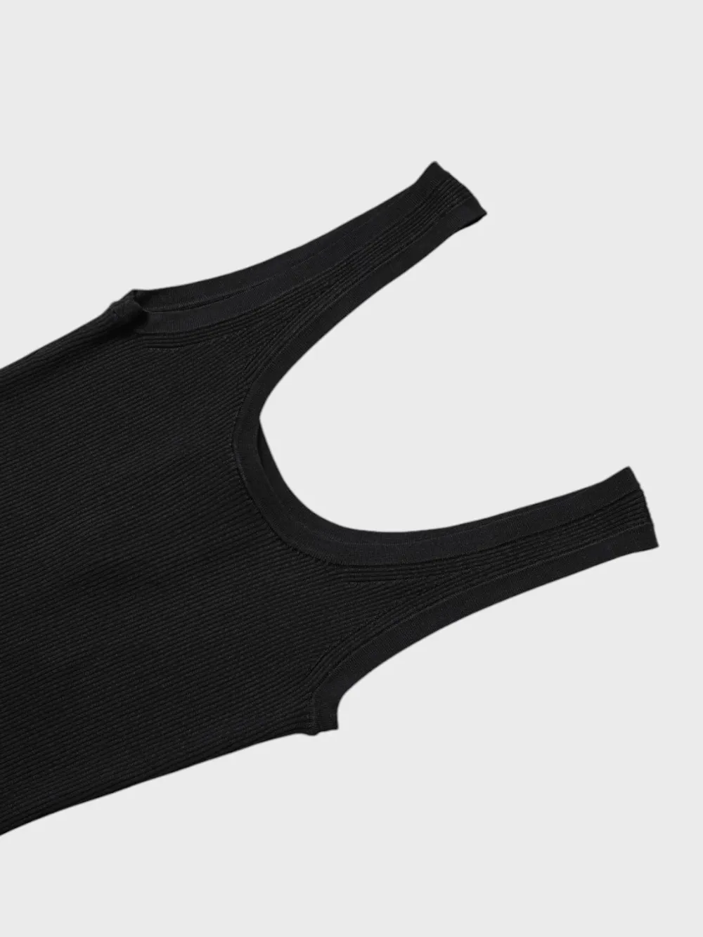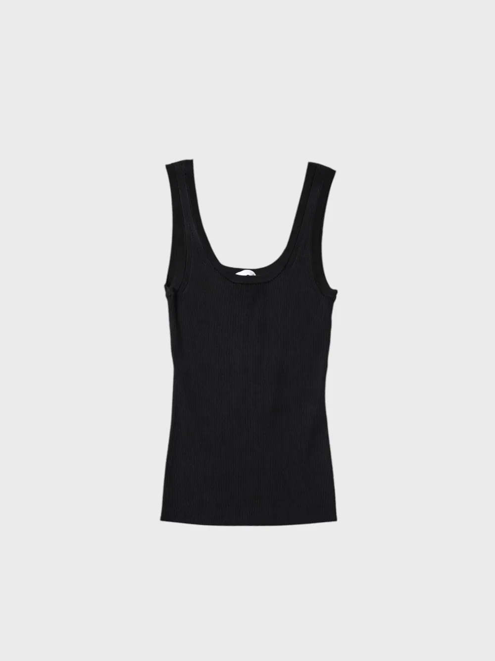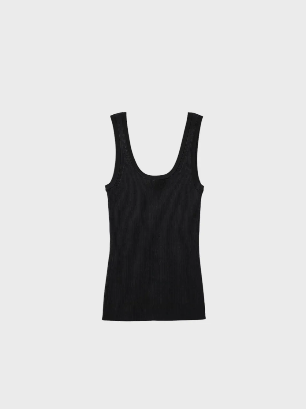 Майка Zimmermann выполнена из черного трикотажа с комфортным облегающим кроем. Модель дополнена тонкими бретелями и округлым вырезом горловины, что обеспечивает удобную посадку. Простой дизайн и высокое качество материалов делают майку идеальным выбором для повседневного стиля или базового гардероба.