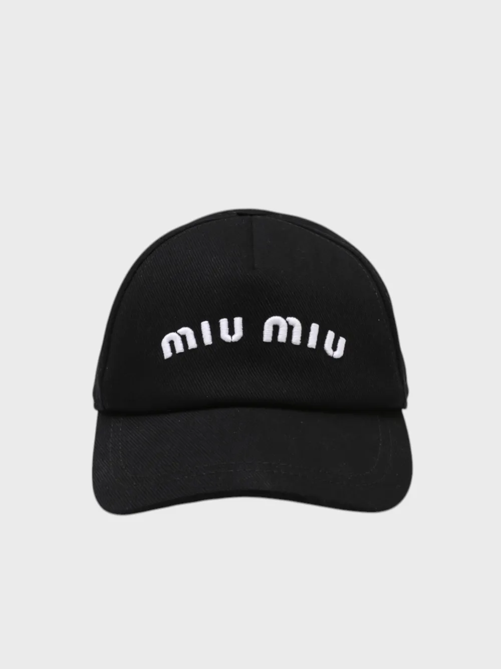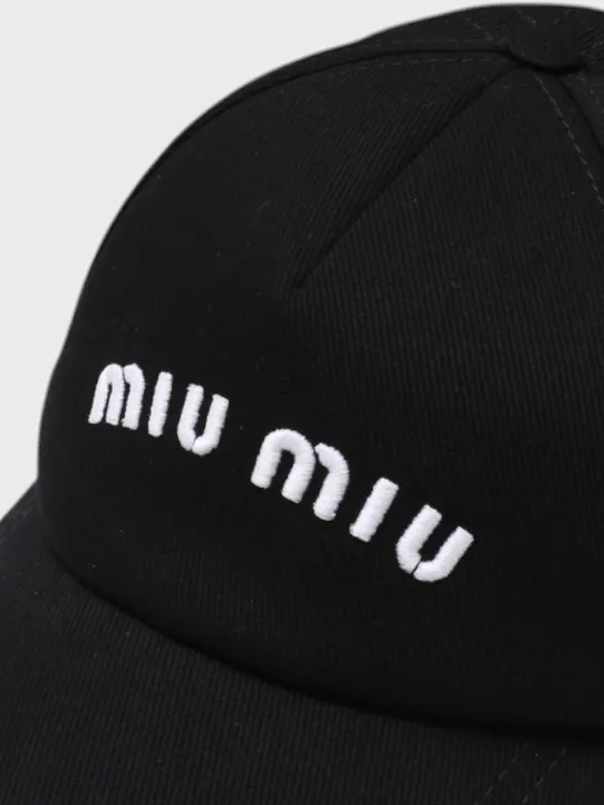 Бейсболка Miu Miu выполнена из черной ткани с текстурой, придающей модели современный и элегантный вид. Модель дополнена вышитым белым логотипом бренда на передней части, который создает узнаваемый стиль. Регулируемая застежка на затылке обеспечивает комфортную посадку для различных размеров головы. Идеальный выбор для повседневного использования — сочетает практичность и модный дизайн в единстве.