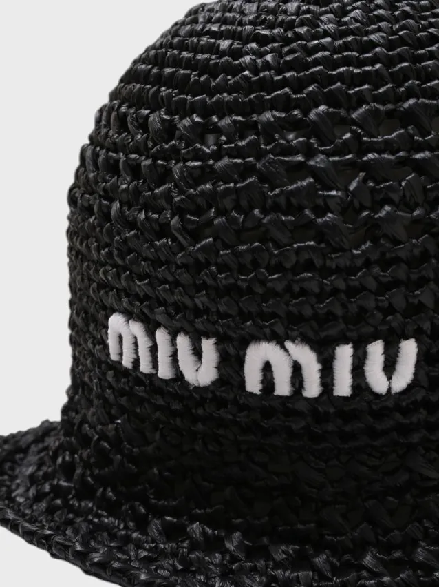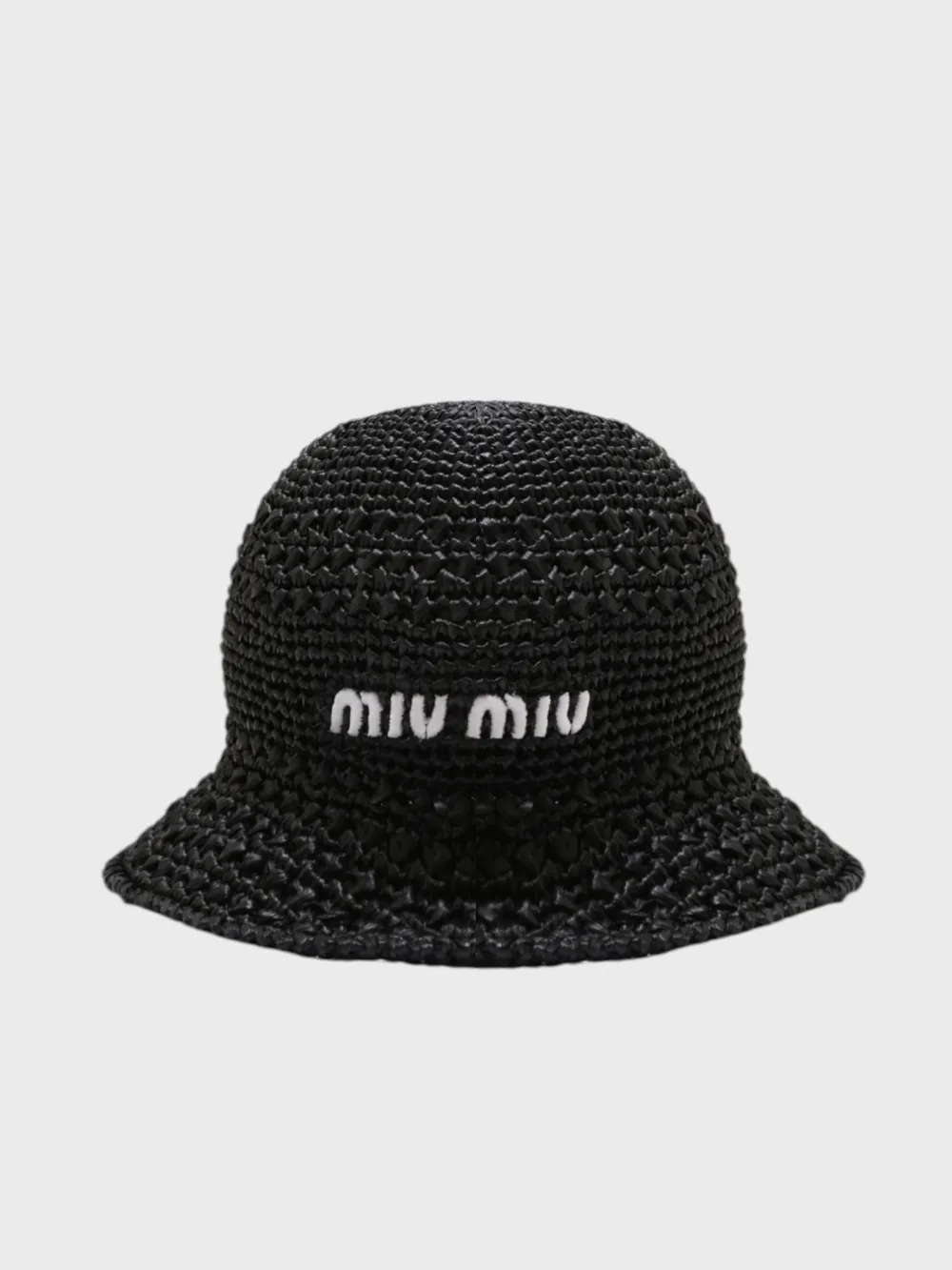 Панама Miu Miu выполнена из натурального ротанга черного цвета с традиционным плетением. Модель дополнена вышитым белым логотипом бренда на передней части, который создает узнаваемый стиль. Широкая тулья обеспечивает комфортную посадку и защиту от солнца. Идеальный выбор для летнего сезона — сочетает практичность и элегантность в единстве.