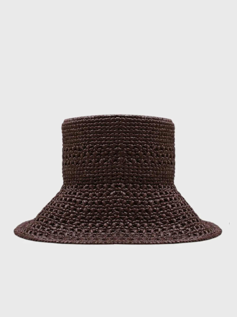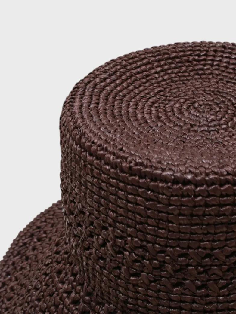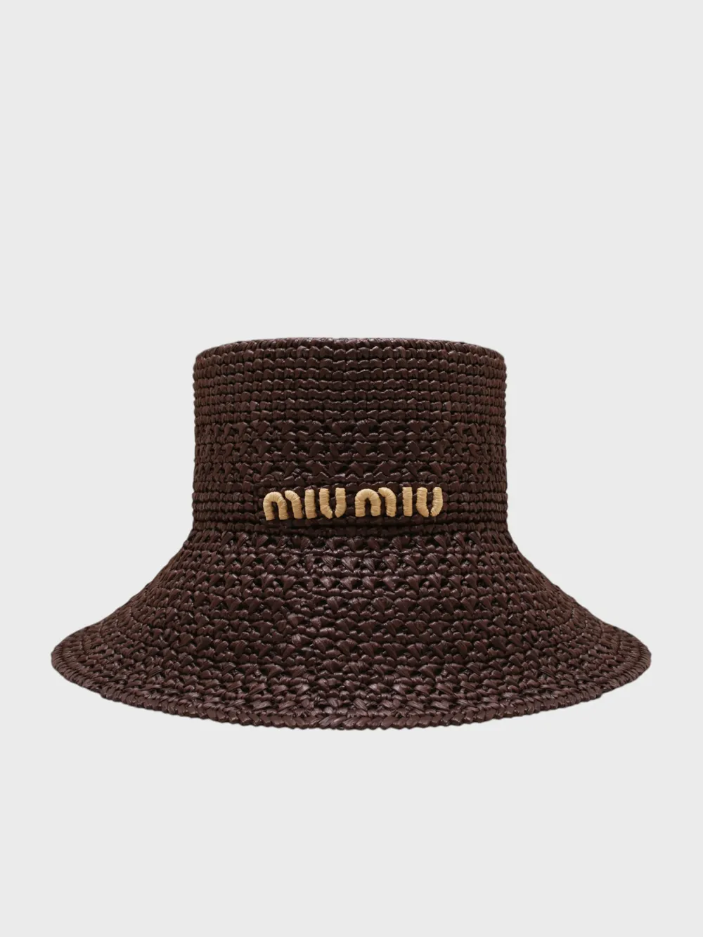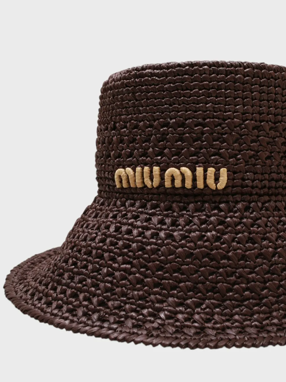Панама Miu Miu выполнена из натурального плетеного материала коричневого цвета, который обеспечивает легкость и комфорт при ношении. Модель дополнена вышитым золотым логотипом бренда на передней части, что создает узнаваемый стиль. Широкая козырек защищает от солнца, а компактный размер делает ее идеальной для повседневного использования. Идеальный выбор для тех, кто ценит качество и модный дизайн в аксессуарах.