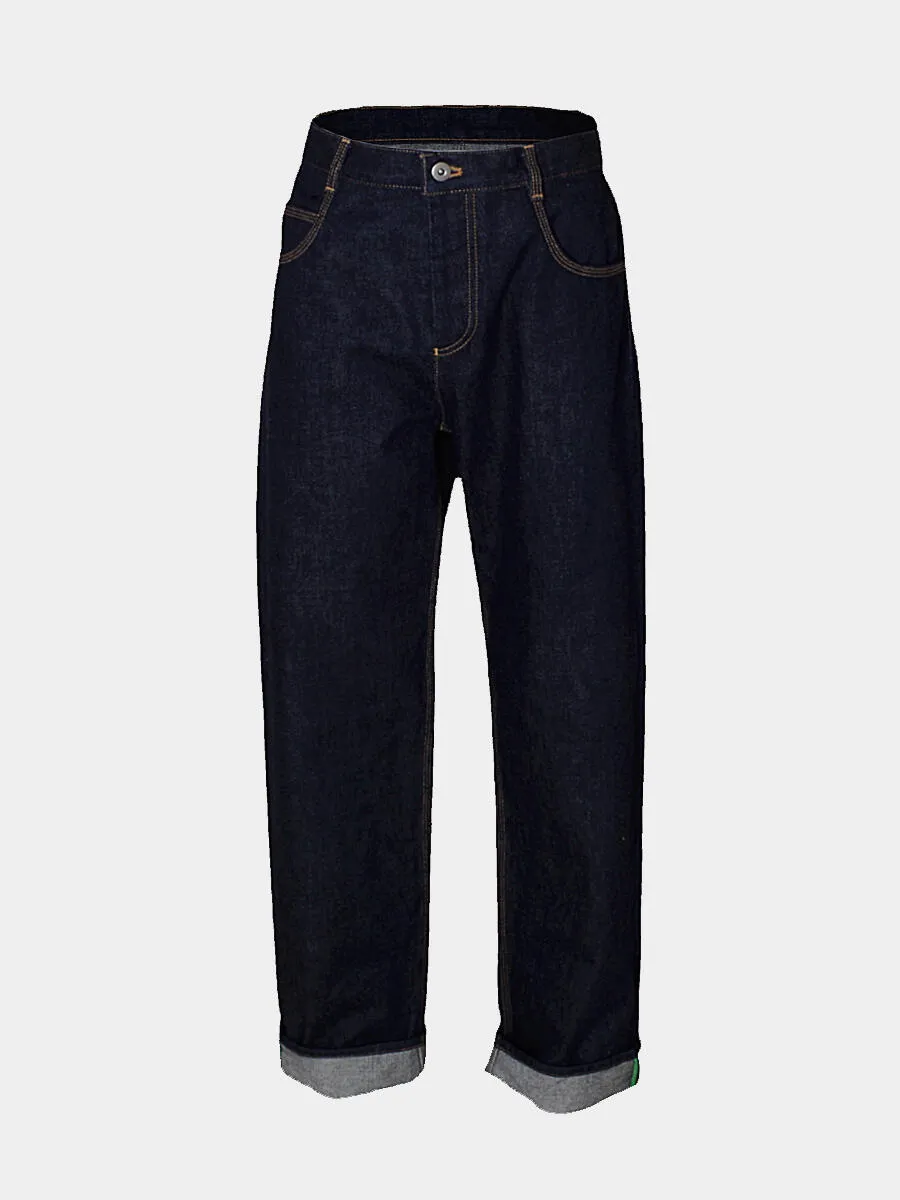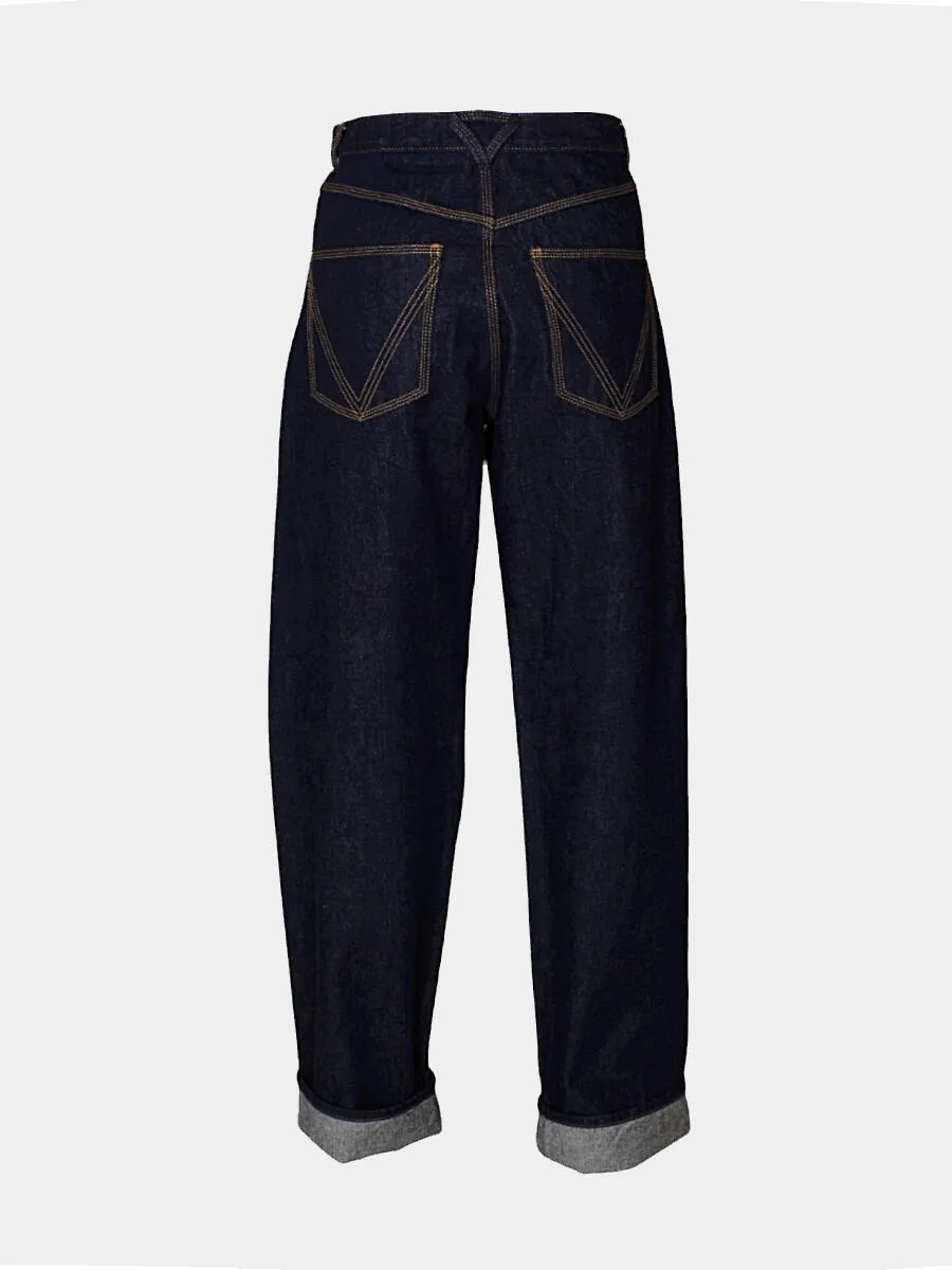 Джинсы Bottega Veneta выполнены из плотного темно-синего денима с высокой посадкой и прямым кроем — сочетание классики и современного стиля. Модель с широкими штанинами, аккуратными складками на подоле и контрастной строчкой подчеркивает качество исполнения. Детали: металлическая пуговица, фирменные накладные карманы и тонкая отделка придают изделию утонченный вид. Идеальный выбор для повседневных образов, где важна элегантность и долговечность.