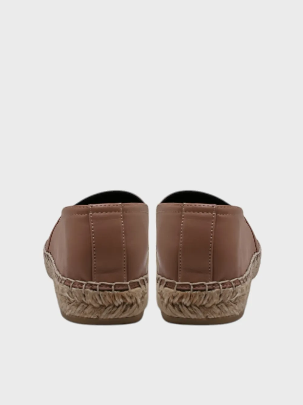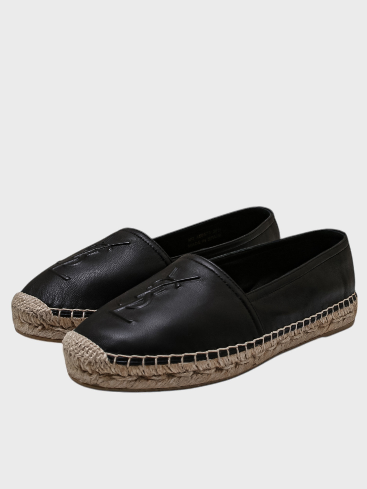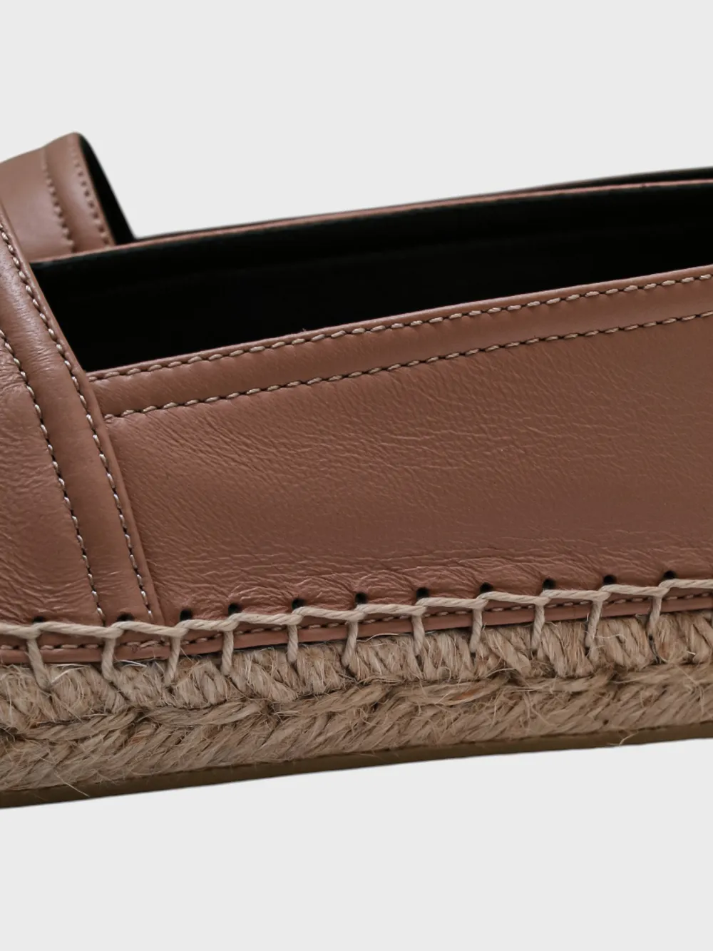 Эспадрильи Saint Laurent выполнены из светло-коричневой кожи с элегантным дизайном. Модель дополнена плетеной подошвой, которая придает ей легкость и комфорт. Детали логотипа на верхней части создают акцент на роскоши бренда. Простой крой и удобная посадка делают эти эспадрильи идеальным выбором для повседневного использования или летнего отдыха.