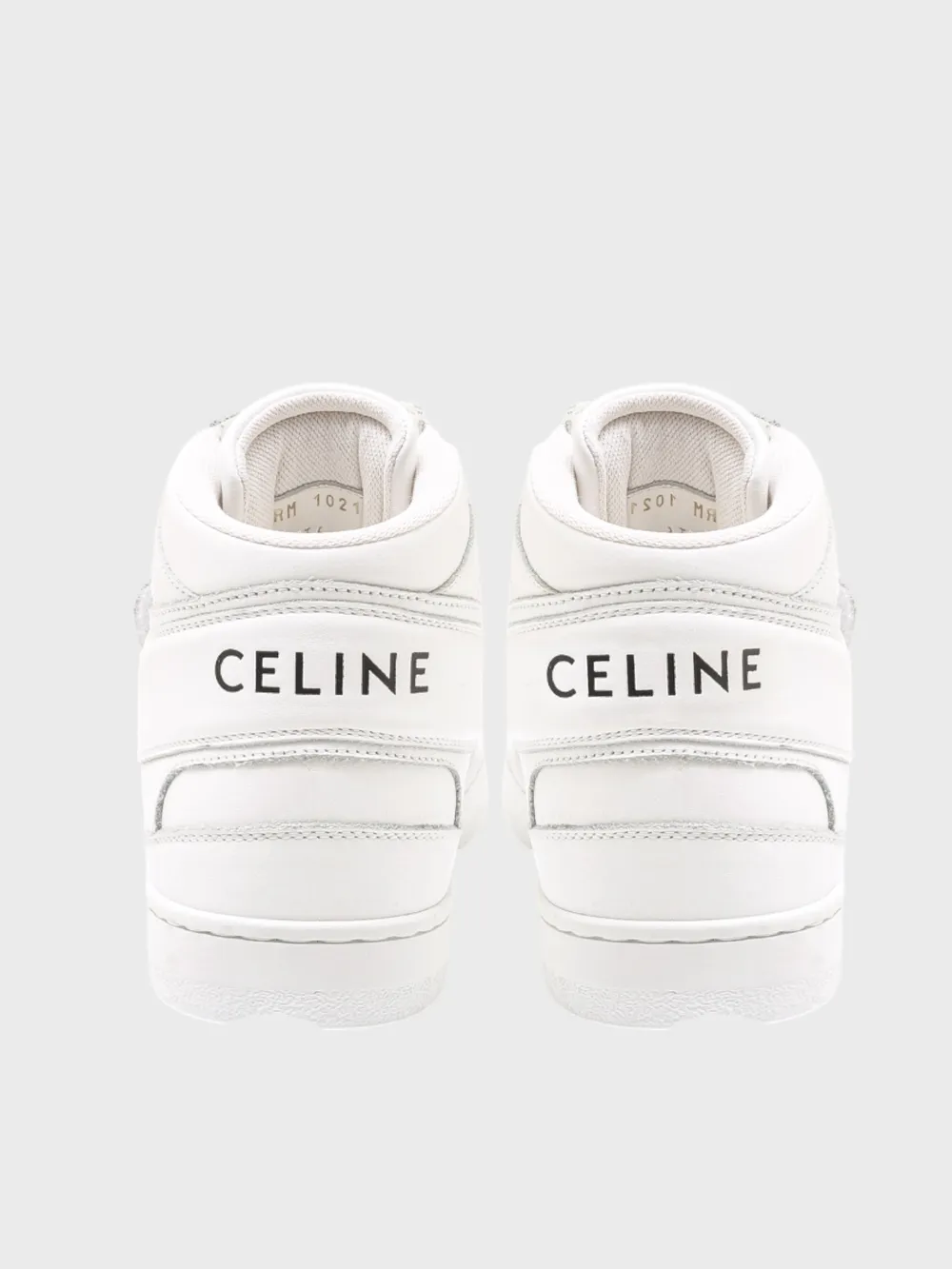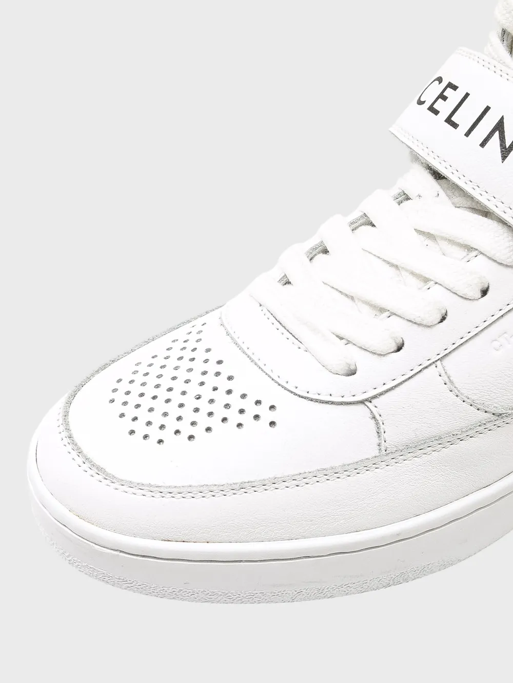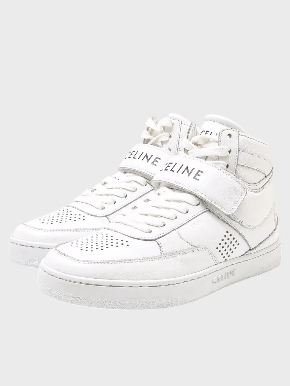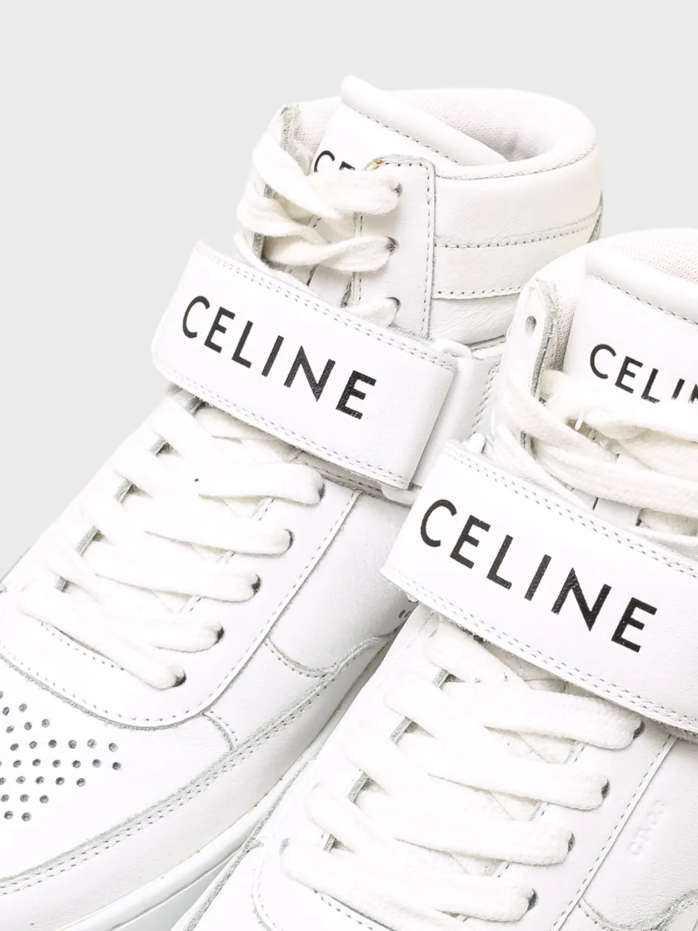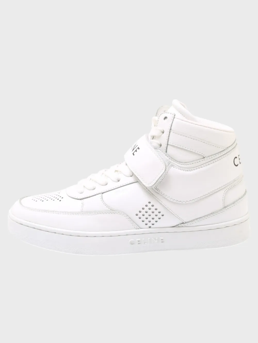 Белые кеды Celine выполнены из натуральной кожи с матовым эффектом. Модель дополнена фирменным логотипом на боковой части и перфорацией на носочной части для лучшей вентиляции. Удобная шнуровка и массивная подошва обеспечивают комфортную посадку. Идеальный выбор для современного стиля и повседневной носки.