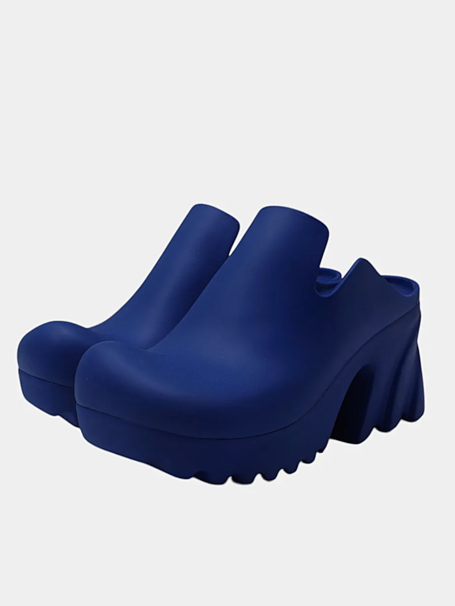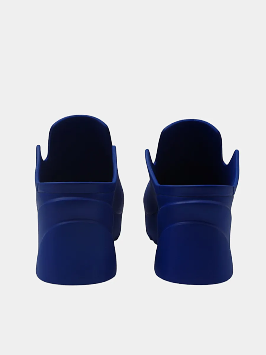 Сабо Bottega Veneta выполнены из качественного гладкого материала насыщенного синего цвета. Модель дополнена элегантным дизайном с широкой полосой на заднике и рифленой подошвой, обеспечивающей комфорт при ходьбе. Простой крой сочетается с современным минималистичным стилем, подчеркивающим безупречное качество исполнения. Без застежек и ремешков, эти сабо идеально подходят для повседневного образа, добавляя уверенности и удобства в каждый день.