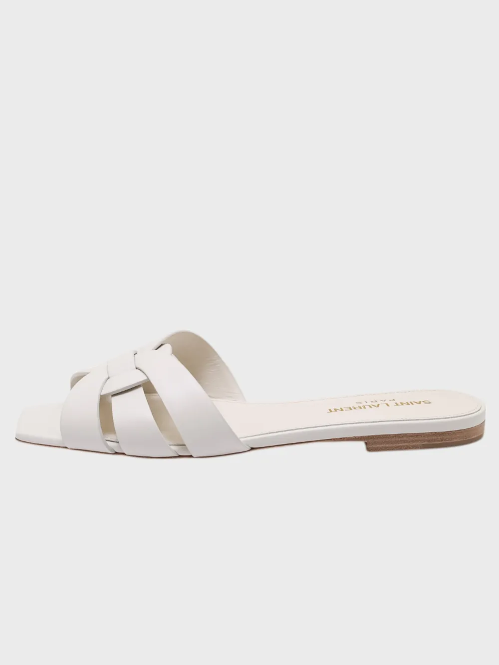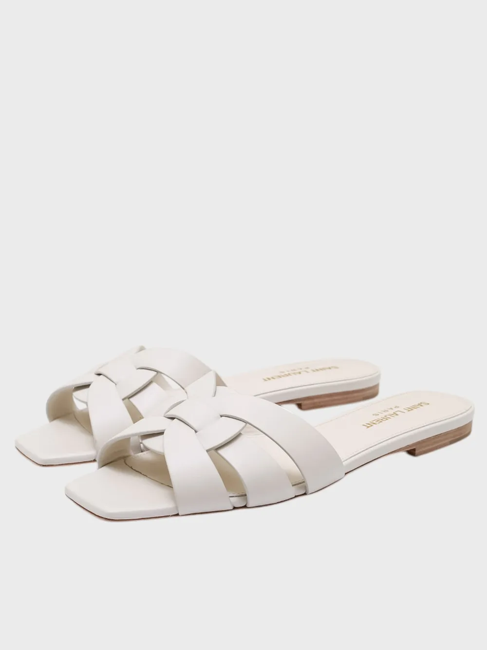 Шлепки выполнены из натуральной белой кожи с элегантным плетением на носке, что придает модели современный и утонченный вид. Модель дополнена мягкой подошвой для максимального комфорта. Простой дизайн идеально сочетается как с повседневными, так и с вечерними образами. Идеальный выбор для летнего сезона или отдыха.