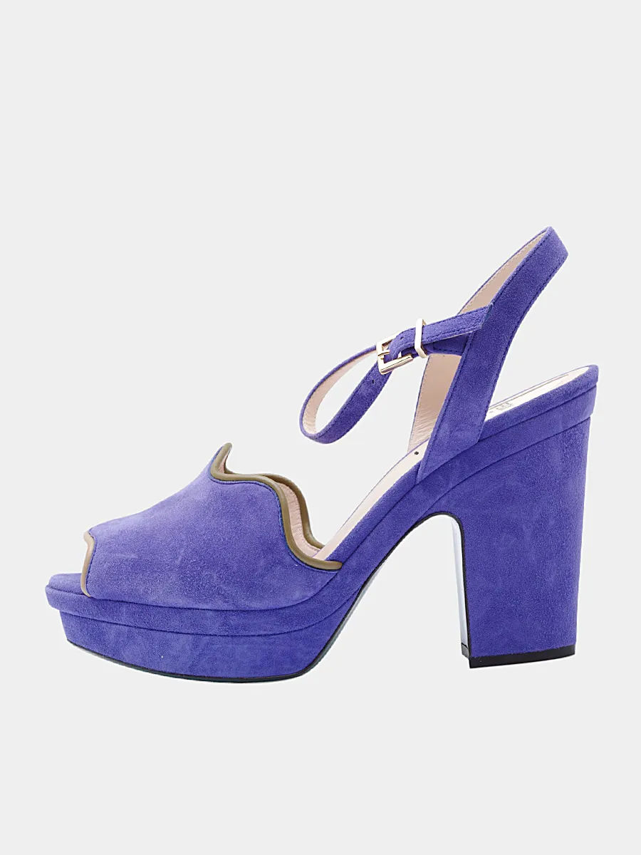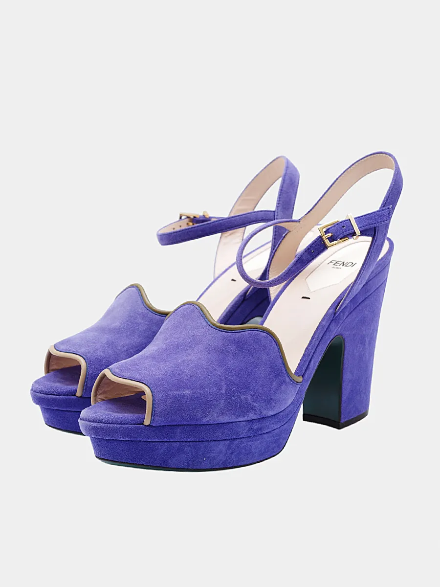 Туфли Fendi выполнены из качественной замши ярко-синего цвета с контрастной подошвой. Модель дополнена ремешком на щиколотке, застежкой-пряжкой и массивным квадратным каблуком средней высоты. Лаконичный дизайн и роскошная фактура делают эти туфли идеальным выбором для вечернего или делового образа.