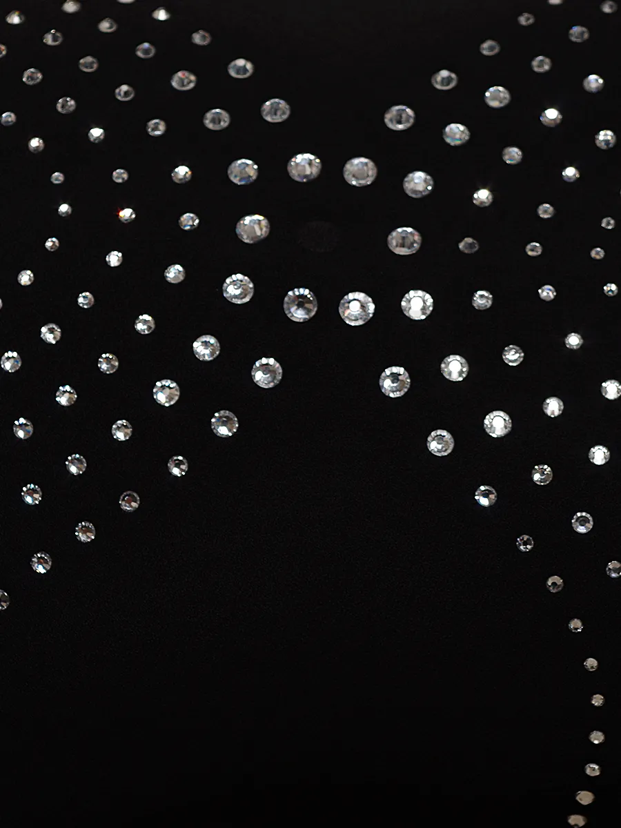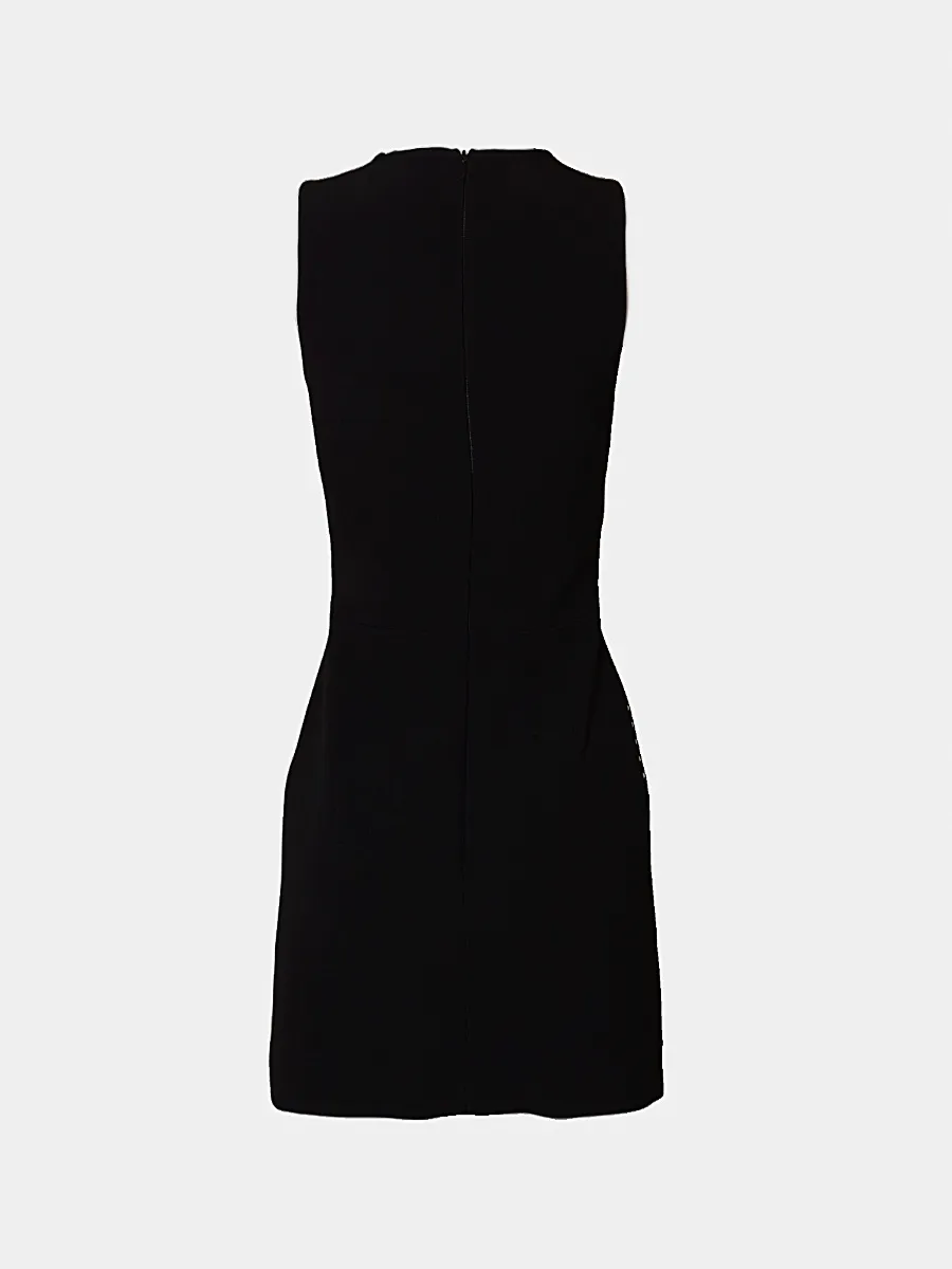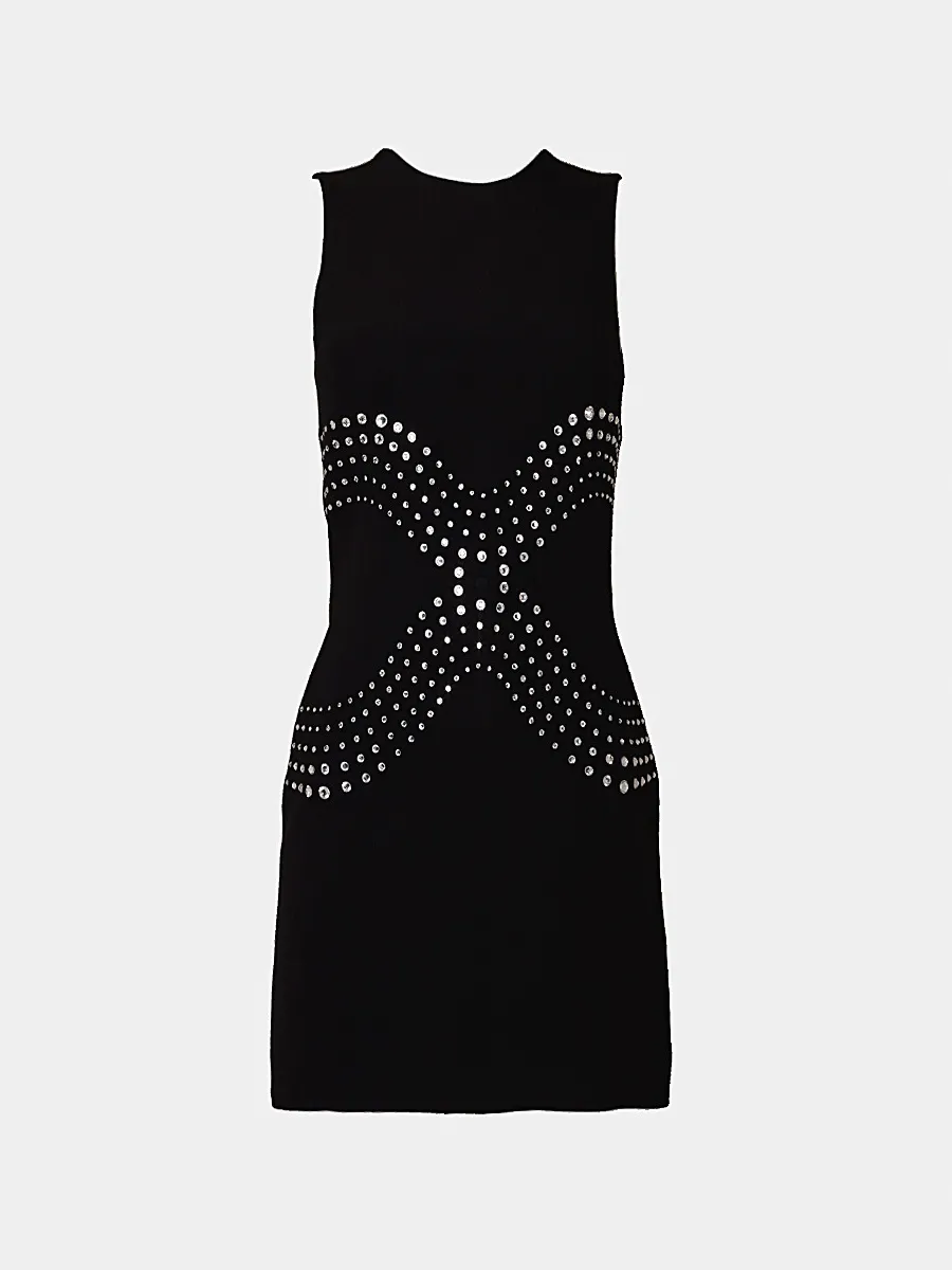 Платье David Koma выполнено из плотной фактурной ткани черного цвета с лаконичным силуэтом. Модель дополнена декоративной отделкой в виде крупных блестящих кристаллов, аккуратно расположенных в форме геометрического узора на лифе, что создает эффектный контраст с чистой текстурой основного материала. Прямой крой и высокая посадка обеспечивают комфортную посадку, а застежка на спинке делают изделие универсальным для различных случаев. Идеальный выбор для вечерних мероприятий или торжественных событий.