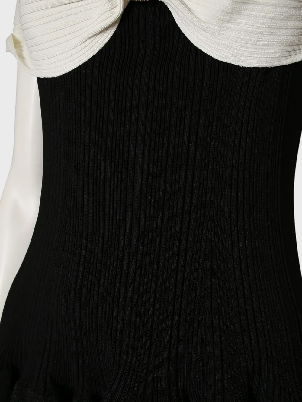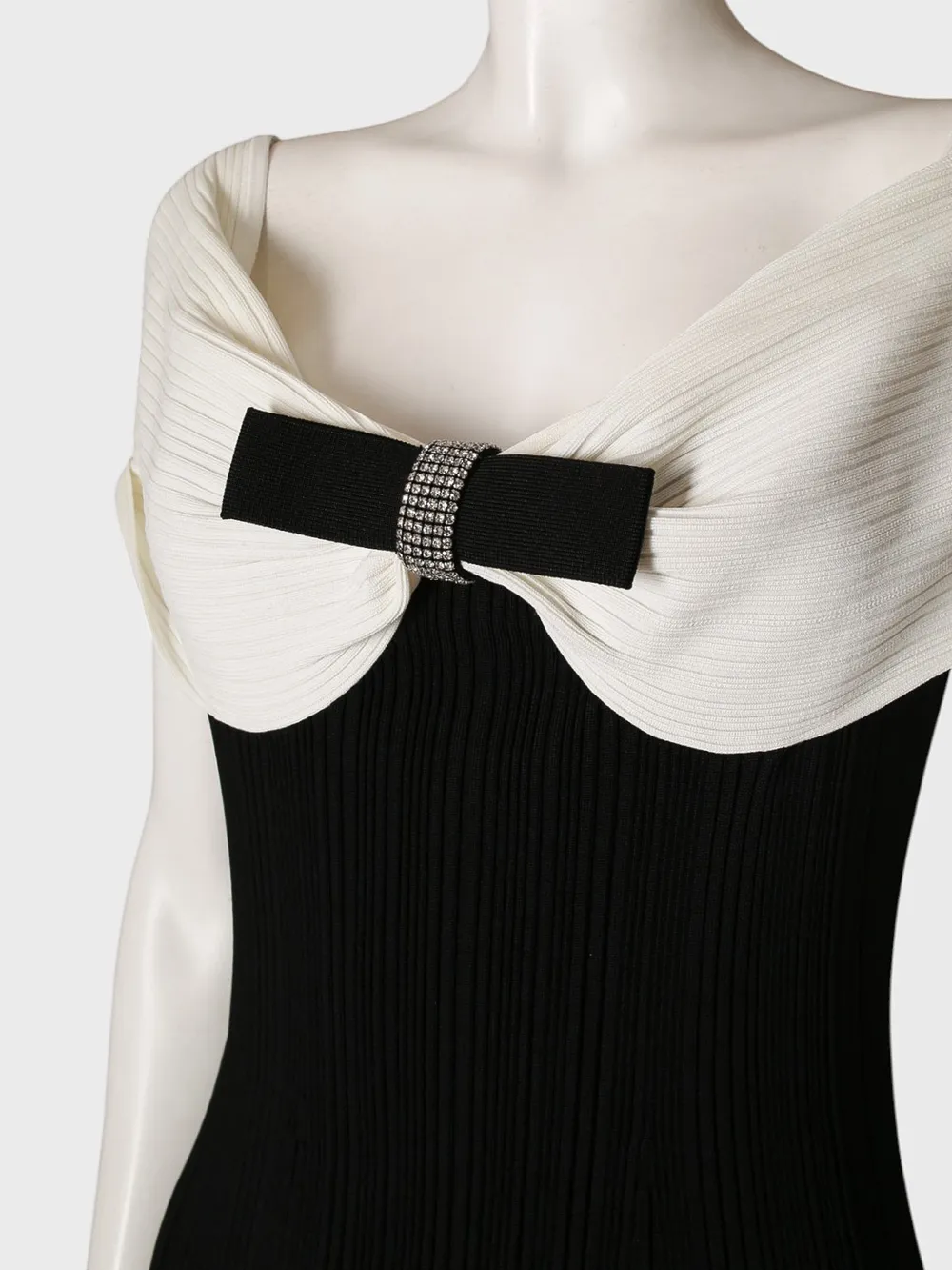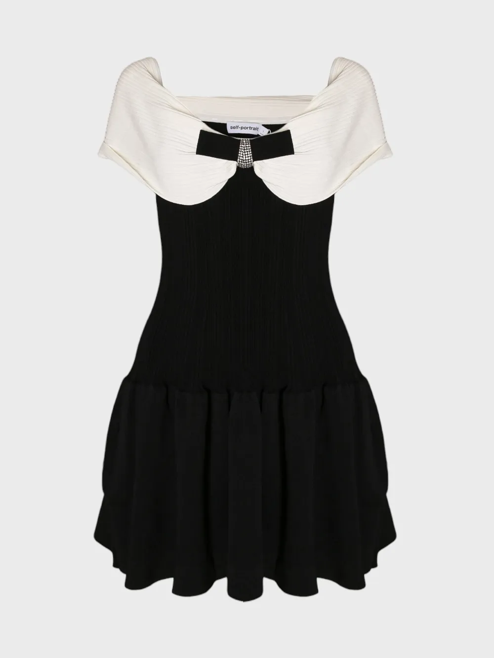 Платье Self-Portrait выполнено из качественного черного трикотажа с контрастным белым декоративным элементом на лифе. Модель без рукавов, дополнена складками и эластичной посадкой. Простой дизайн и акцент на деталях делают платье идеальным выбором для вечерних мероприятий или особенных случаев.