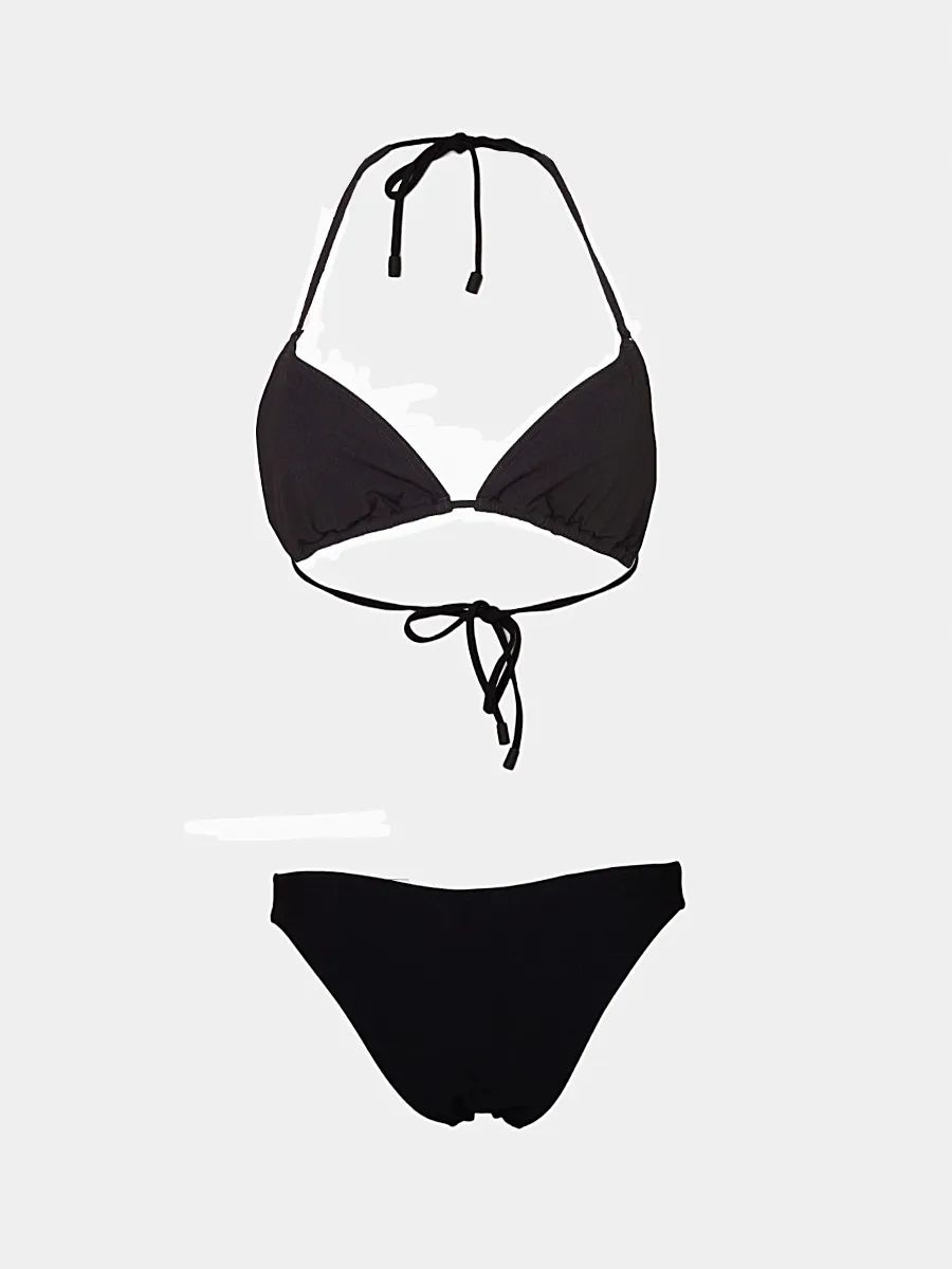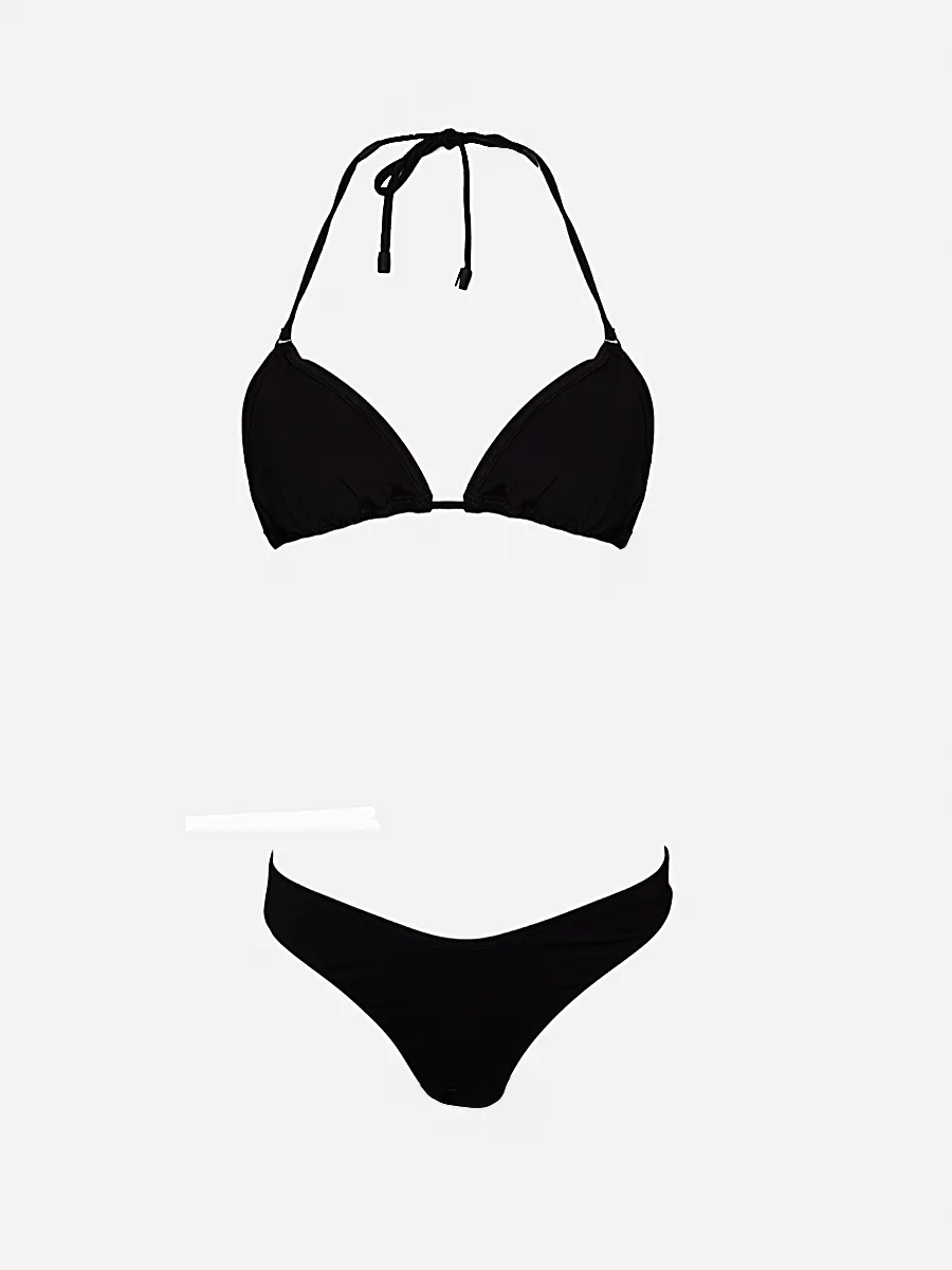 Купальник Zimmermann выполнен из плотной эластичной ткани чёрного цвета с минималистичным дизайном: треугольный топ с регулируемыми лямками на шее и застёжкой сзади, а также классическая нижняя часть подчёркивают стройность фигуры — универсальный и стильный выбор для пляжа.