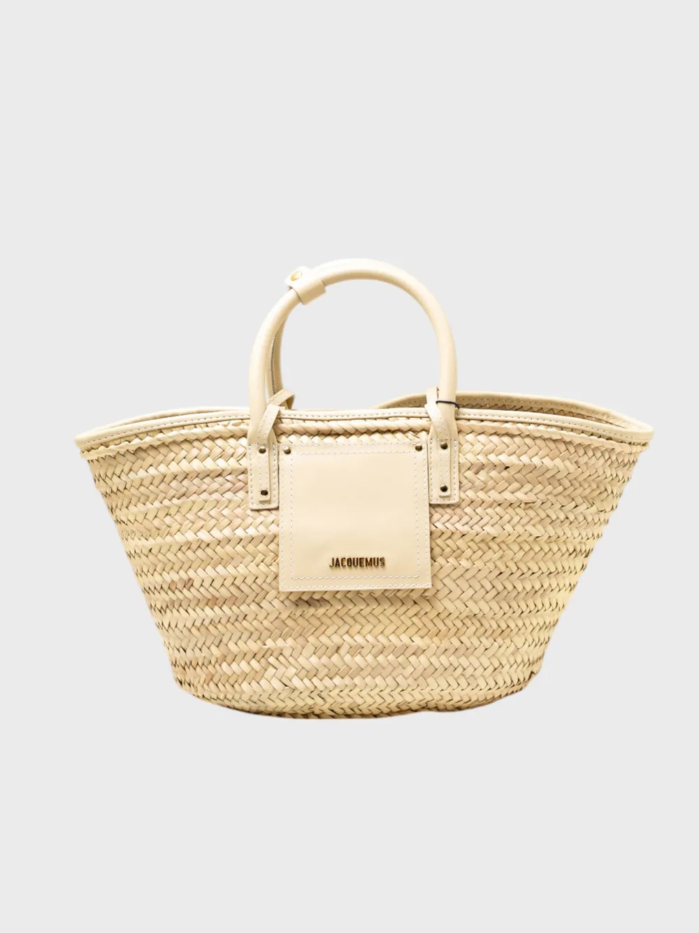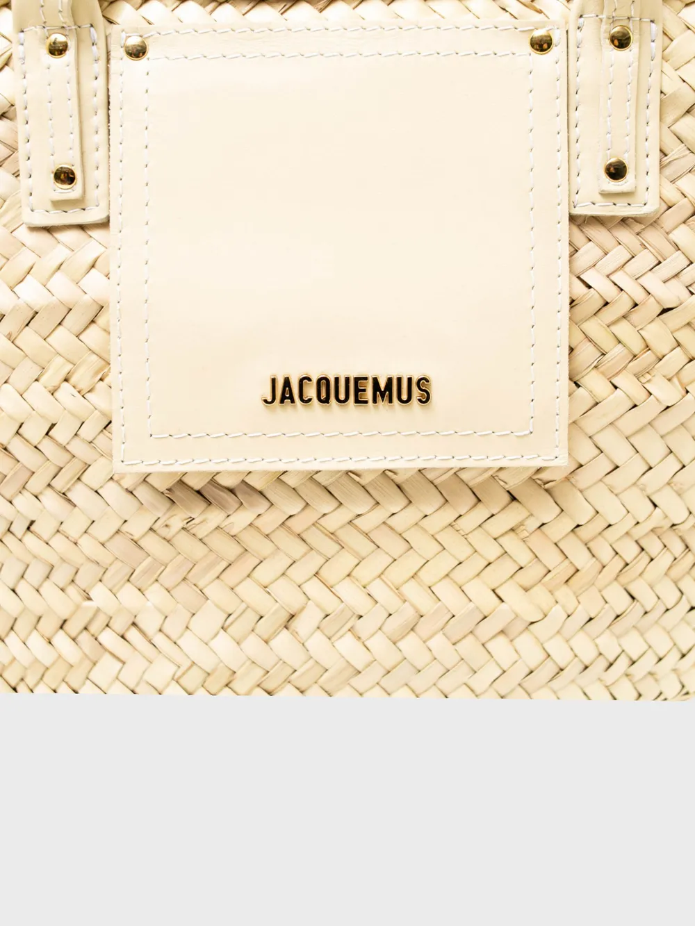 Сумка Jacquemus выполнена из натурального плетеного ротанга светло-бежевого цвета. Модель сочетает компактный прямоугольный силуэт и круглые ручки, декорированные светло-бежевой кожей для удобства ношения. Фронтальная часть украшена фирменным логотипом "JACQUEMUS" в металлической отделке, придающим изделию узнаваемость бренда. Внутри сумки просторное отделение с молнией, обеспечивающее надежное хранение вещей. Идеально для повседневного использования или отдыха на природе.