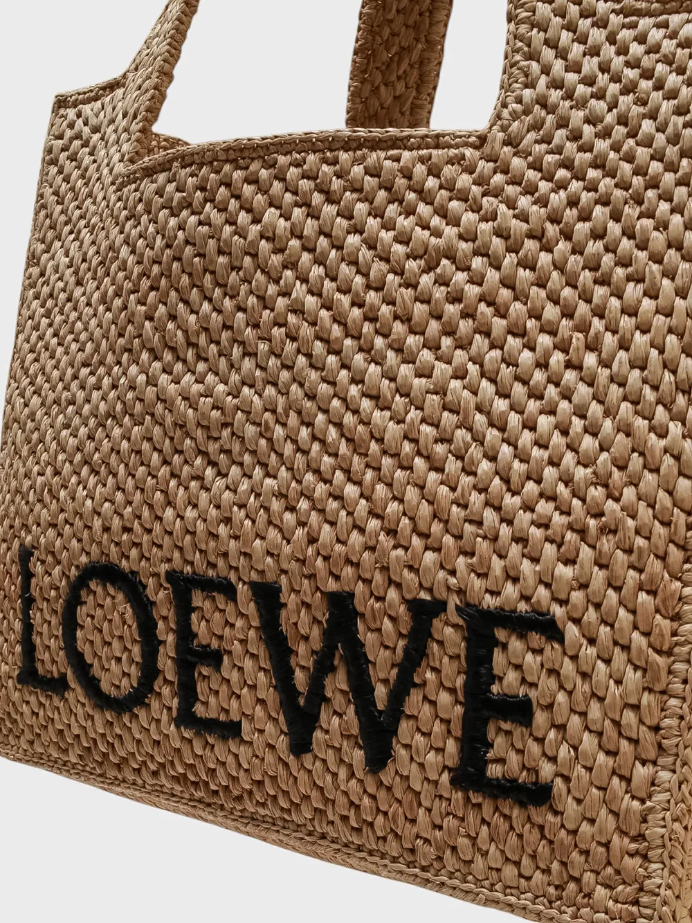 Сумка выполнена из высококачественного натурального ротанга с плотной плетеной текстурой, обеспечивающей прочность и долговечность. Дизайн лаконичный, акцентирован брендовым логотипом "LOEWE" в черном цвете на передней части. Снабжена двумя длинными плечевыми ремнями для удобной носки как на плече, так и через плечо. Вместительная конструкция идеально подходит для повседневного использования, прогулок или деловых встреч. Материал придает сумке экологичность и стильный вид, сохраняющий актуальность в любое время года.