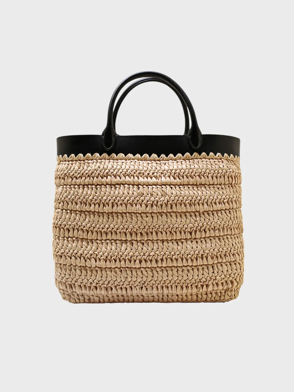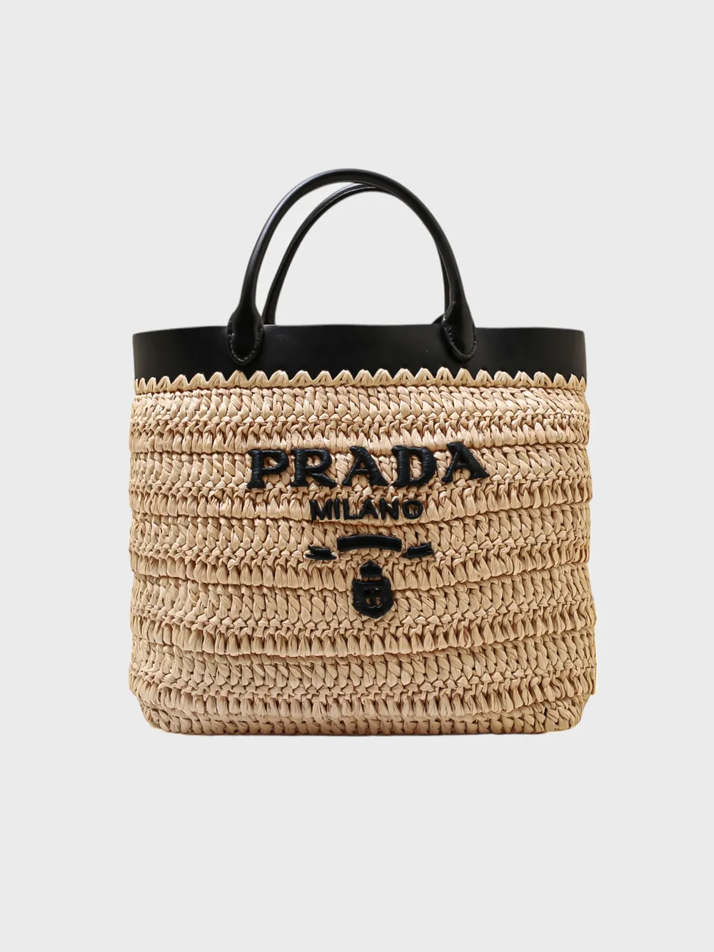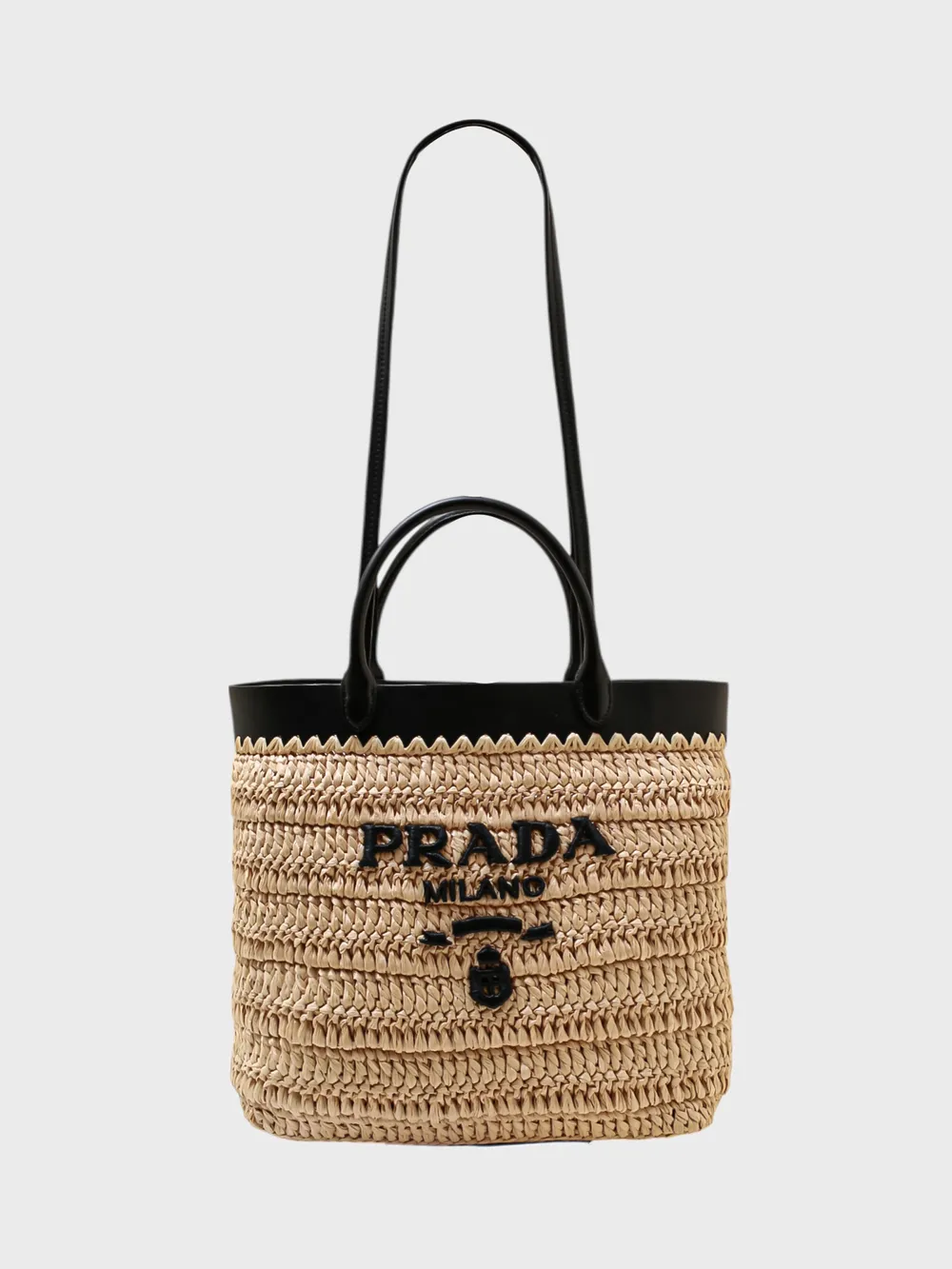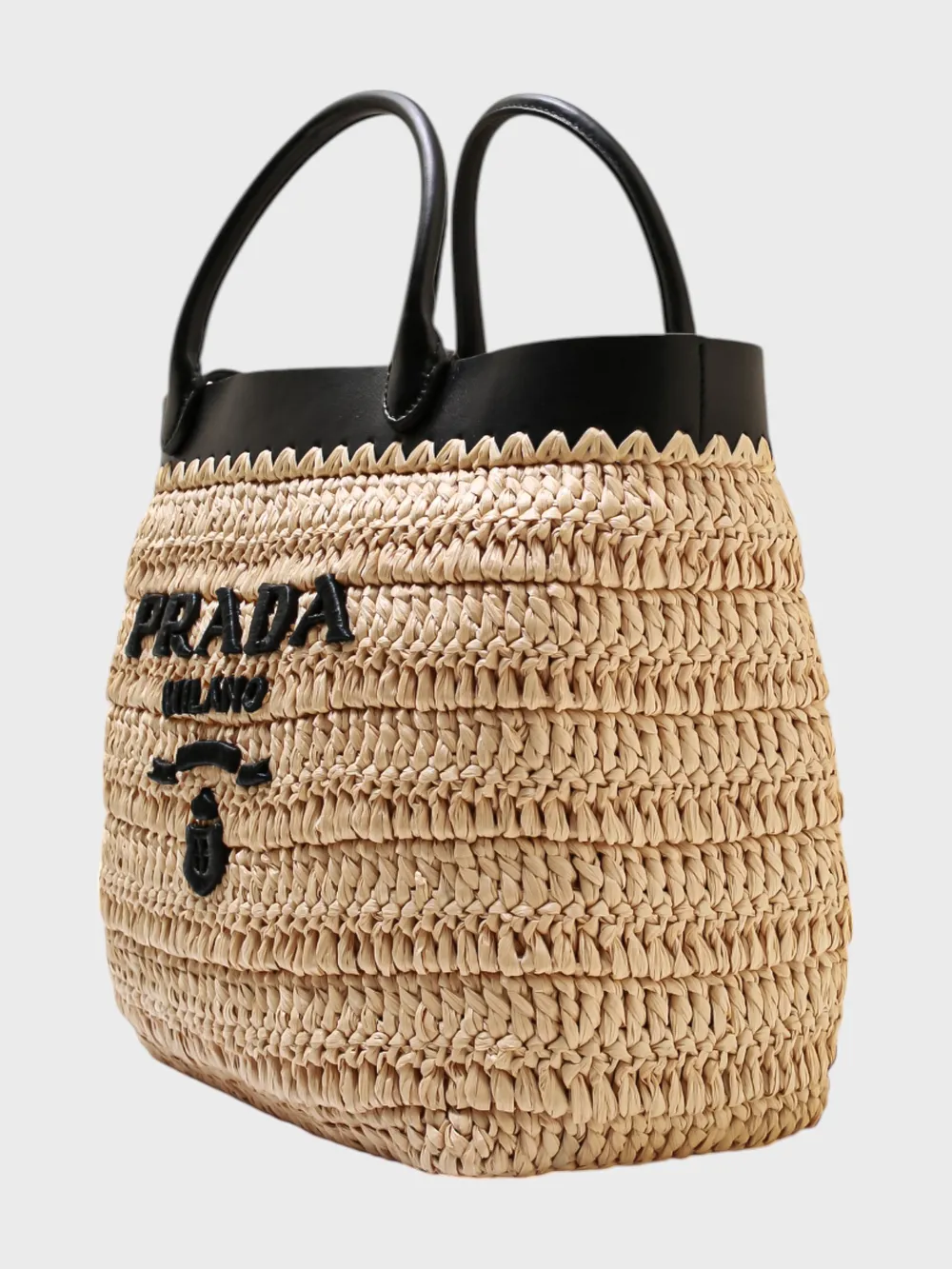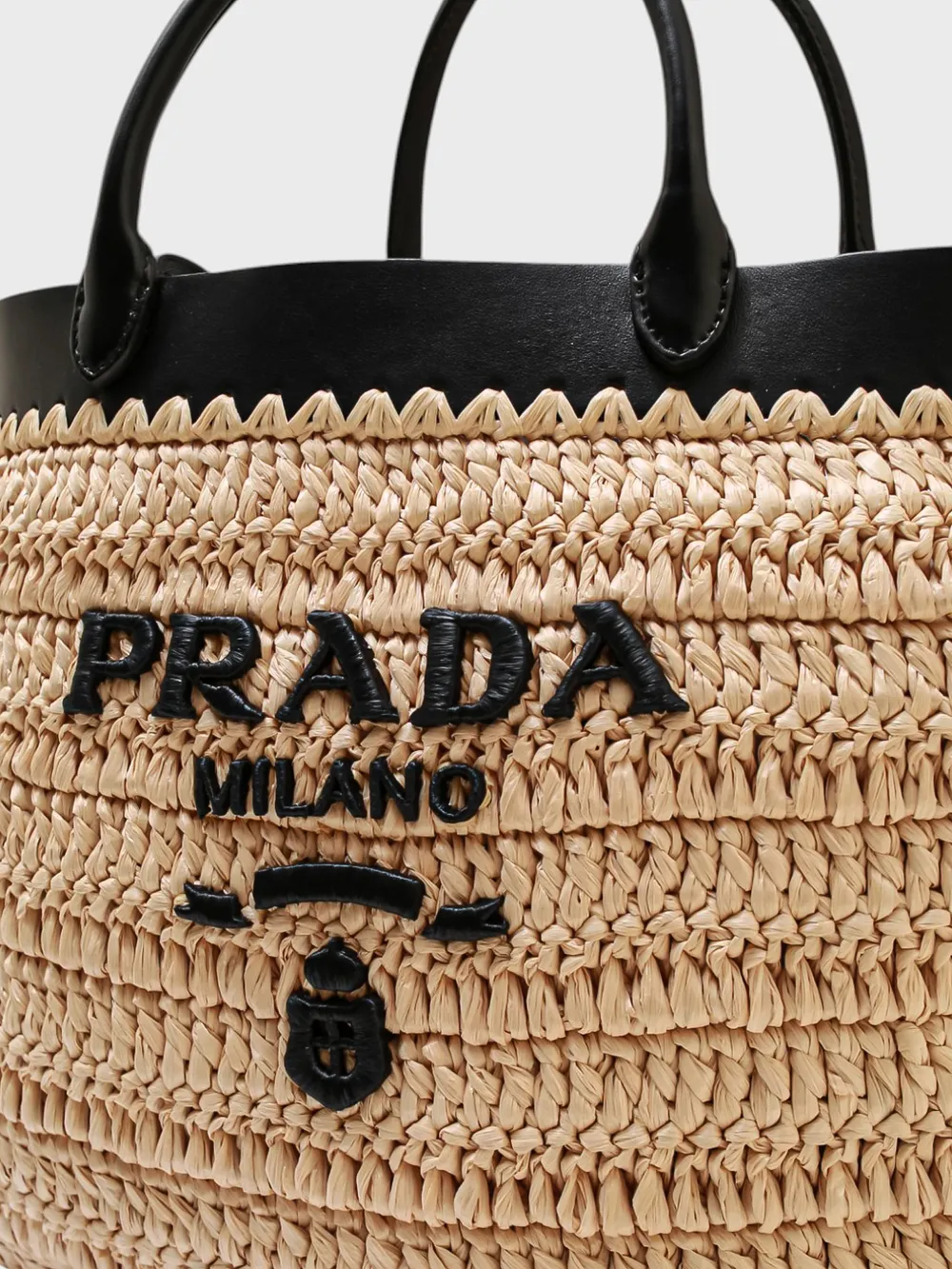 Сумка Prada выполнена из натурального ротанга, который придает ей легкость и текстуру. Модель оформлена черными кожаными ручками, которые обеспечивают комфортное ношение. На передней части сумки расположен крупный логотип "PRADA MILANO" в черном цвете, дополненный фирменным символом бренда — двойной буквой "P". Этот элемент становится центральным акцентом дизайна. Простой и универсальный дизайн идеально подходит для повседневного использования или создания модных образов. Качественная работа пошива гарантирует долговечность и презентабельный внешний вид сумки.