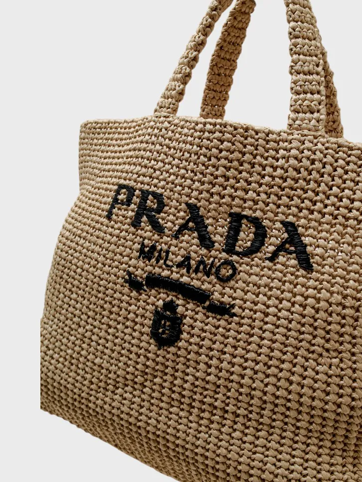 Сумка Prada выполнена из натурального ротанга светло-коричневого цвета с прямым кроем и продуманным дизайном. Модель дополнена логотипом "Prada Milano", который придает ей современный и элегантный вид. Прямой силуэт и утонченные детали делают эту сумку универсальной, подходящей как для повседневного использования, так и для создания модных комбинаций.