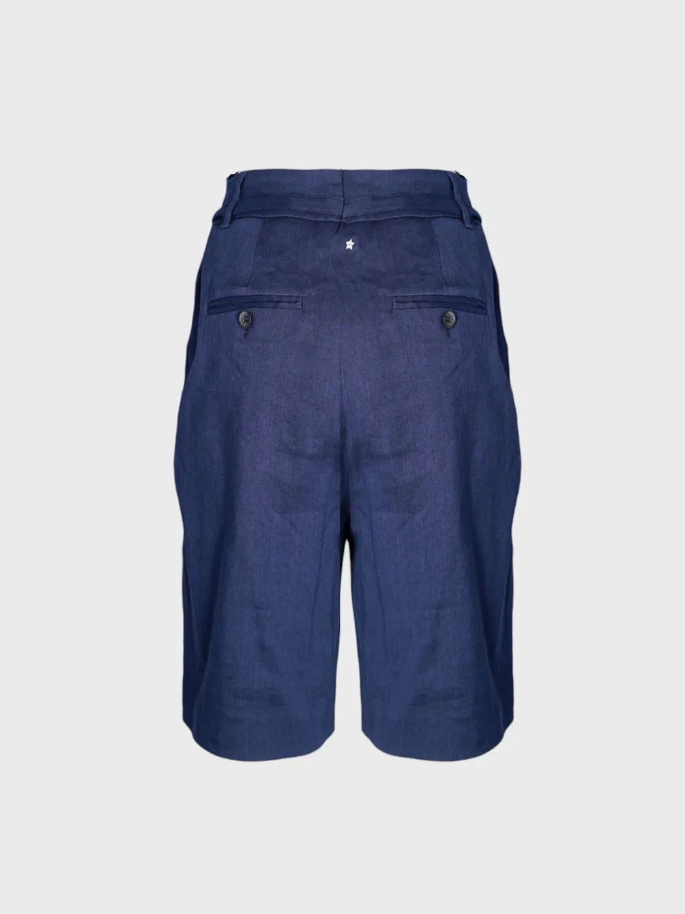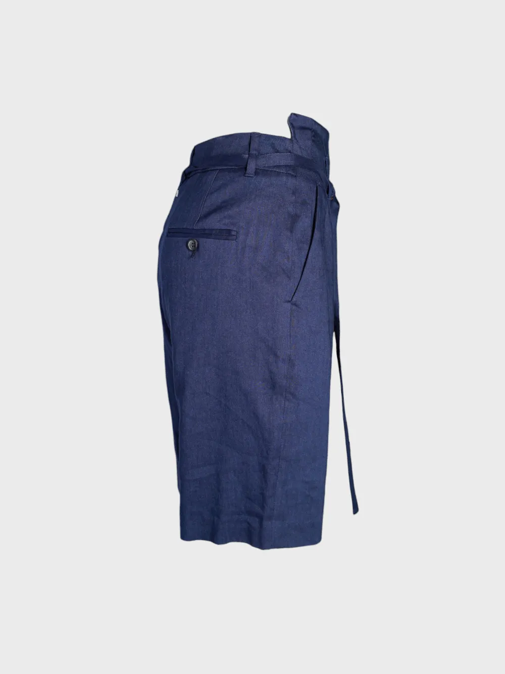 Шорты прямого кроя выполнены из качественного тонкого материала с фактурным рисунком, создающим элегантный и современный вид. Модель дополнена высокой посадкой на талии и широким поясом с металлической пряжкой, обеспечивающей комфортную регулировку. Прямые линии и скрытые карманы придают изделию строгий деловой стиль, а свободная посадка делает их удобными для повседневного использования. Идеально сочетаются как с базовыми, так и с более яркими образами.