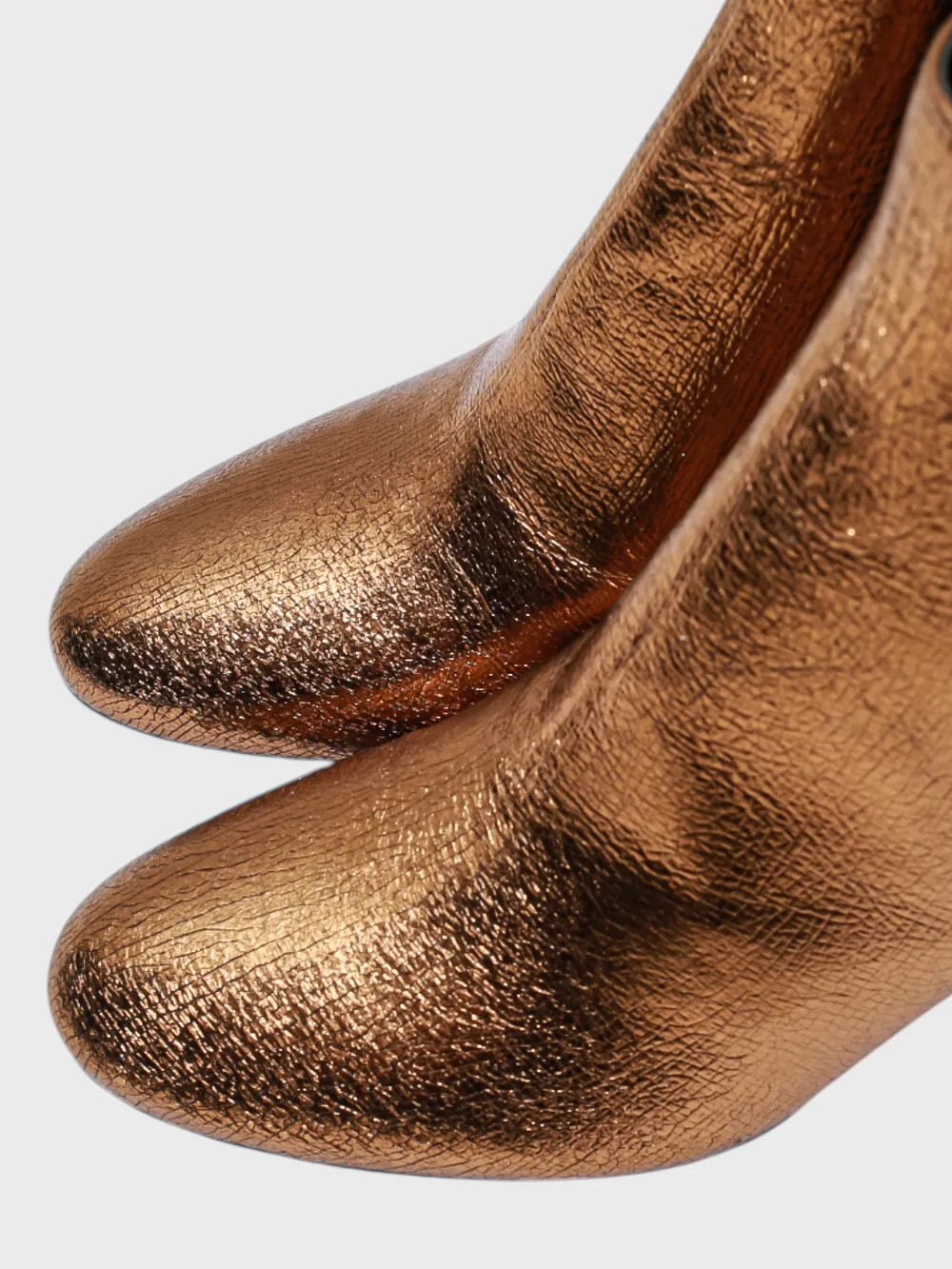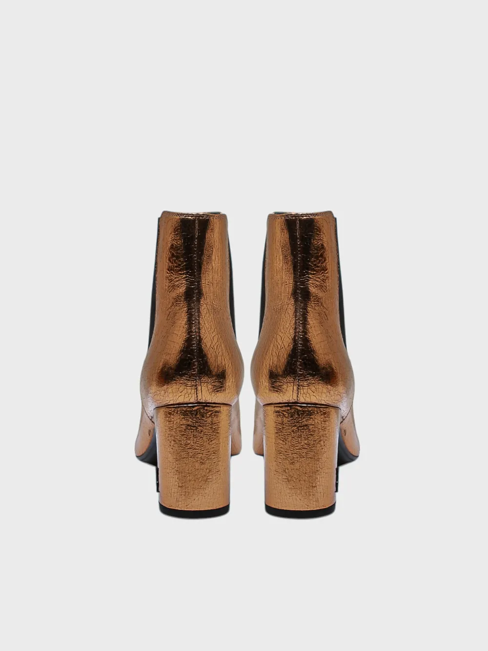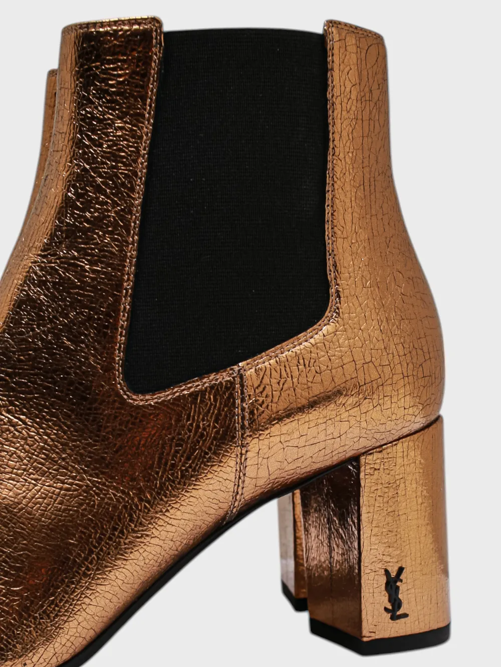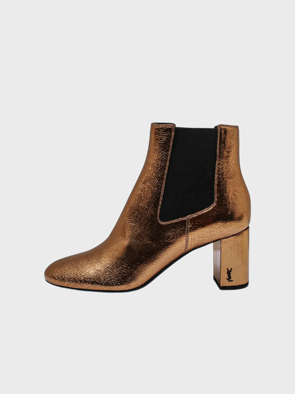 Ботинки Saint Laurent выполнены из металлического коричневого материала с текстурой, придающей им роскошный и современный вид. Модель дополнена высоким каблуком и эластичным верхом для удобства надевания. Детали логотипа на боковой стороне создают акцент на брендовом стиле. Простой крой и комфортная посадка делают эти ботинки идеальным выбором для создания стильного образа.