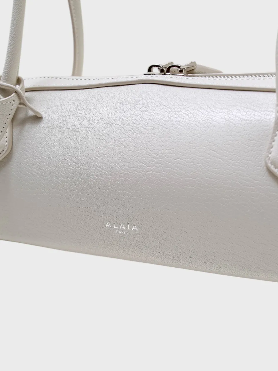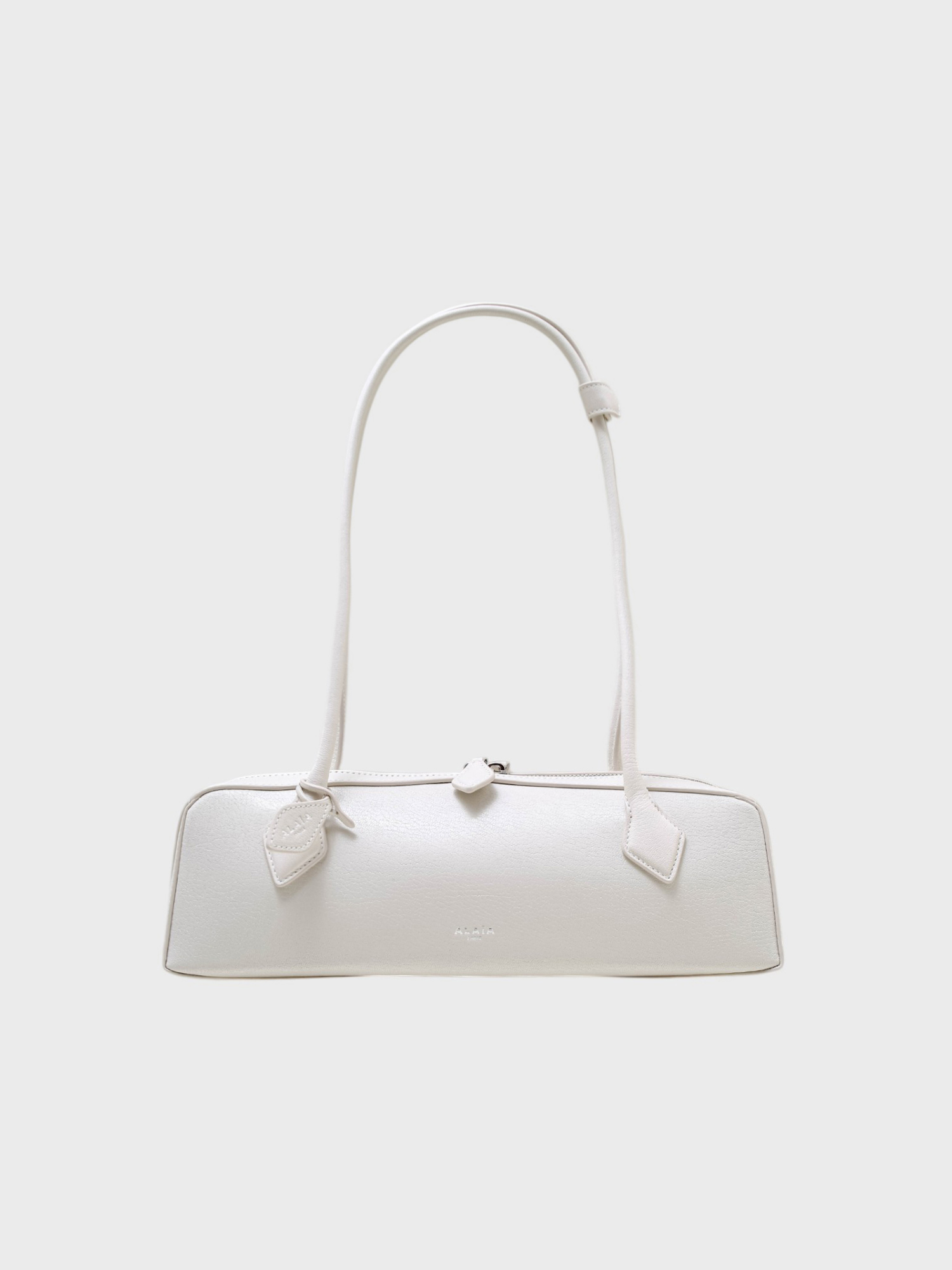 Сумка Alaïa выполнена из матовой натуральной кожи и дополнена мягкими складками и декоративным бантом на молнии. Серебристая фурнитура и фирменный логотип «Alaïa Paris» подчеркивают элитарность аксессуара, а удлиненная ручка позволяет носить его как на плече, так и в руке. Стильная и функциональная модель сочетает минимализм и роскошь, идеально дополняя как деловые, так и вечерние образы.