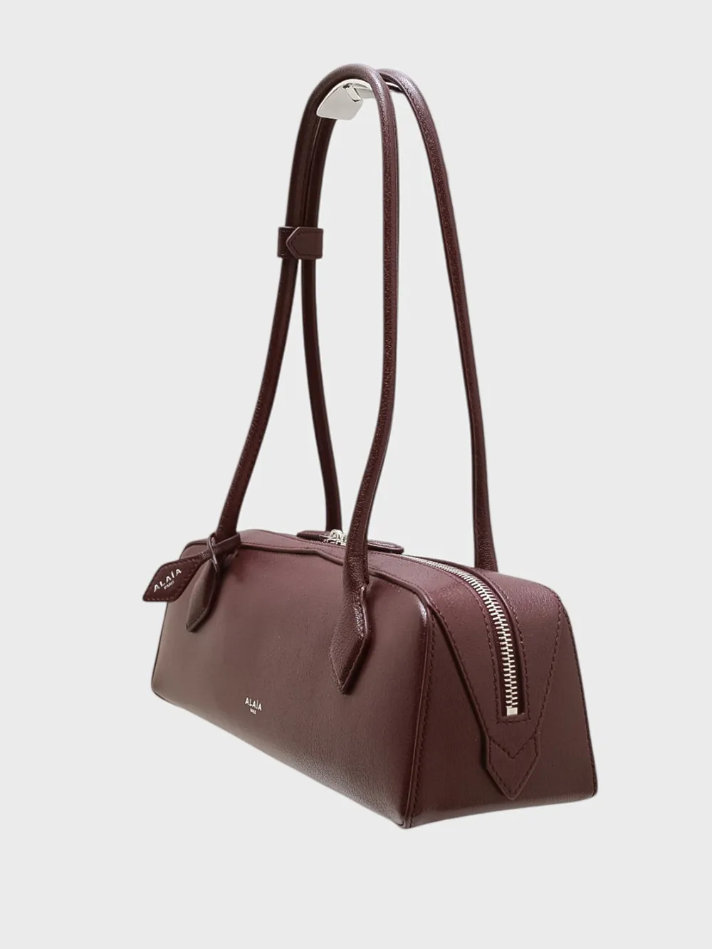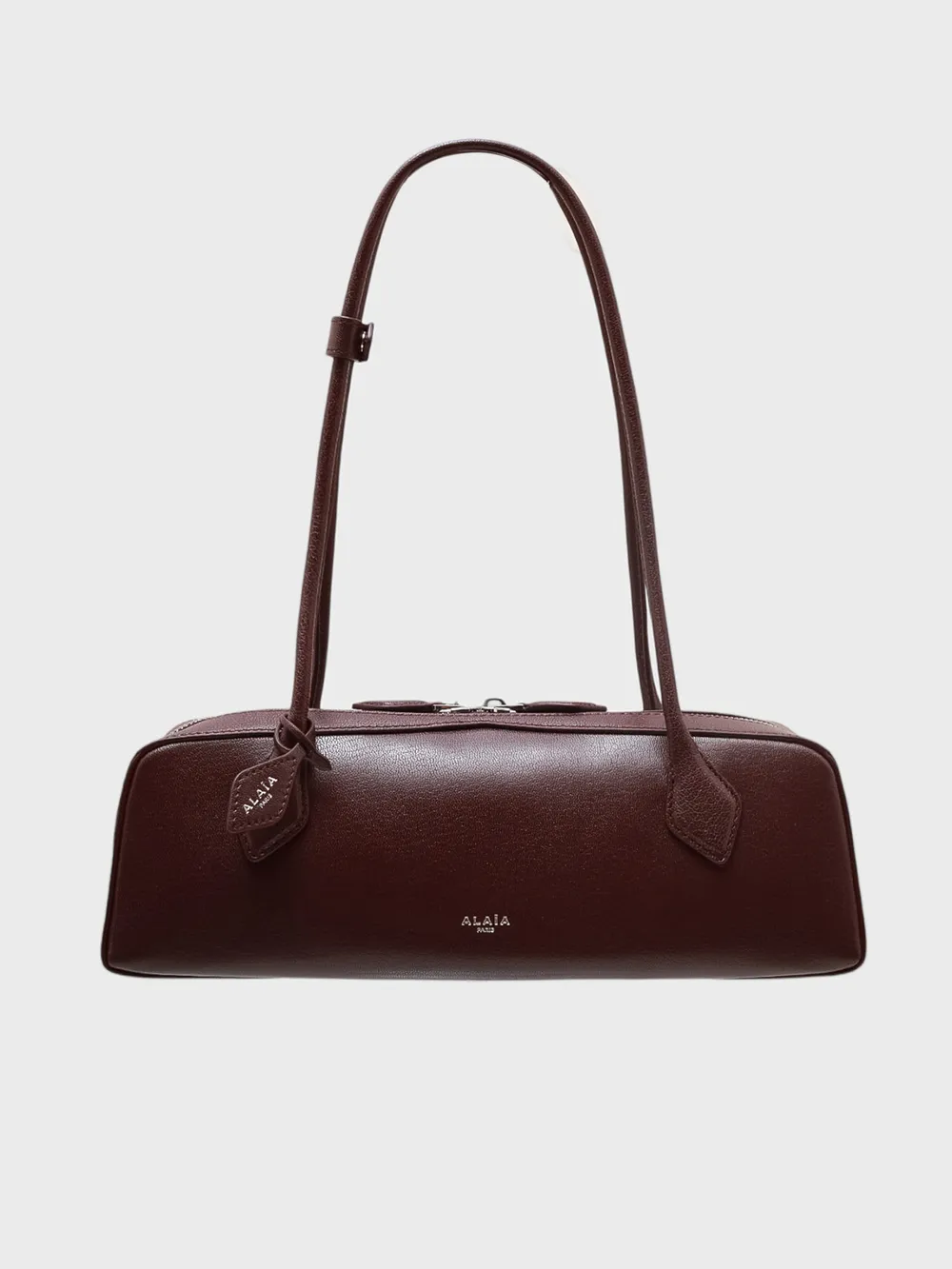 Сумка Alaïa выполнена из качественной фактурной кожи бордового цвета с лаконичным дизайном и фирменным логотипом. Модель дополнена удобными ручками, регулируемым ремнем через плечо и застежкой-молнией для безопасного хранения вещей. Прочный материал и продуманная конструкция обеспечивают долговечность и комфорт использования. Идеальный аксессуар для повседневных выходов и деловых встреч.