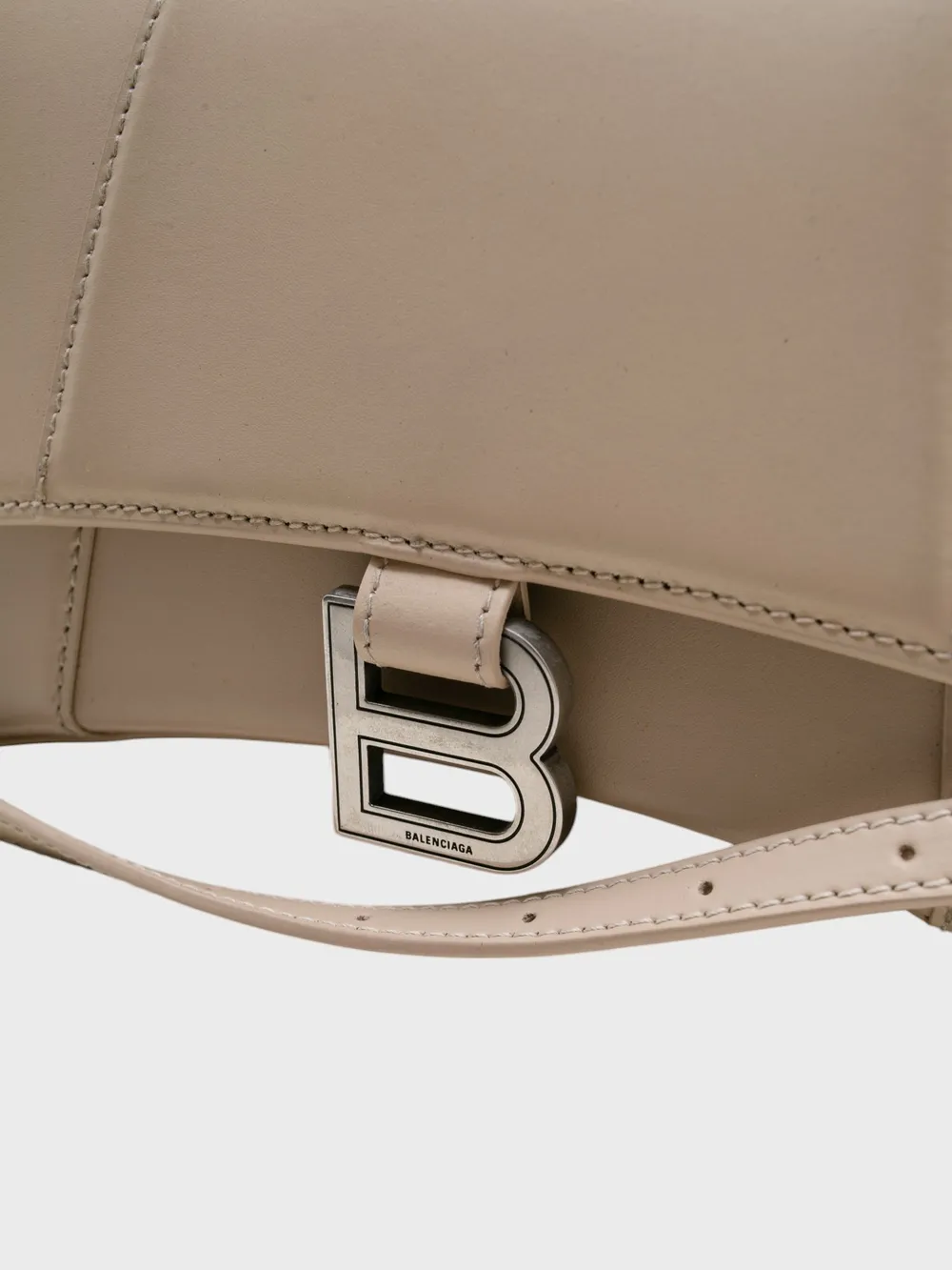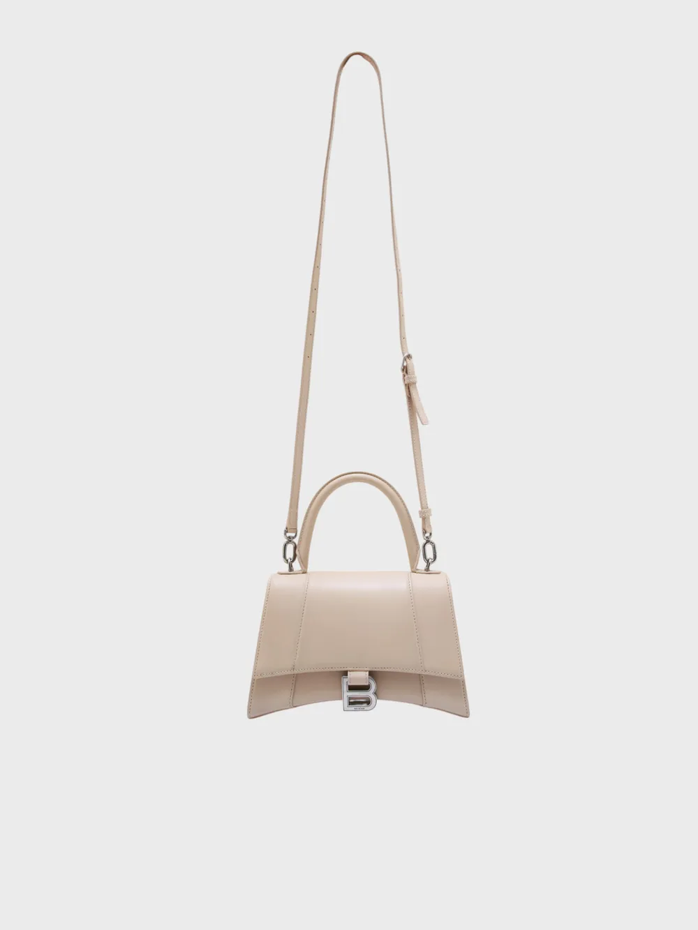 Сумка Balenciaga выполнена из качественной кожи светло-бежевого цвета с прямым кроем и продуманным дизайном. Модель дополнена металлическими деталями, включая логотип "B", который придает ей современный и элегантный вид. Прямой силуэт и утонченные детали делают эту сумку универсальной, подходящей как для повседневного использования, так и для создания модных комбинаций.