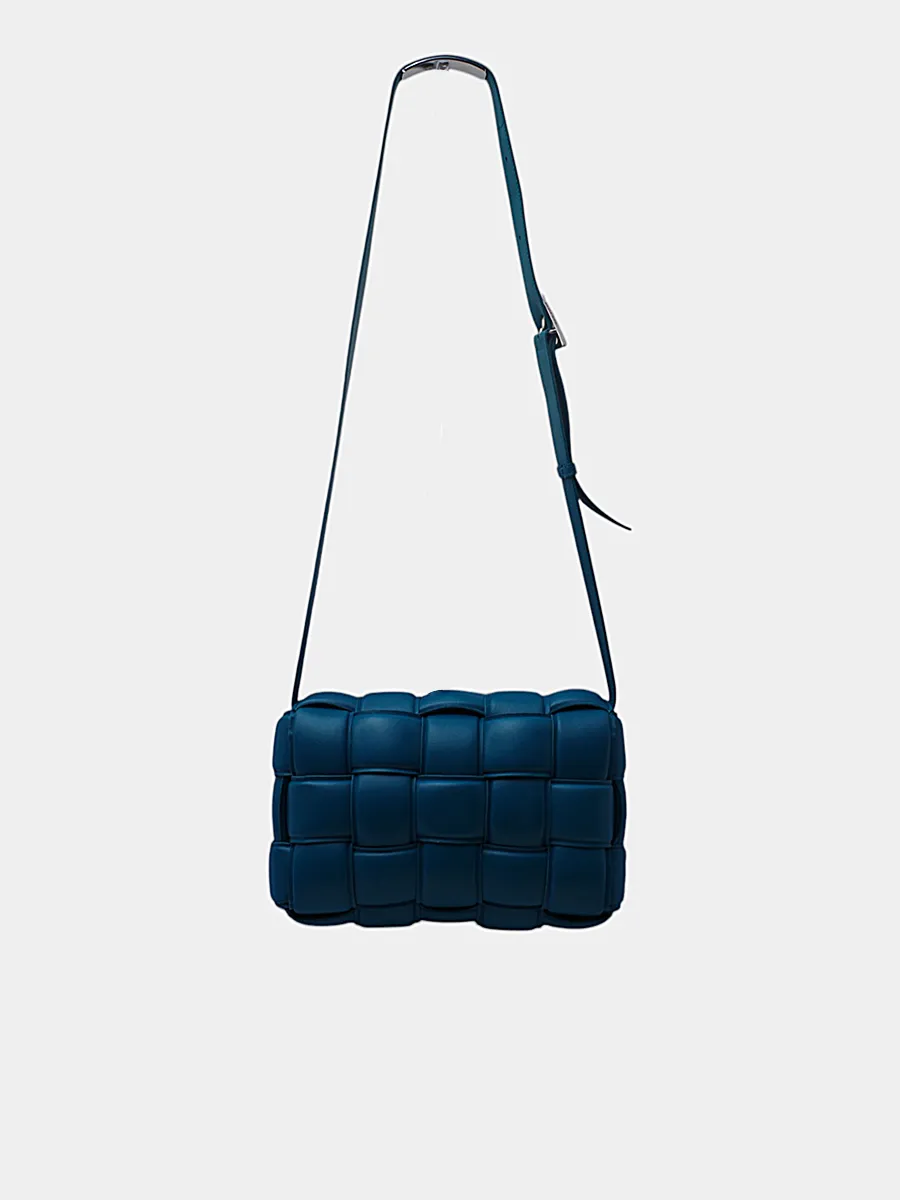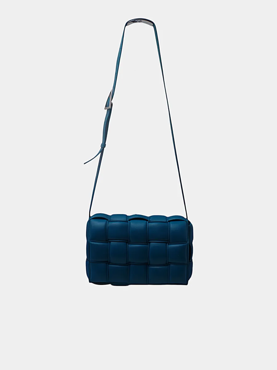 Сумка Bottega Veneta выполнена из гладкой синей кожи в фирменной технике Intrecciato — сочетание структурированного плетения и лаконичного кроя. Модель прямоугольной формы с длинным регулируемым ремнем подчеркивает минимализм и функциональность. Безупречная посадка, качественная фурнитура и глубокий насыщенный цвет делают её универсальным аксессуаром для повседневного и вечернего образа. Идеальное воплощение роскоши и мастерства бренда.