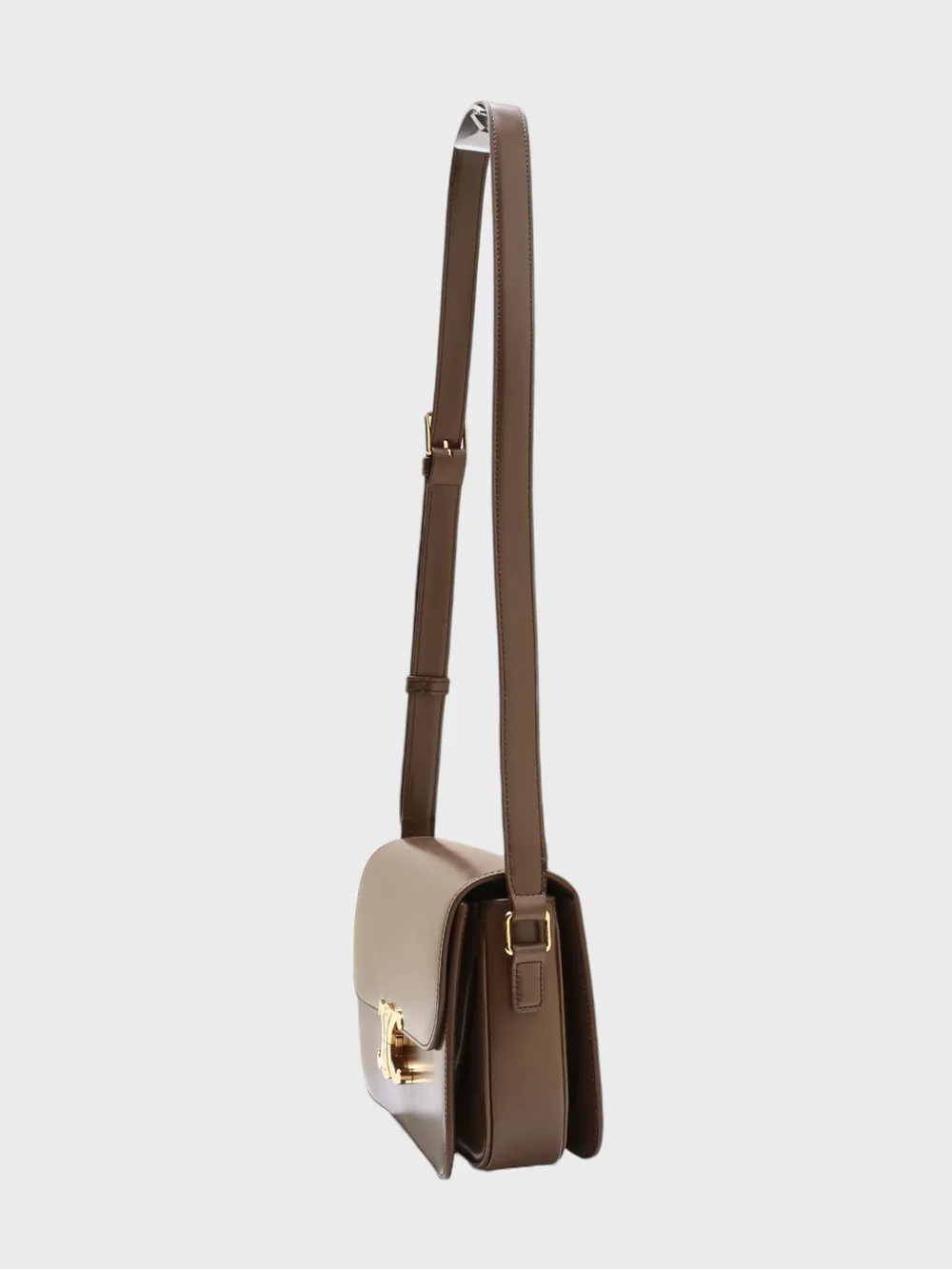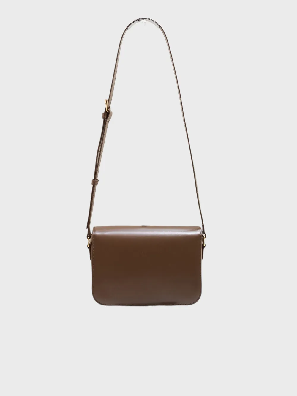 Сумка Celine выполнена из высококачественной натуральной кожи с матовым эффектом. Модель классического прямоугольного кроя дополнена крупным золотым логотипом бренда "CELINE PARIS" на передней панели. Стильный дизайн с удобной ручкой и регулируемым ремнем для ношения через плечо делает эту сумку универсальным аксессуаром для повседневных образов и специальных случаев.