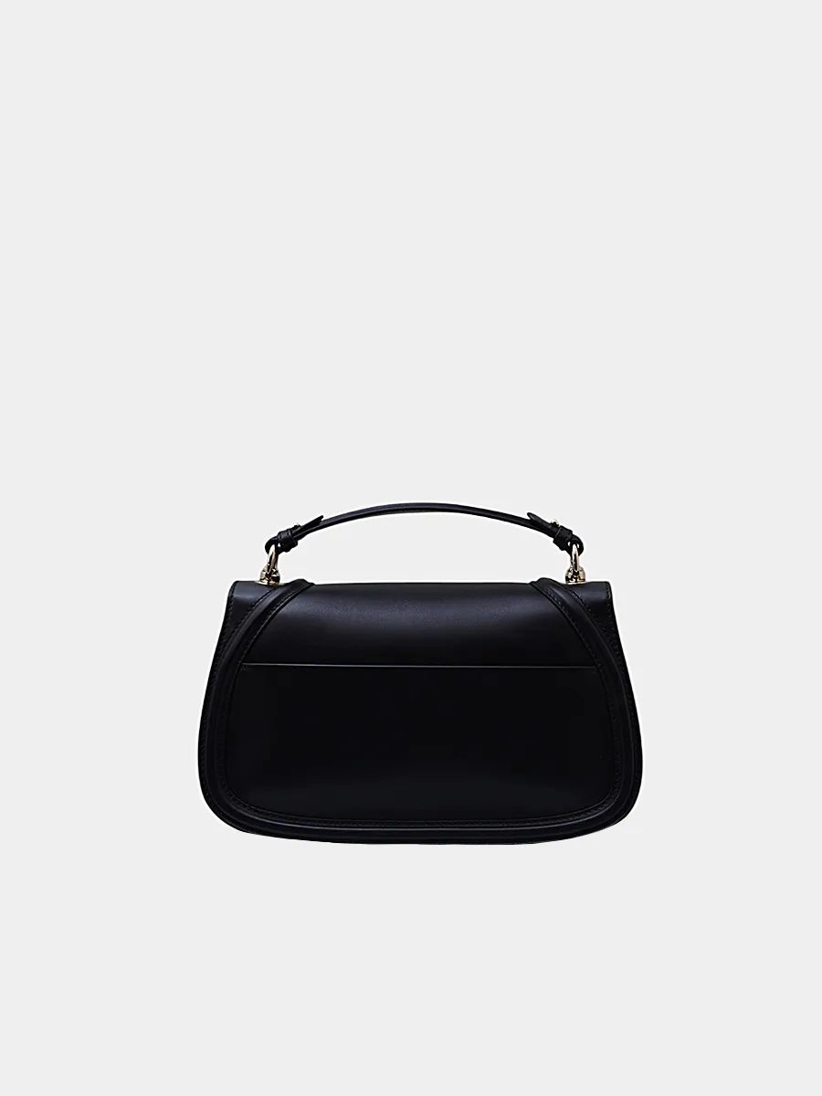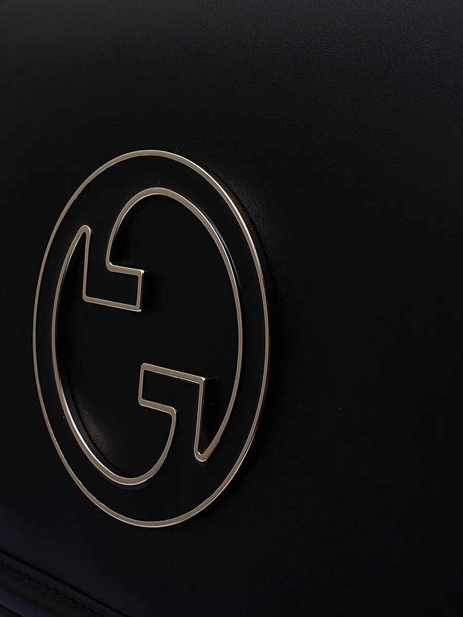 Сумка Gucci выполнена из гладкой черной кожи с эффектом матового блеска, дополнена контрастным металлическим логотипом в форме G и удобной ручкой. Модель сочетает минималистичный дизайн, безупречное качество исполнения и узнаваемый стиль бренда — идеальный аксессуар для элегантного и современного образа.