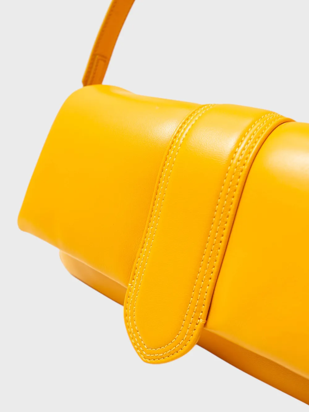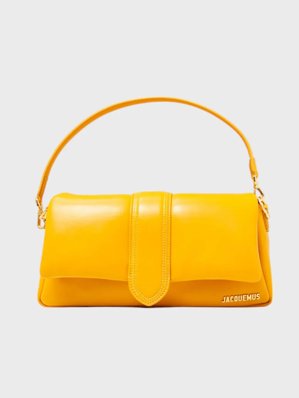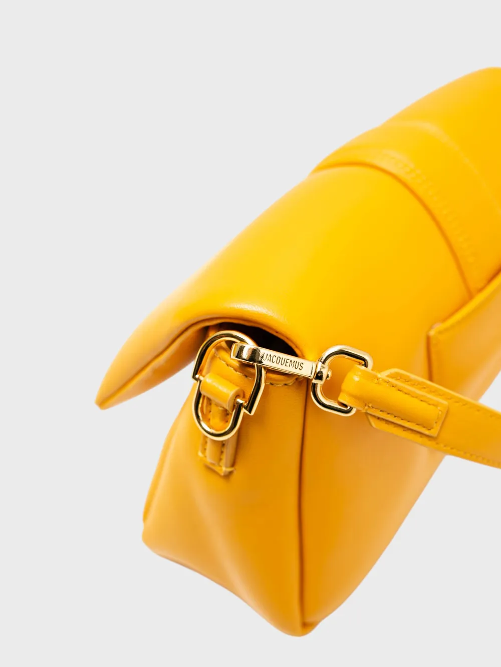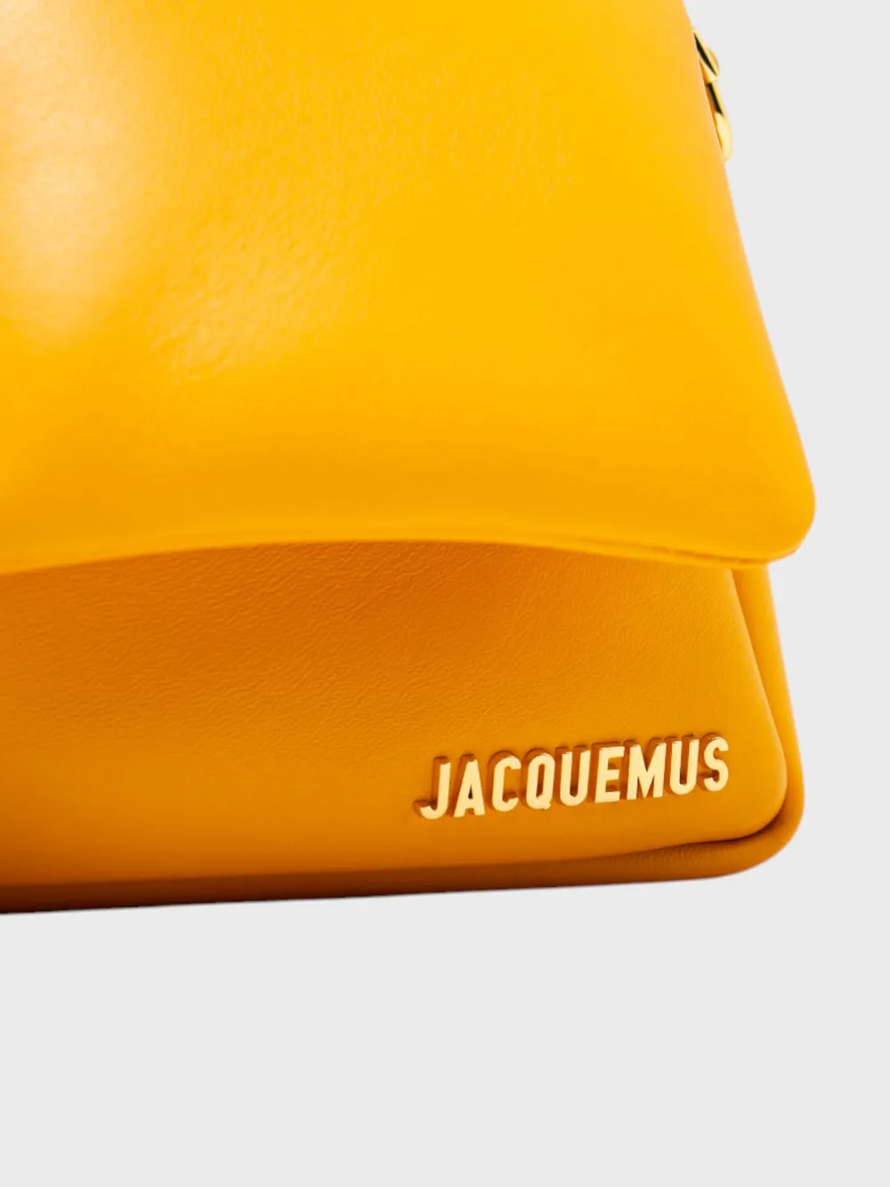 Сумка Jacquemus выполнена из качественной кожи яркого желтого цвета с прямым кроем и продуманным дизайном. Модель дополнена золотыми деталями, включая логотип "Jacquemus", который придает ей современный и элегантный вид. Прямой силуэт и утонченные детали делают эту сумку универсальной, подходящей как для повседневного использования, так и для создания модных комбинаций.